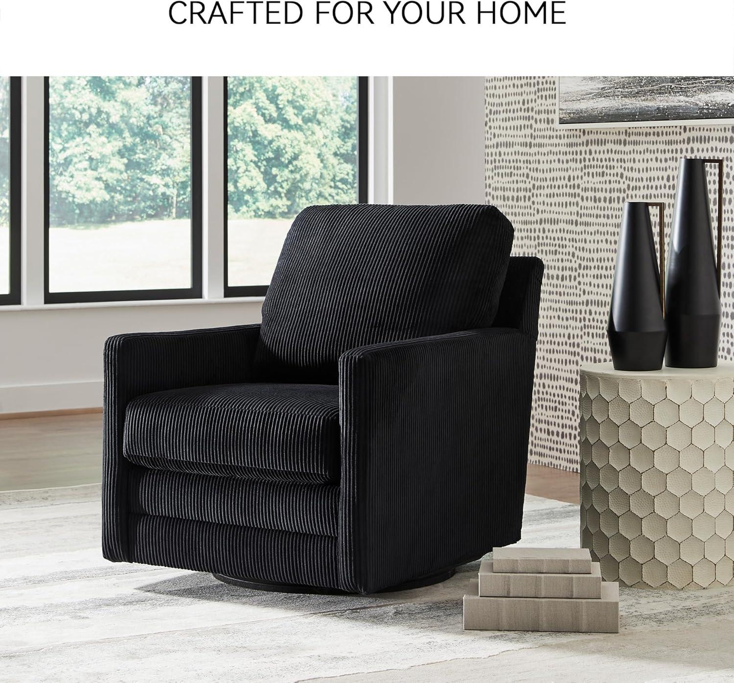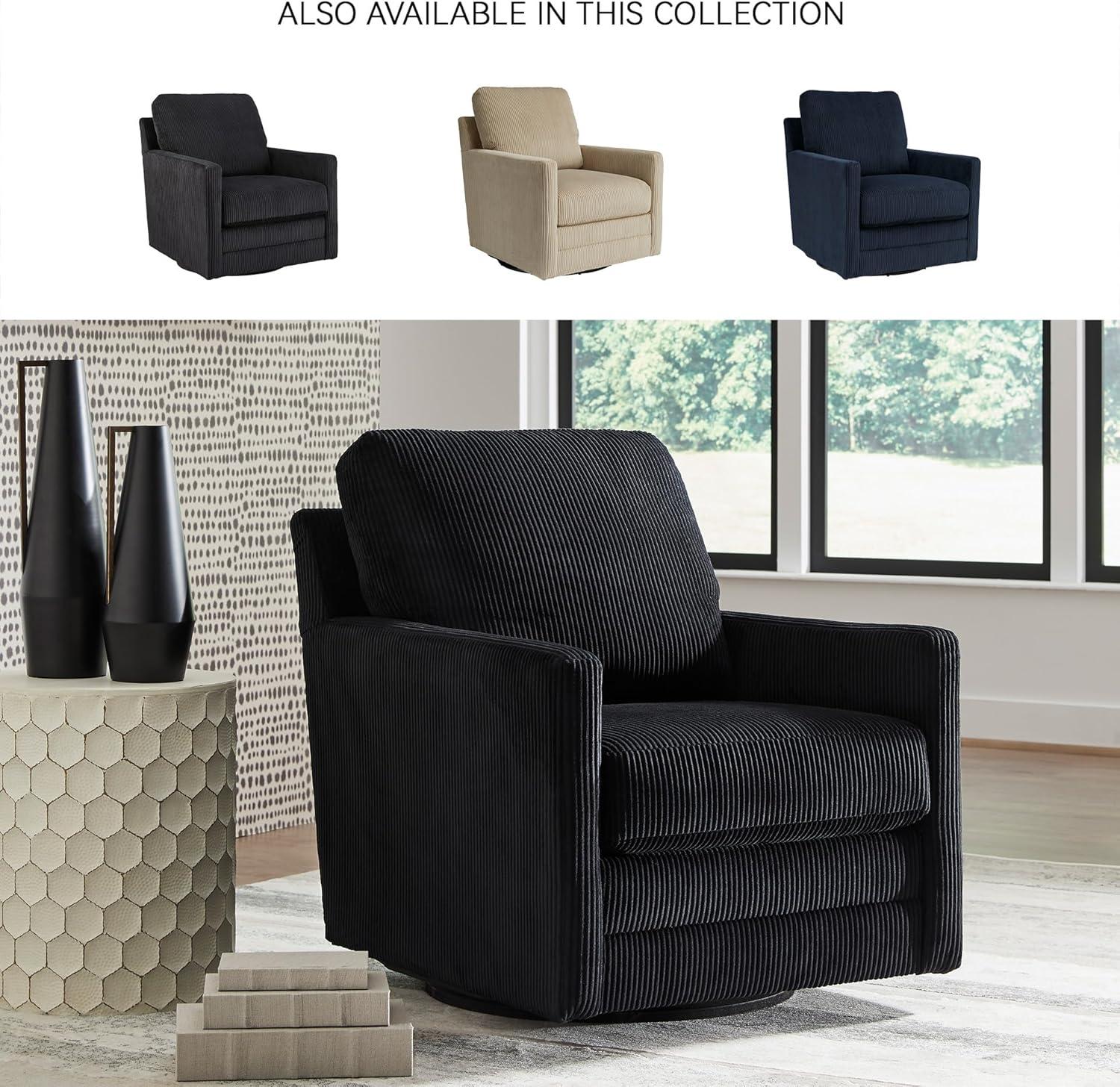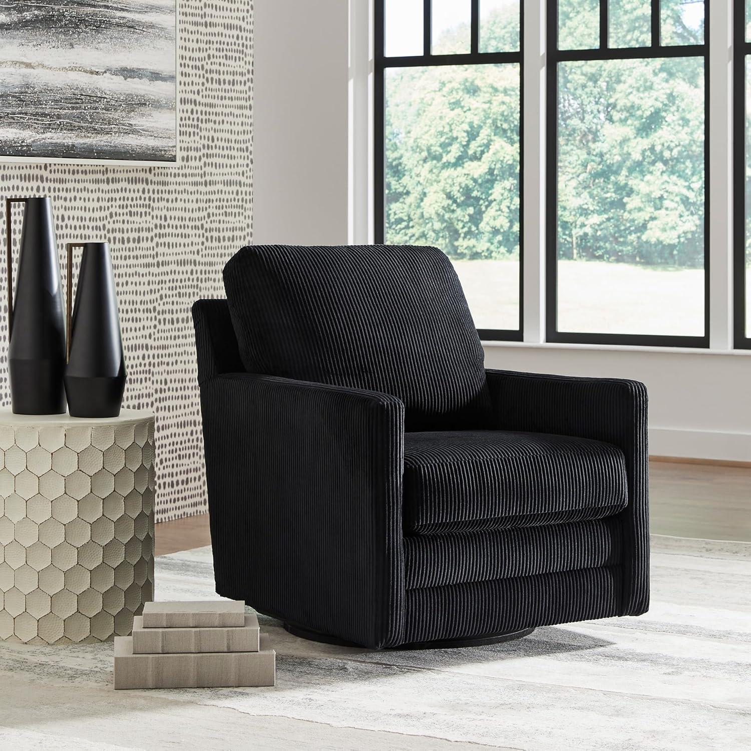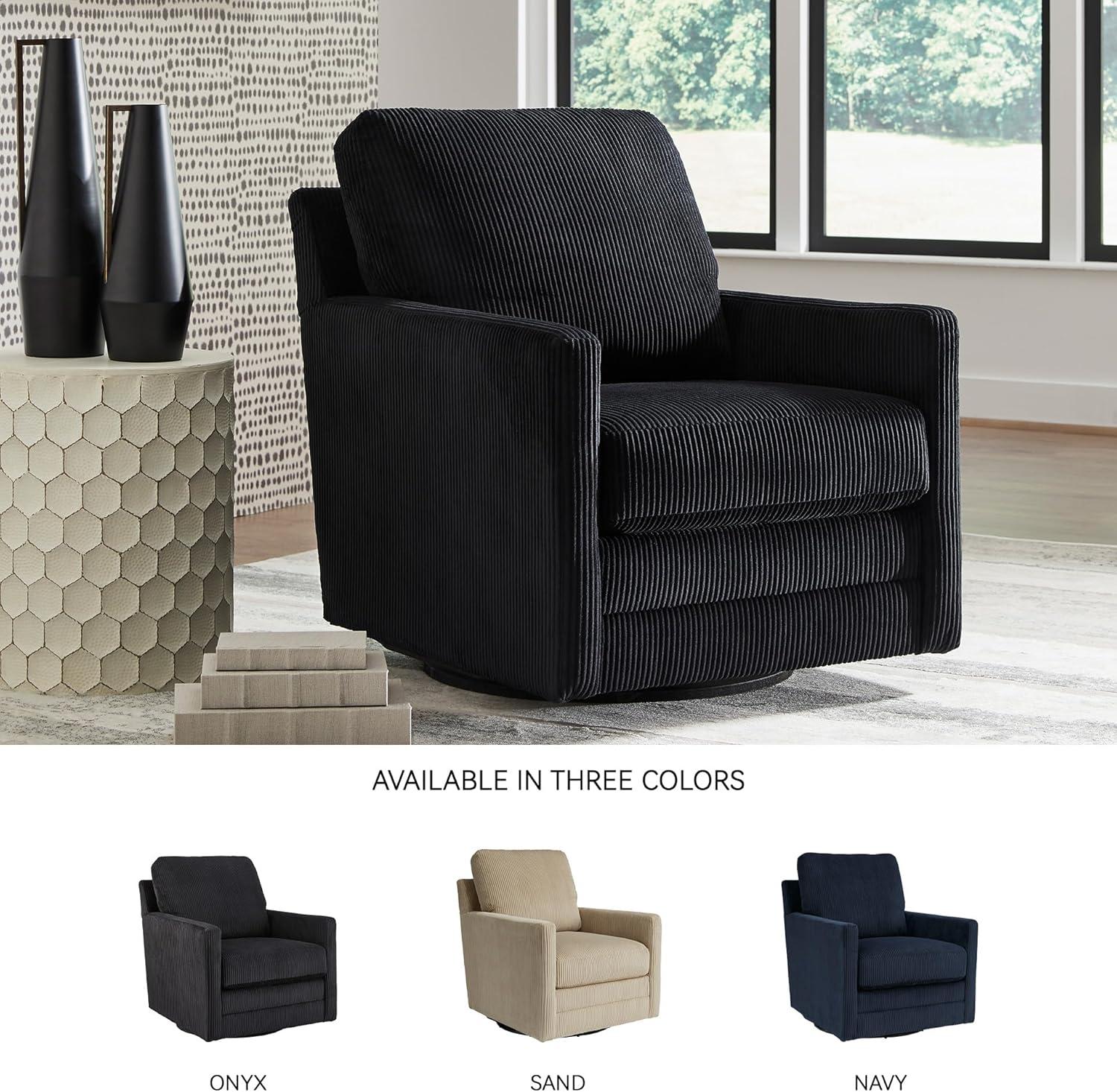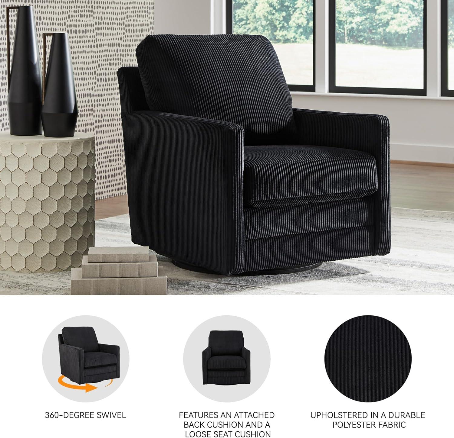 Signature Design by Ashley Icaman Modern Indoor Swivel Upholstered Chair with Reversible Cushions, Black(Black)