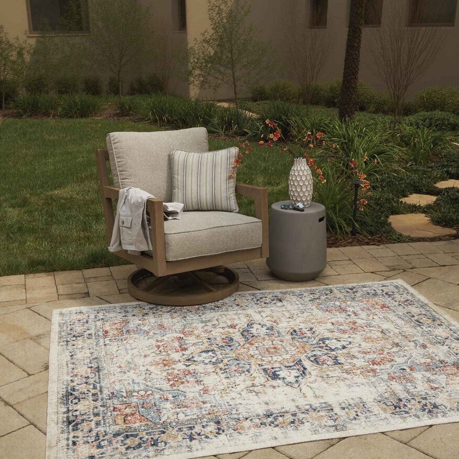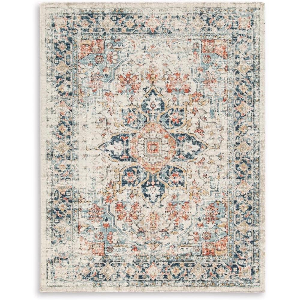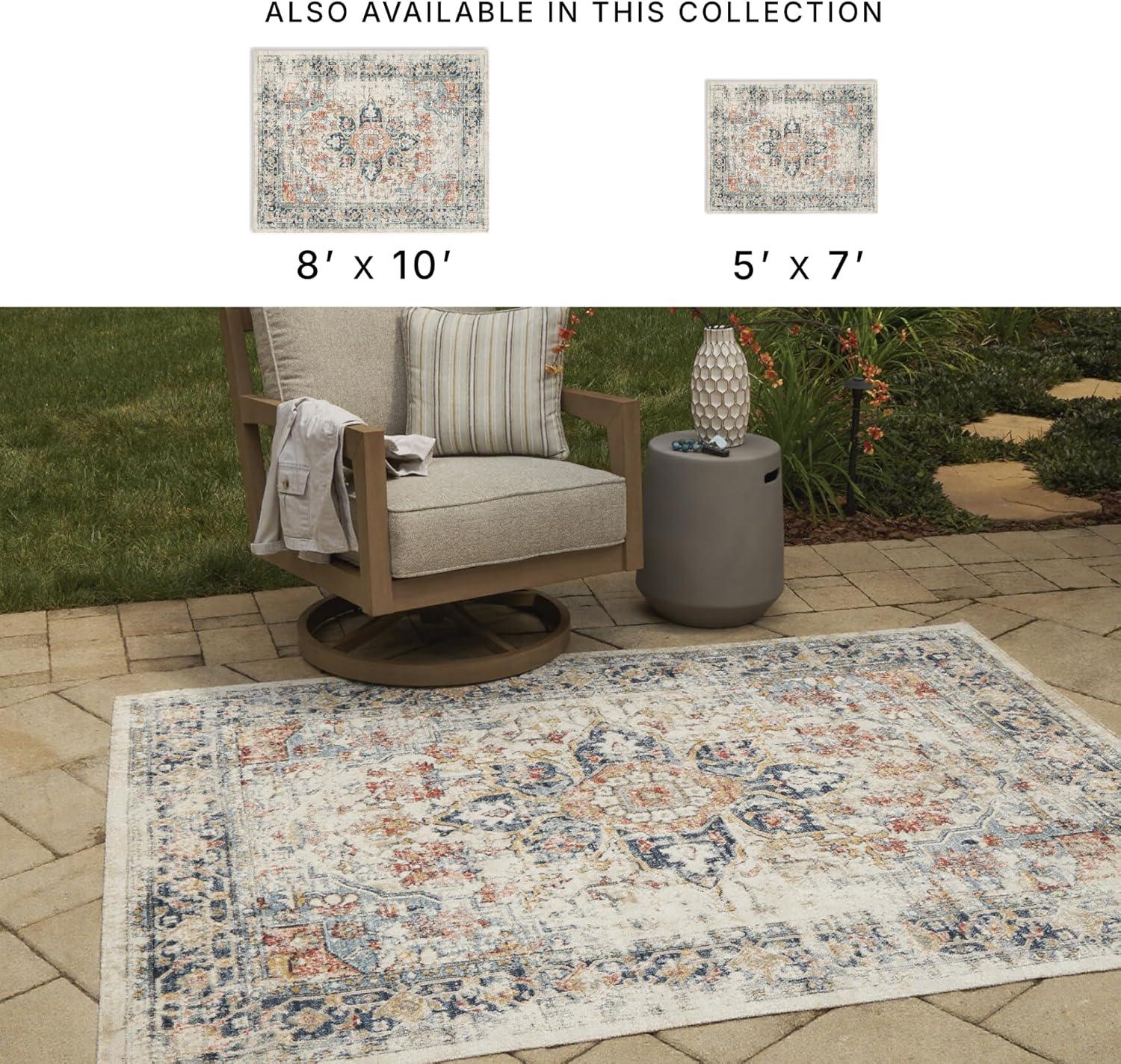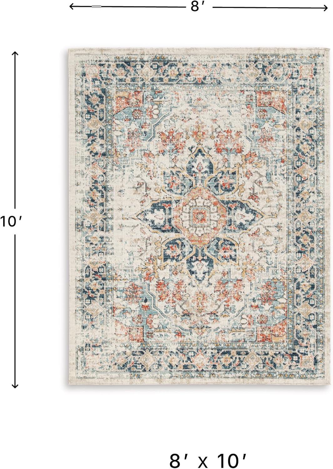 Signature Design by Ashley Jarrpage Classic Indoor/Outdoor Medallion 8 x 10 Rug with Non Slip Backing, Blue & Orange