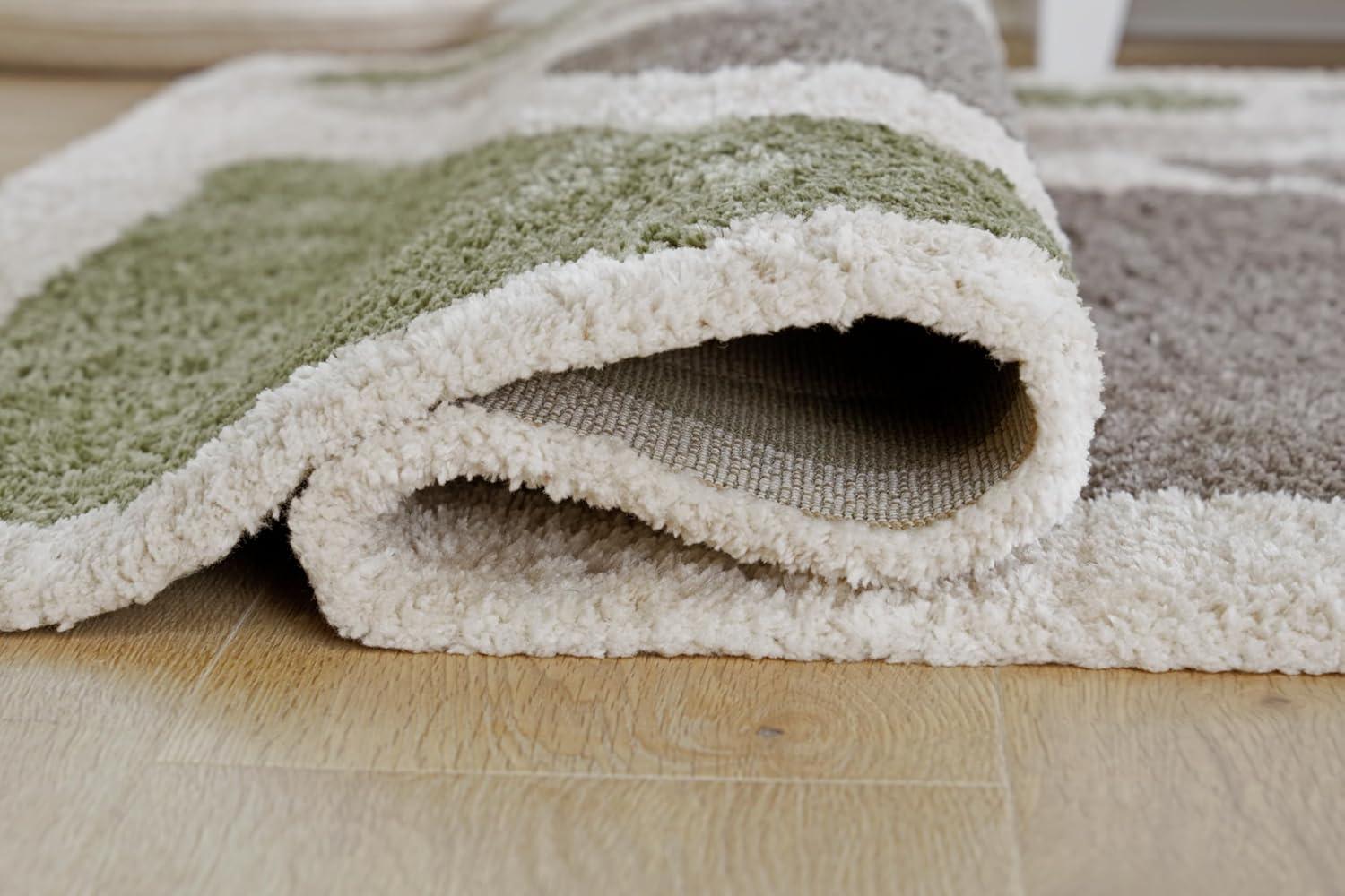 Signature Design by Ashley Jaseena Casual 5′ x 7′ Indoor Medium Pile Abstract Area Rug, Beige & Light Brown(Green/Gray/Ivory)