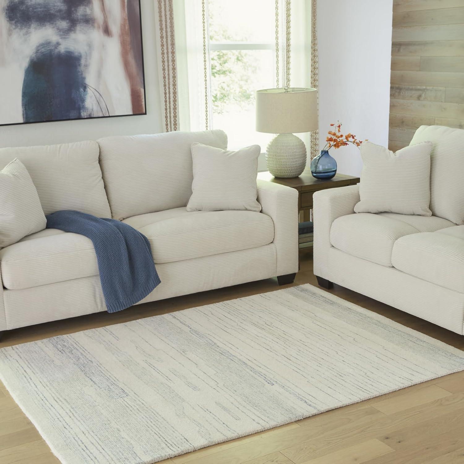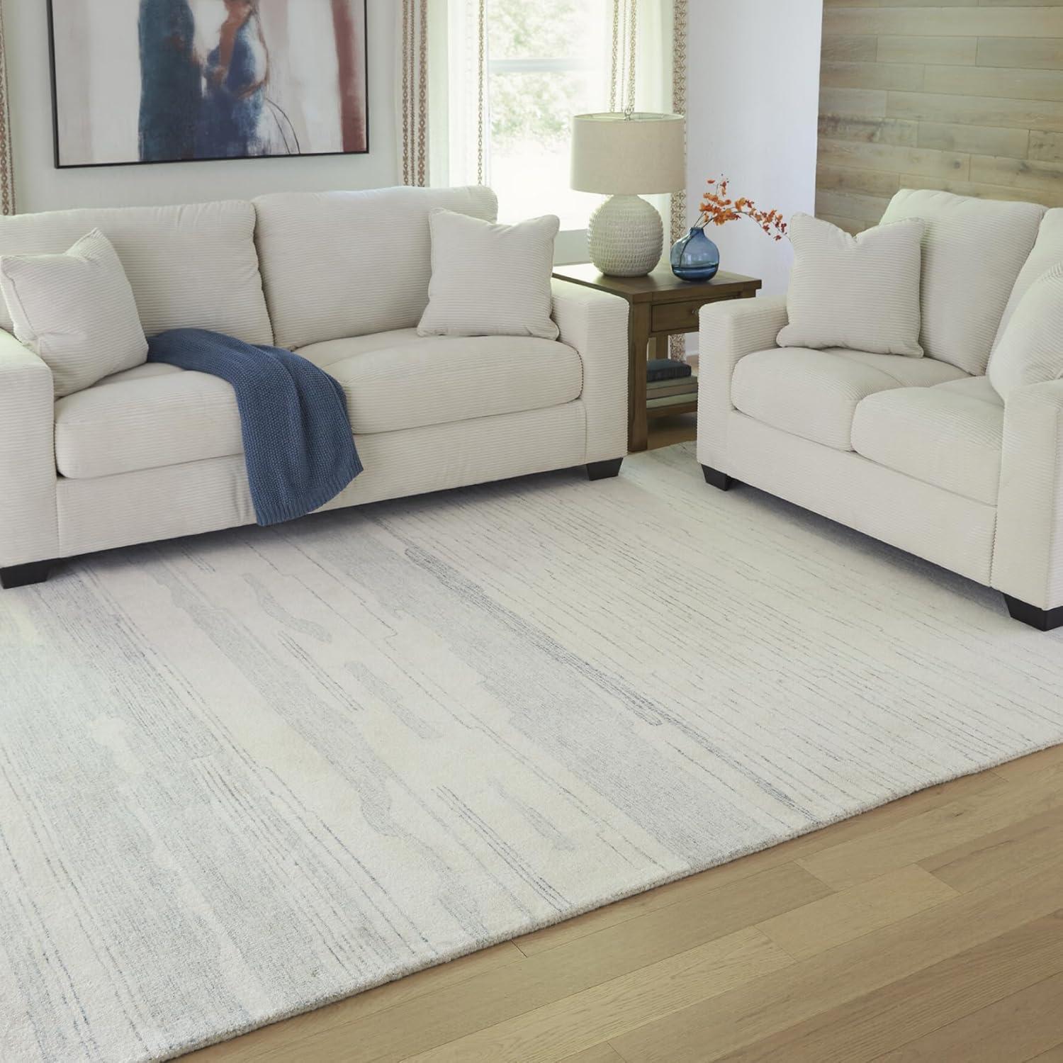 Signature Design by Ashley Jaseena Casual 5′ x 7′ Indoor Medium Pile Abstract Area Rug, Beige & Light Brown(Ivory/Blue)