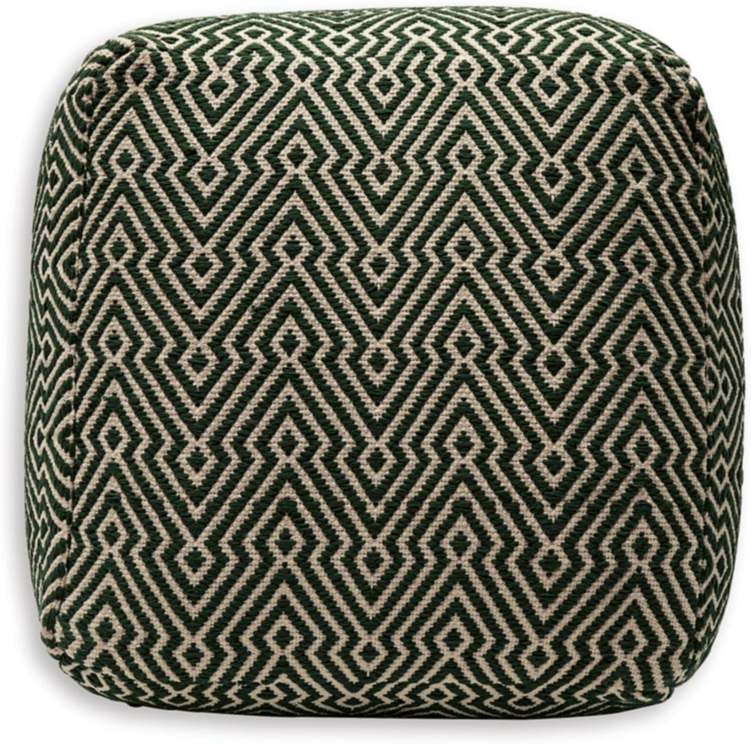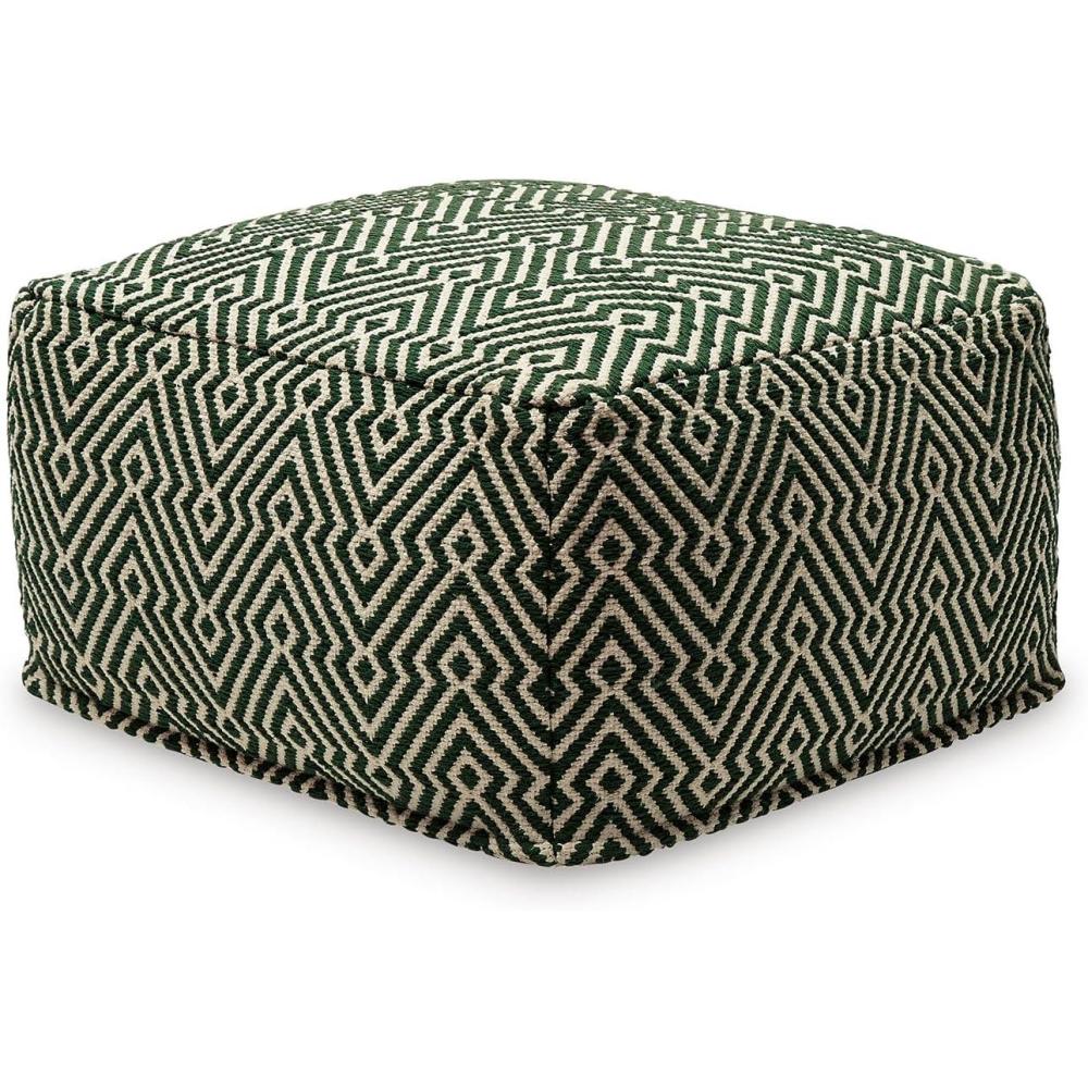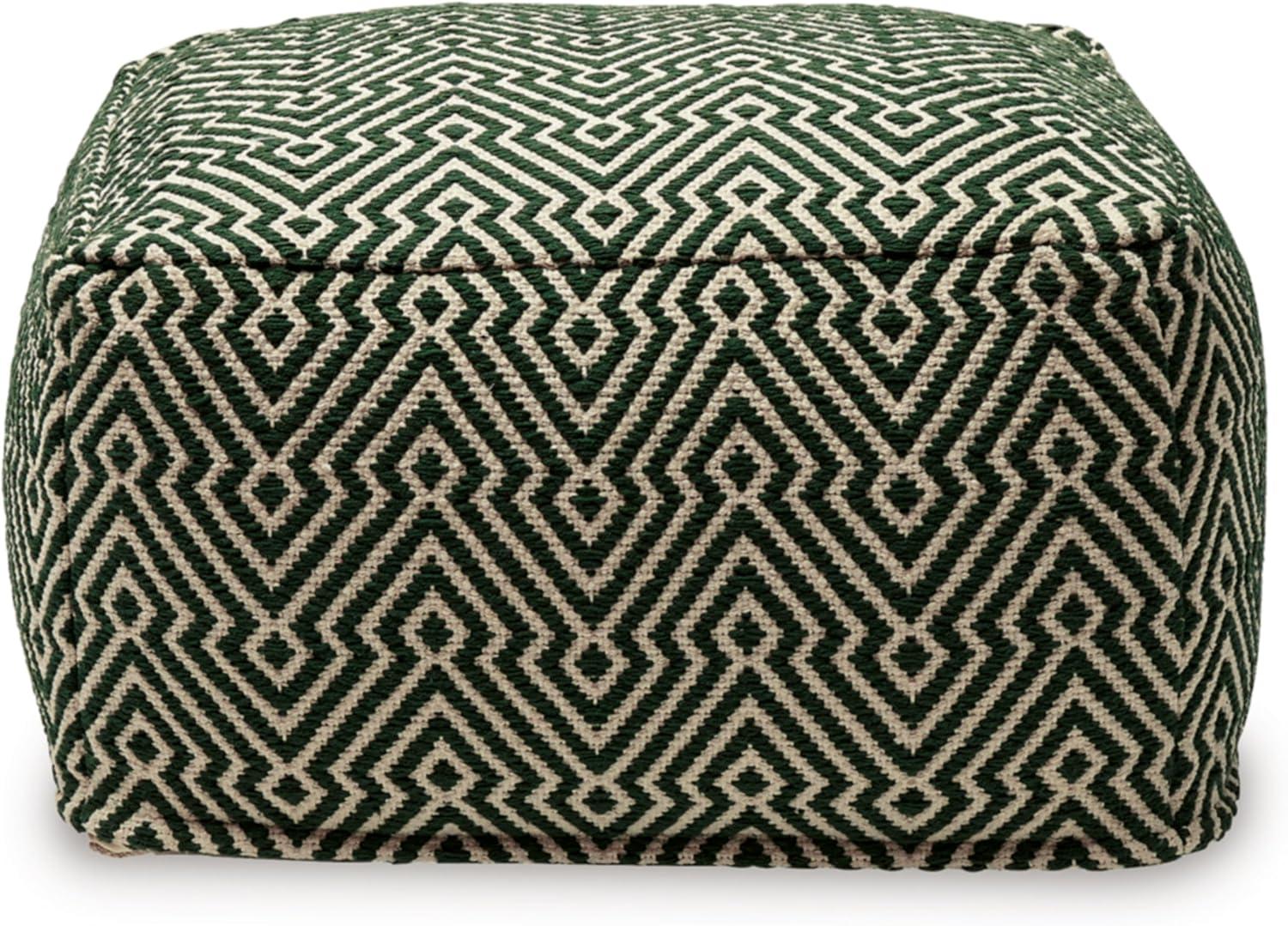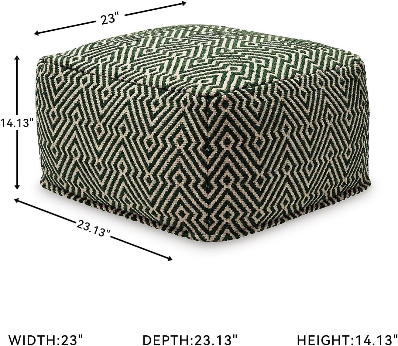 Signature Design by Ashley Jasett Casual Handwoven Geometric Pouf, Black & White(Green and Beige)