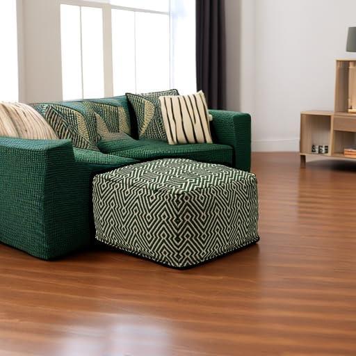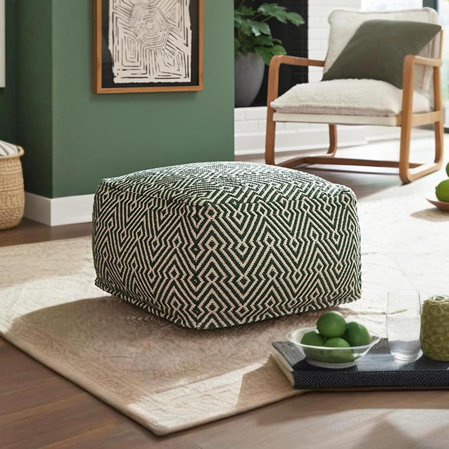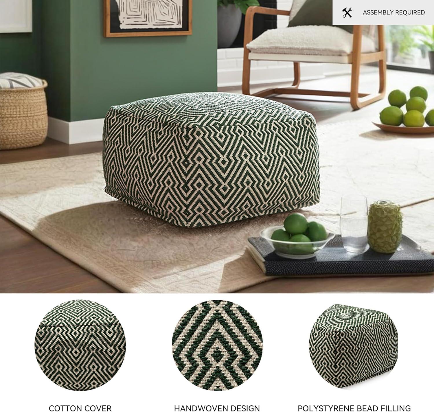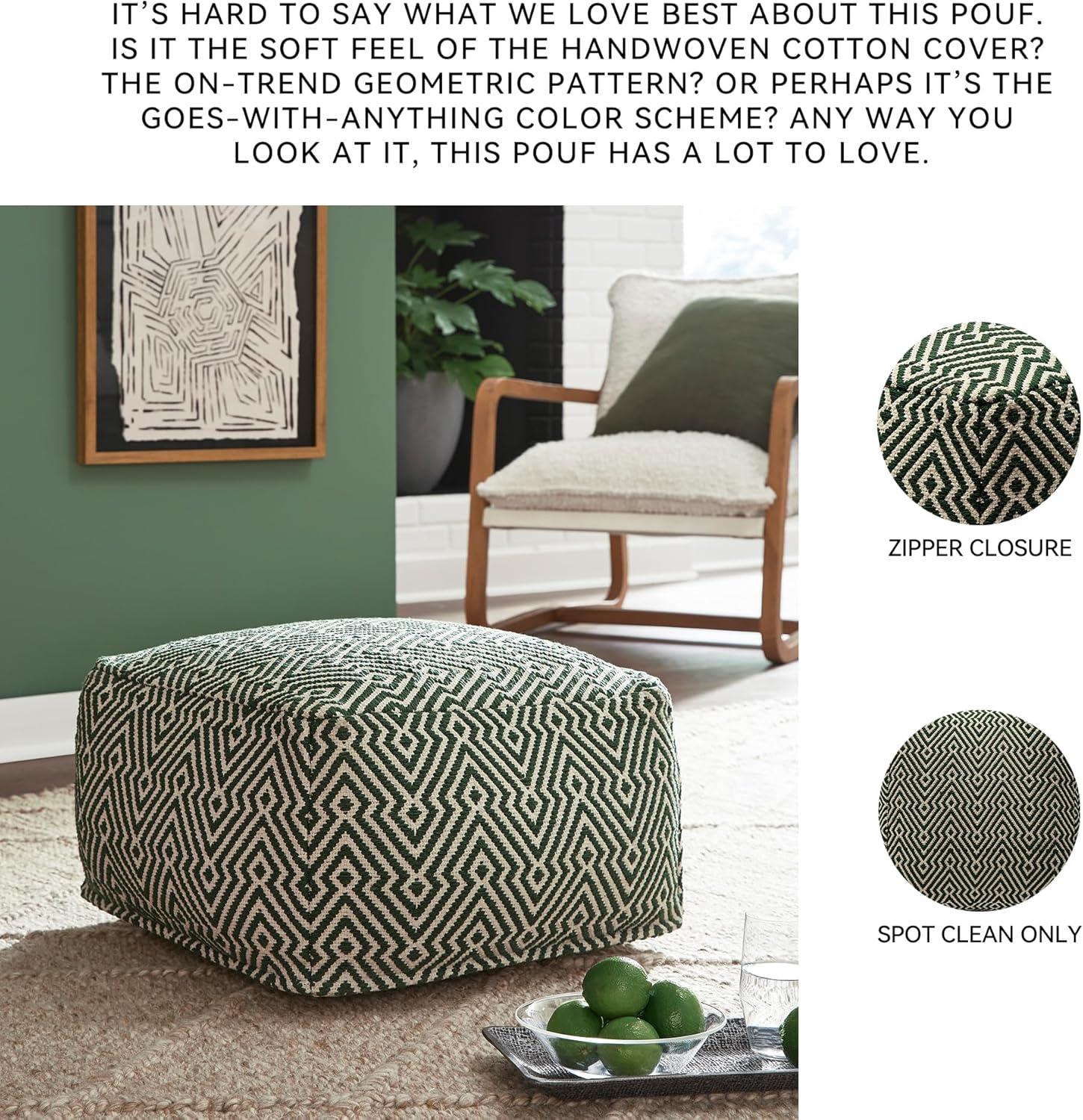Signature Design by Ashley Jasett Casual Handwoven Geometric Pouf, Black & White(Green and Beige)