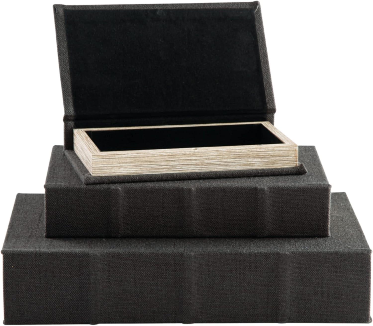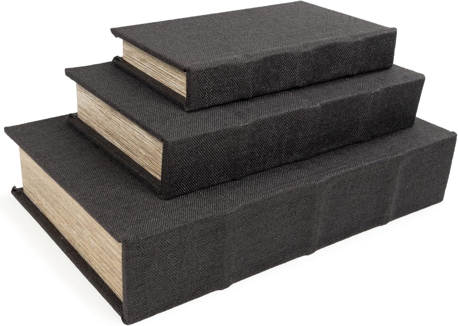 Signature Design by Ashley Jolina Vintage 3 Piece Faux Book Keepsake Storage Box Set, Small/Medium/Large, Nesting Design, Keepsake Boxes, Remote Control Storage, Brown Cover with Black Velvet Lining(Black)