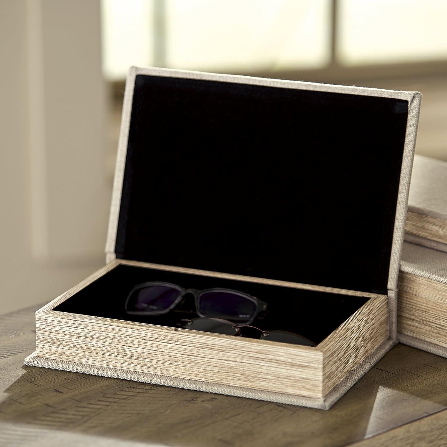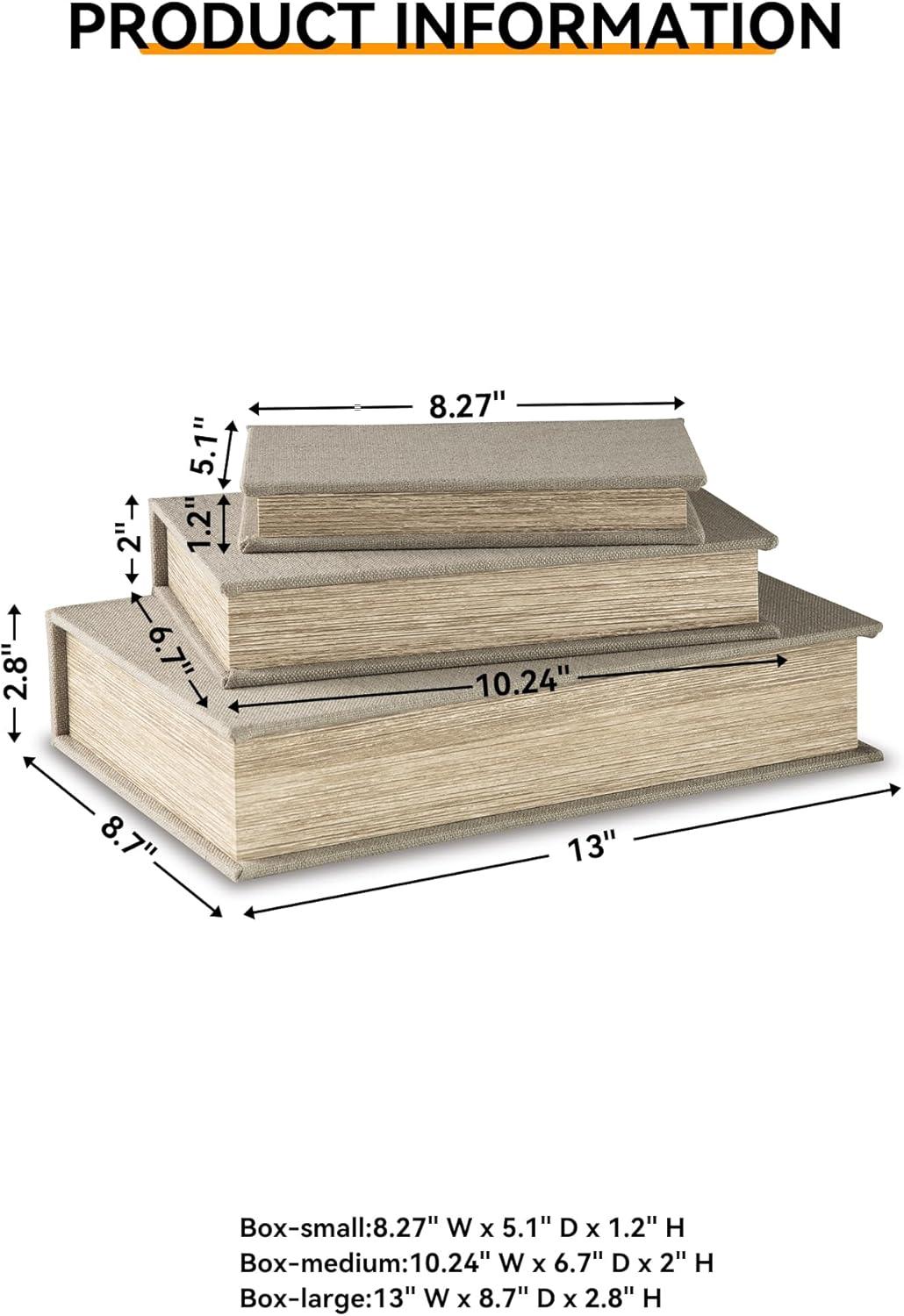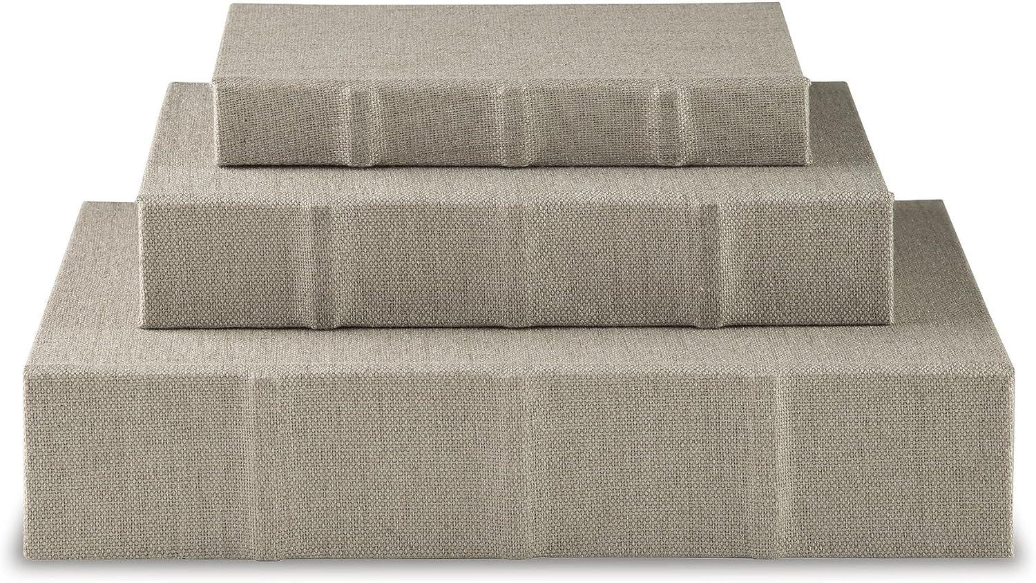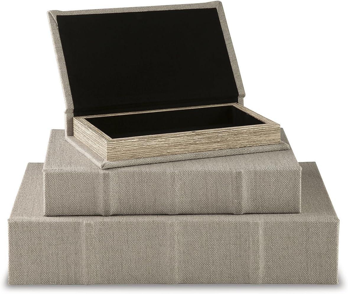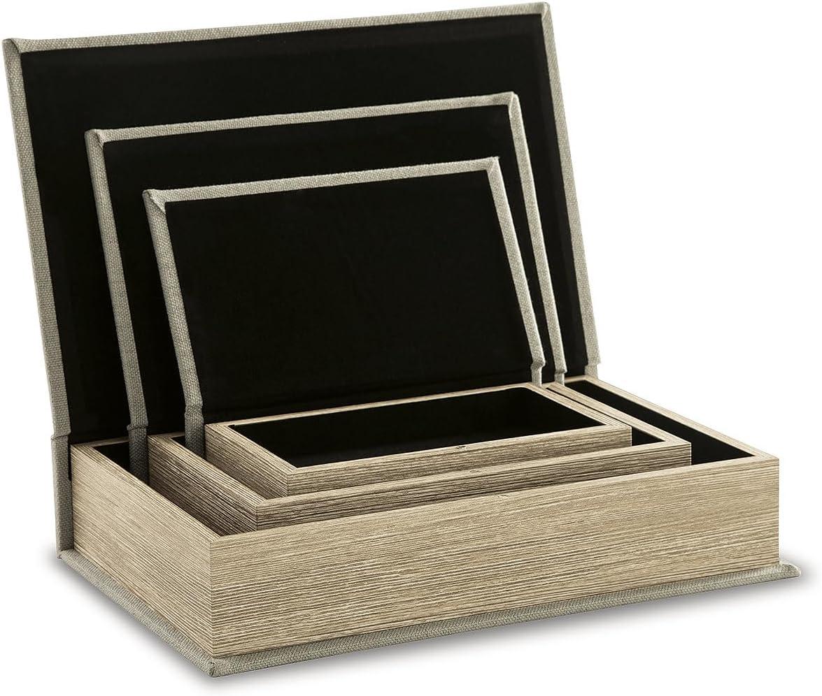 Signature Design by Ashley Jolina Vintage 3 Piece Faux Book Keepsake Storage Box Set, Small/Medium/Large, Nesting Design, Keepsake Boxes, Remote Control Storage, Brown Cover with Black Velvet Lining(White)