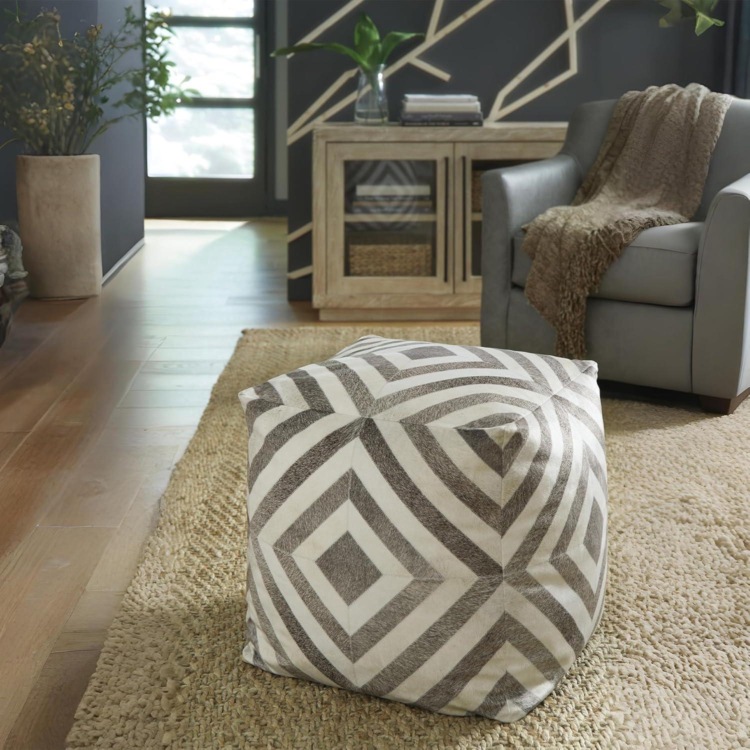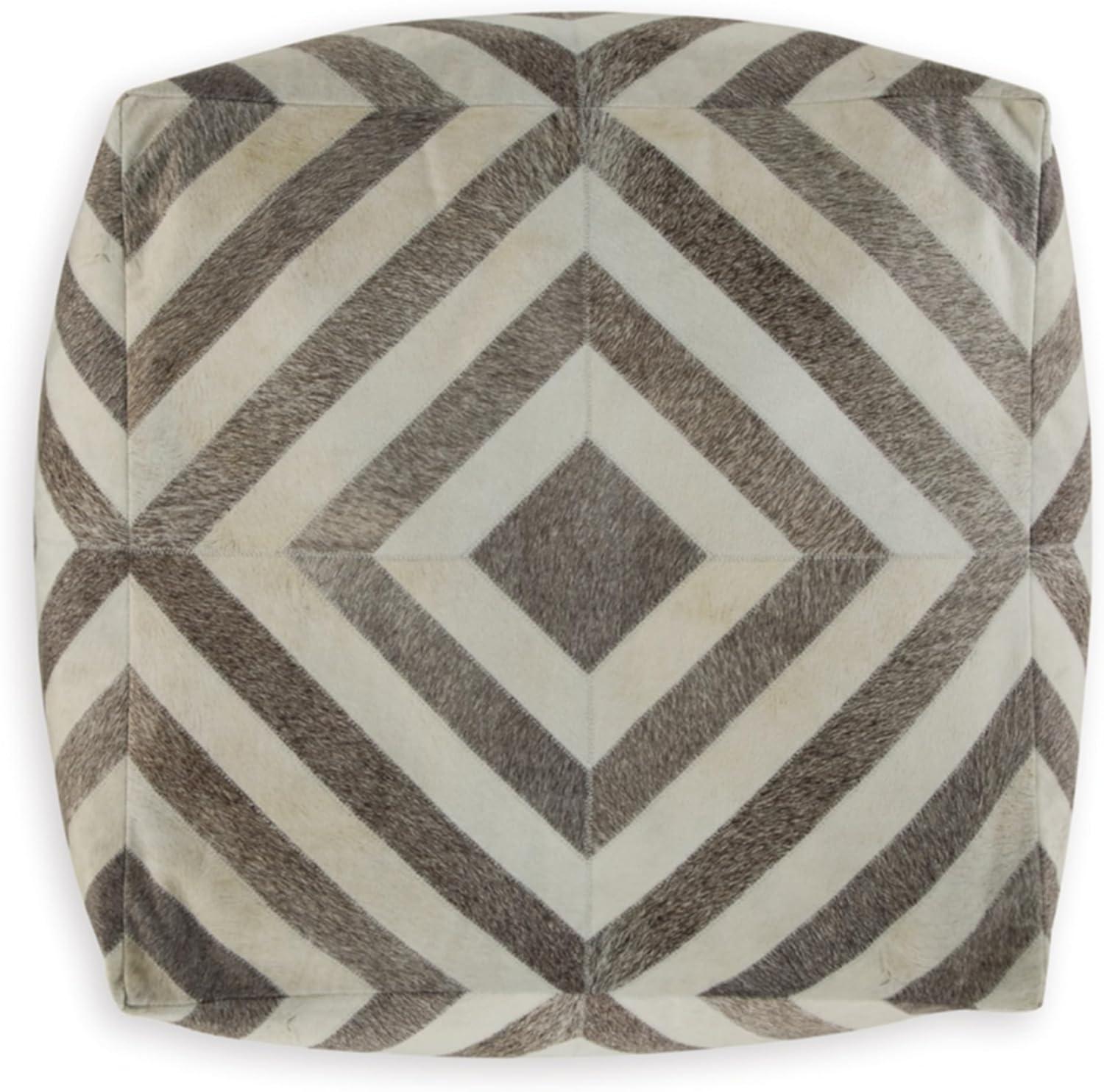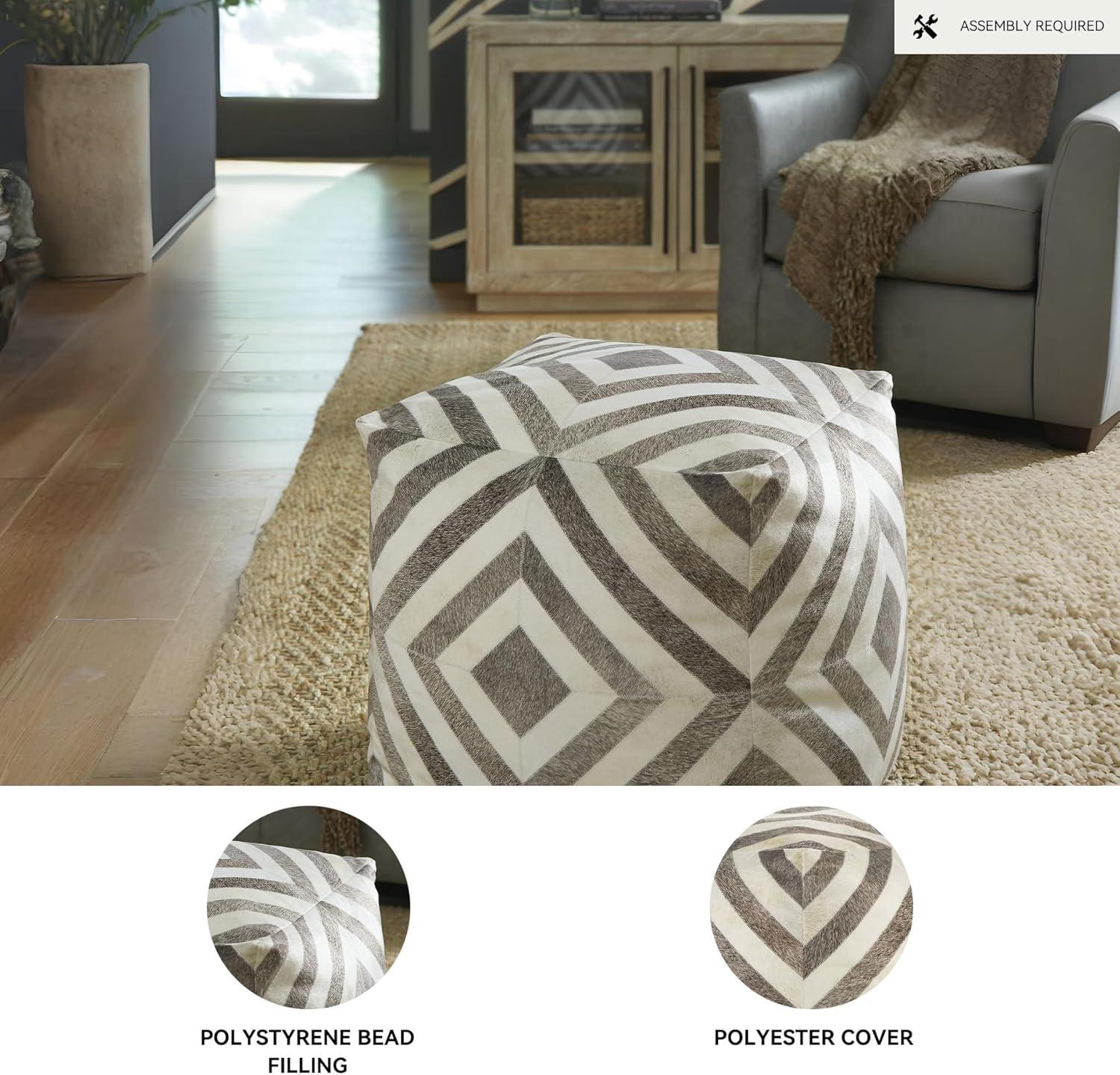 Signature Design by Ashley Josalind 16 Inch Casual Wool Pouf, Gray & Beige(Brown Chevron)