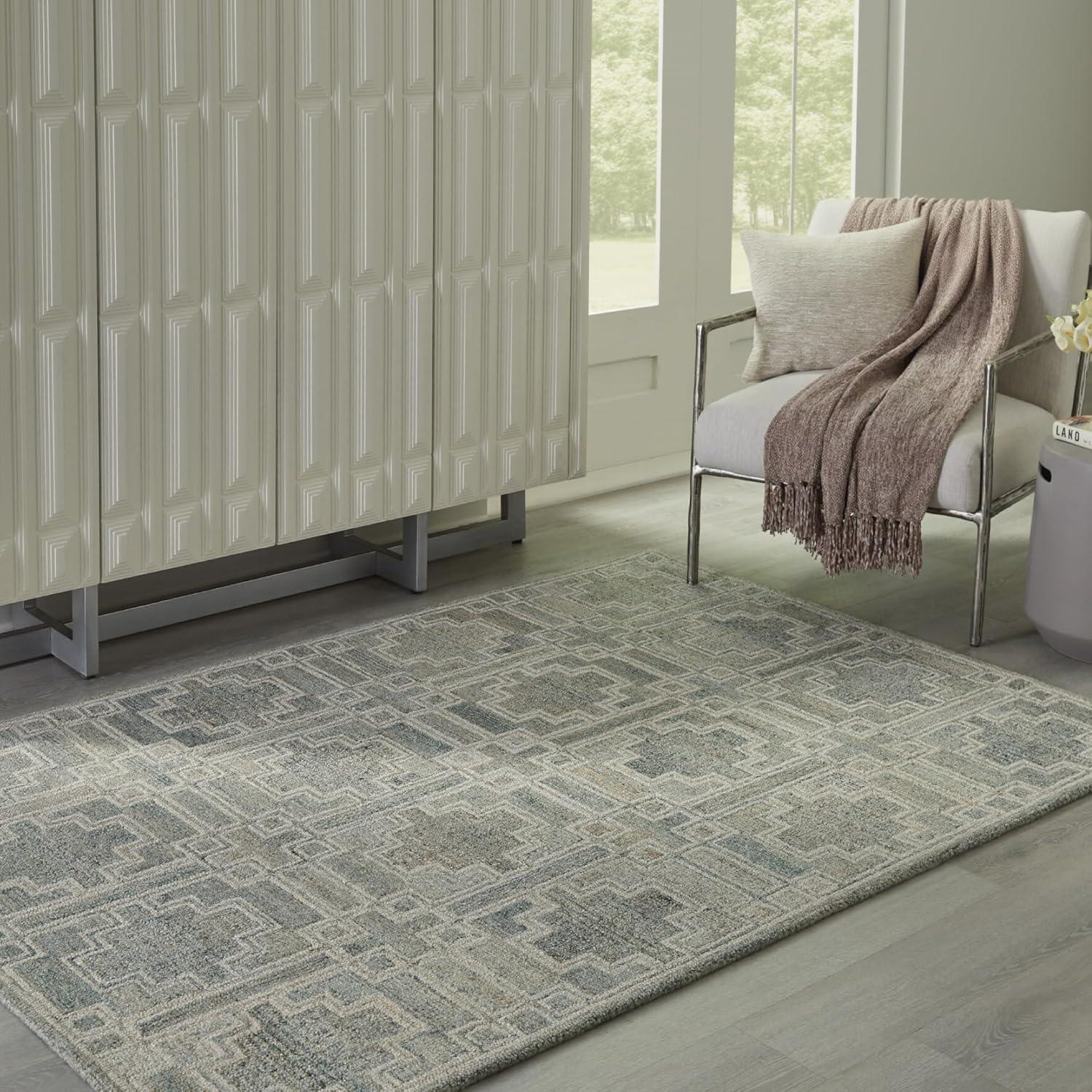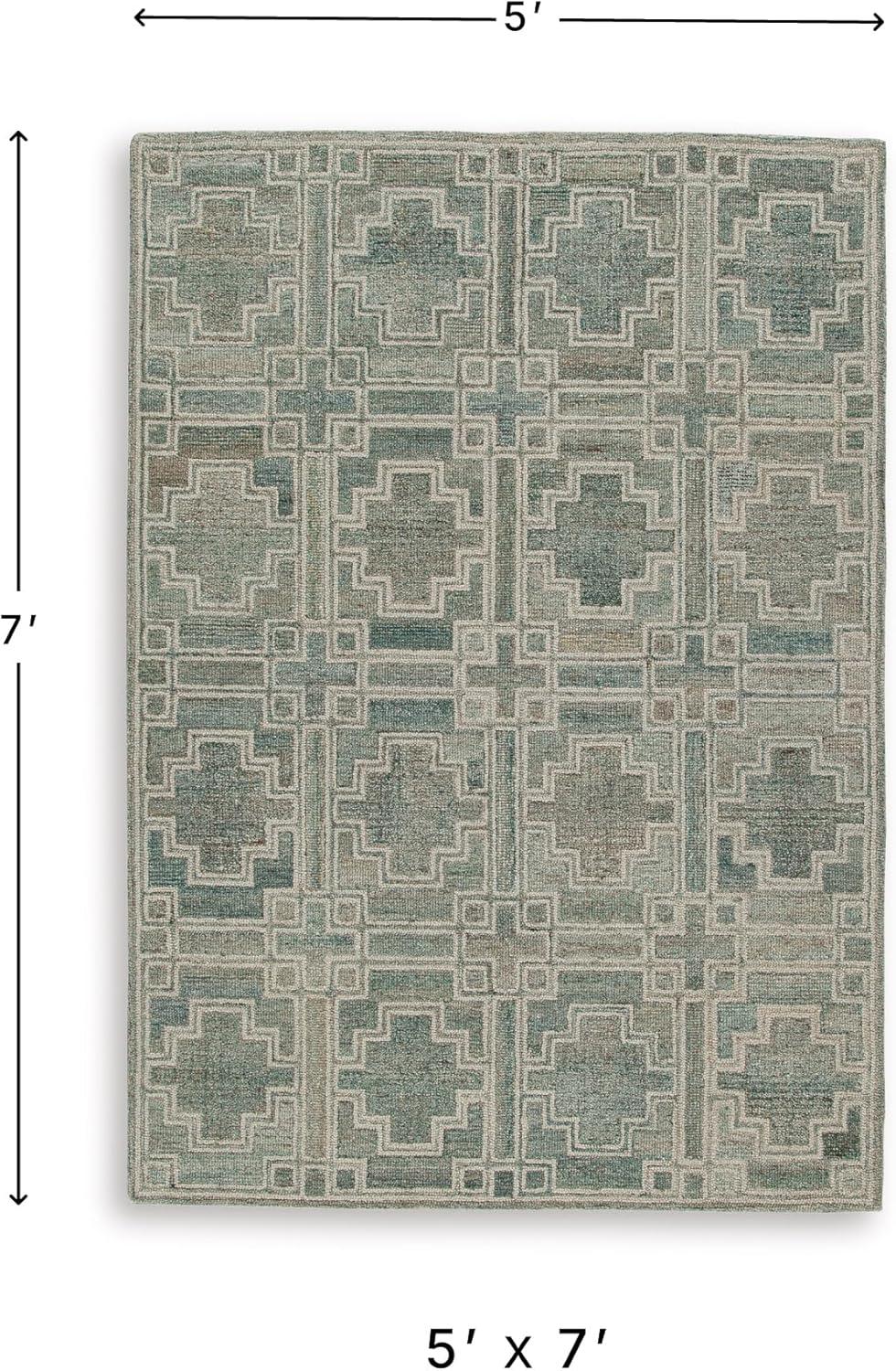 Signature Design by Ashley Jossland Casual Indoor Geometric Wool Blend Handmade 8 x 10 Large Rug, Green & Beige(5’1″ x 7′ (Rectangular))