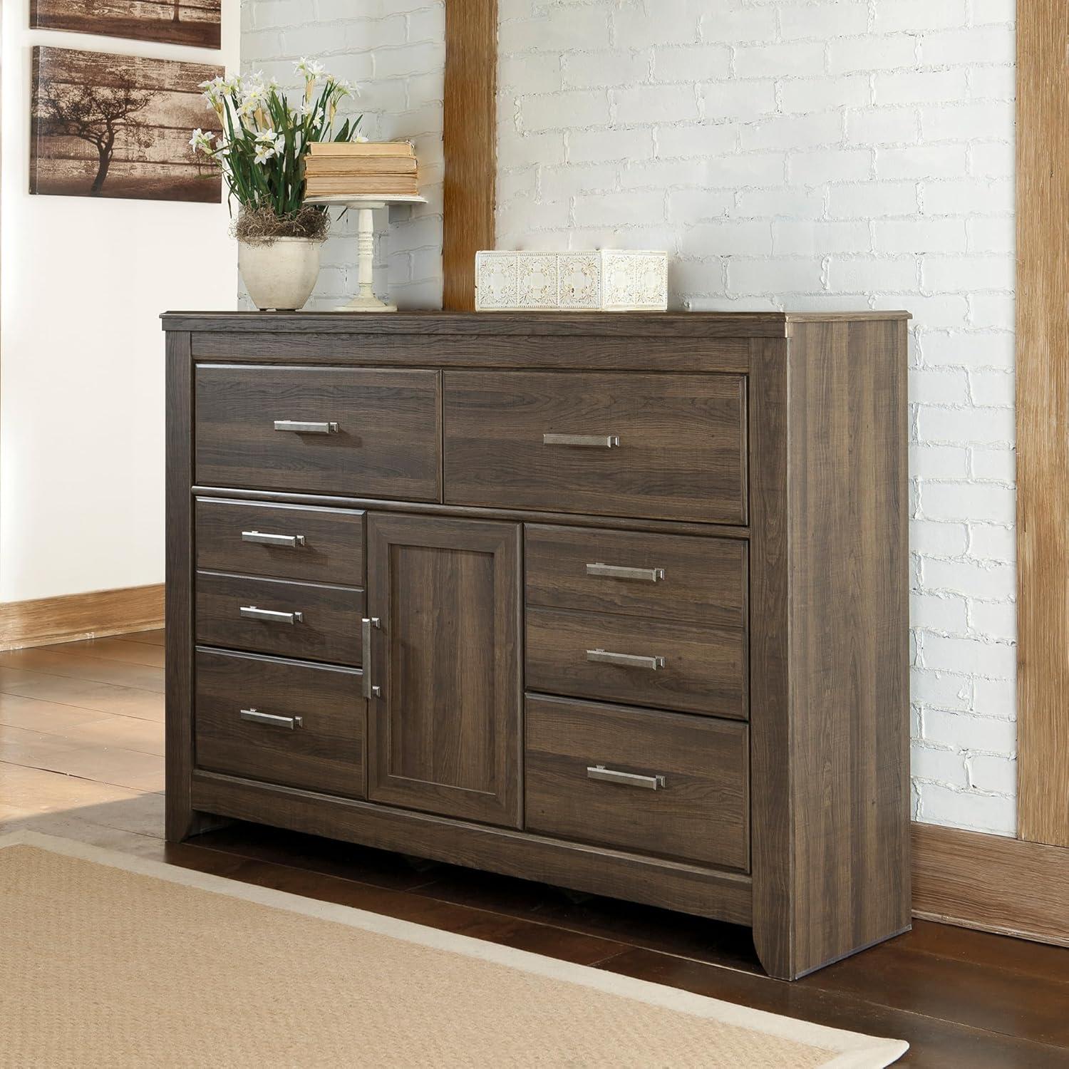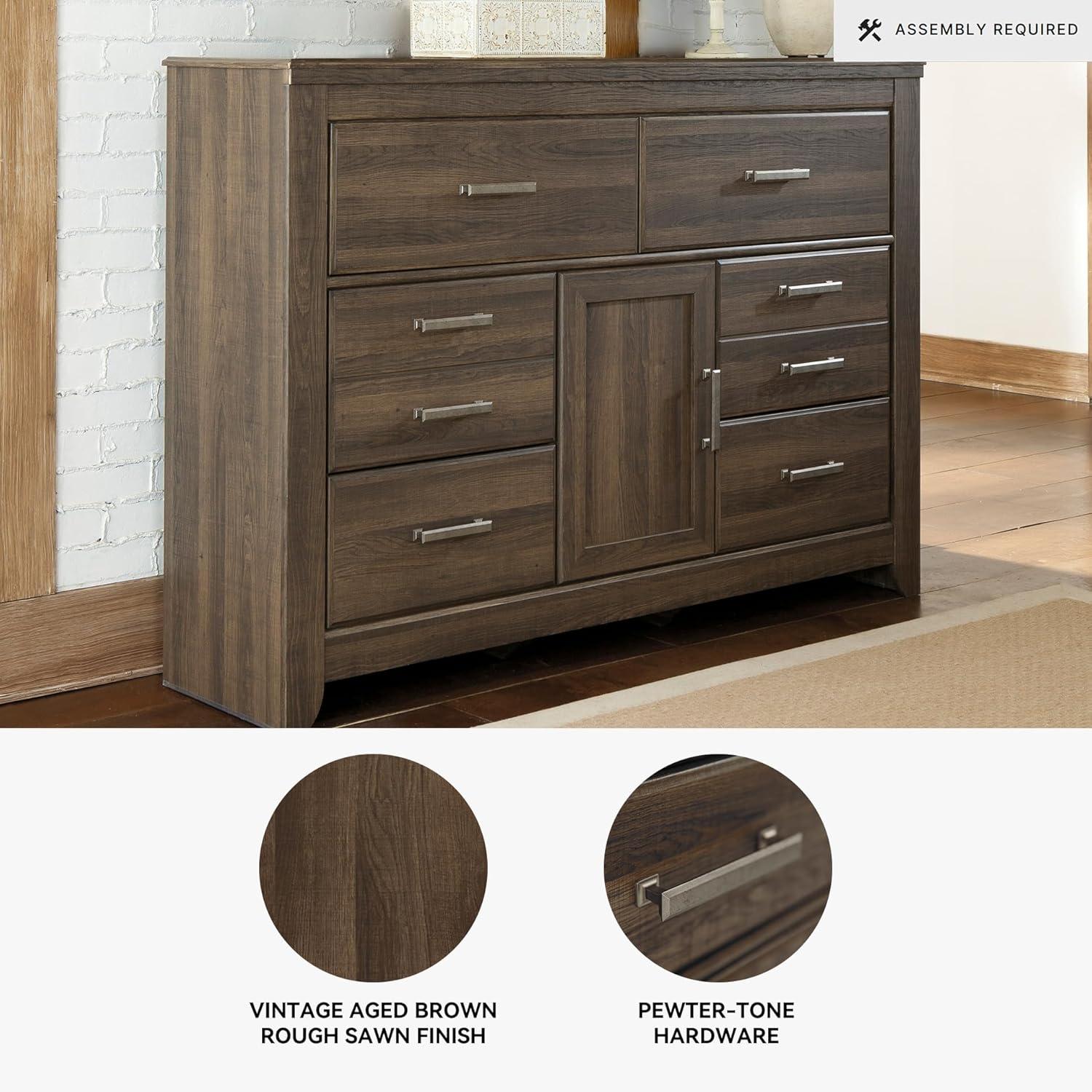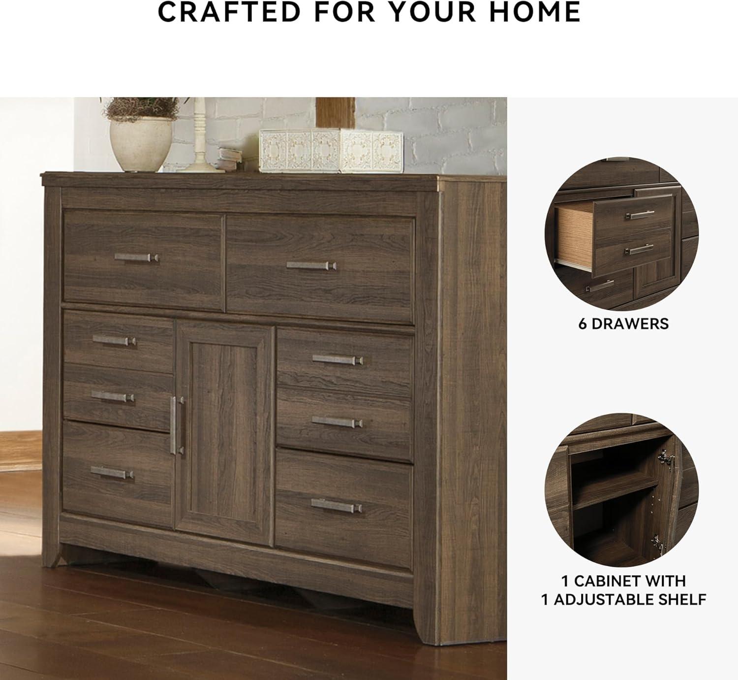 Signature Design by Ashley Juararo Rustic 6 Drawer Dresser with 1 Cabinet & Adjustable Shelf, Dark Brown