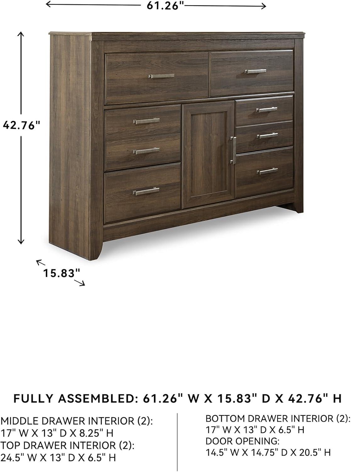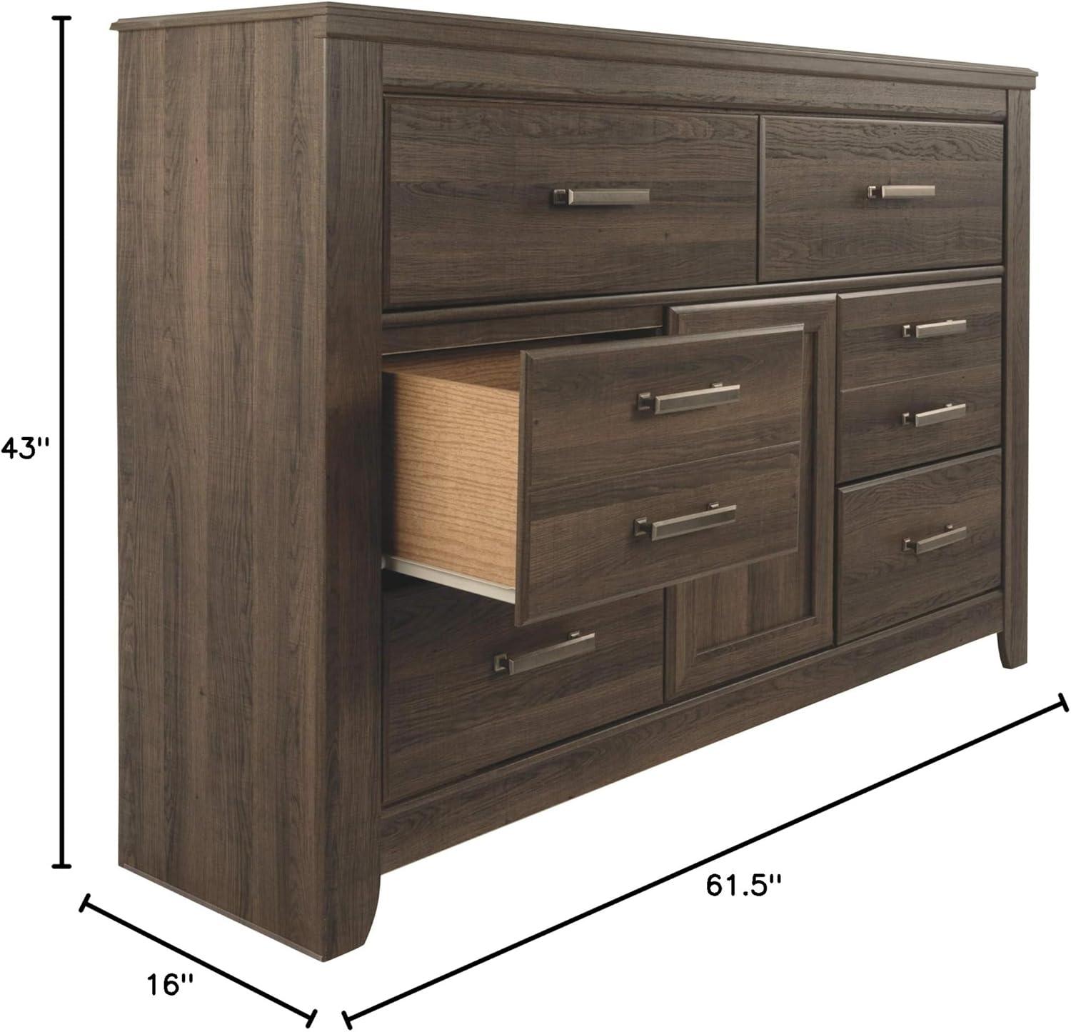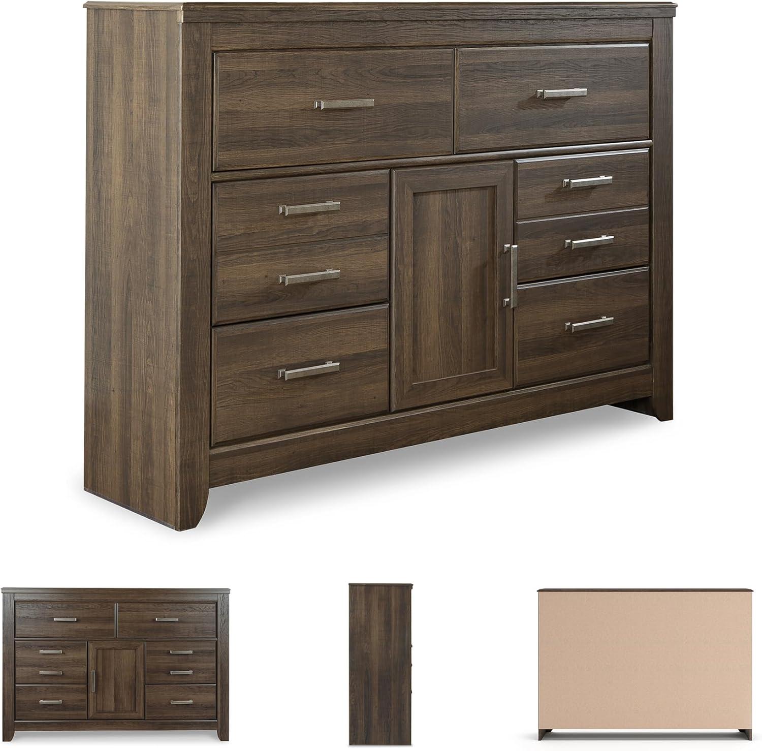 Signature Design by Ashley Juararo Rustic 6 Drawer Dresser with 1 Cabinet & Adjustable Shelf, Dark Brown