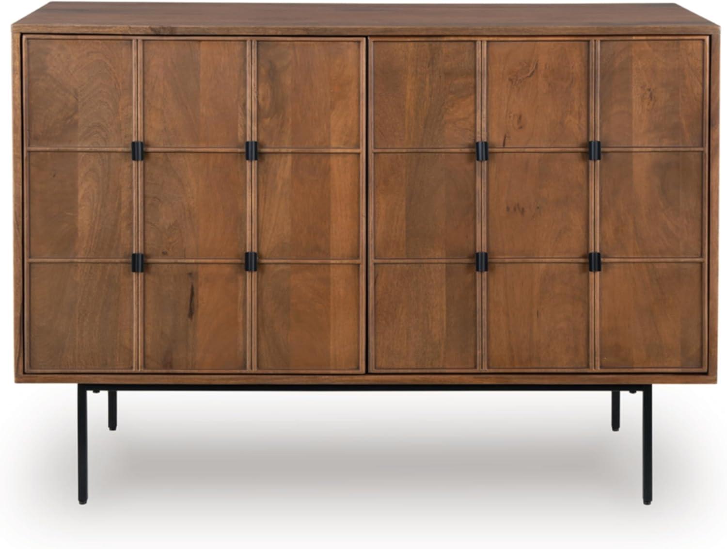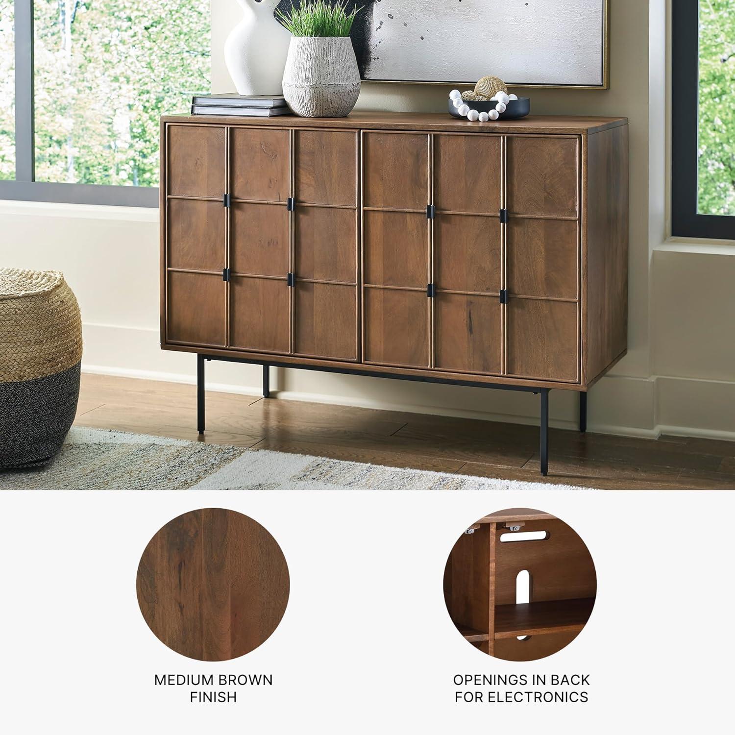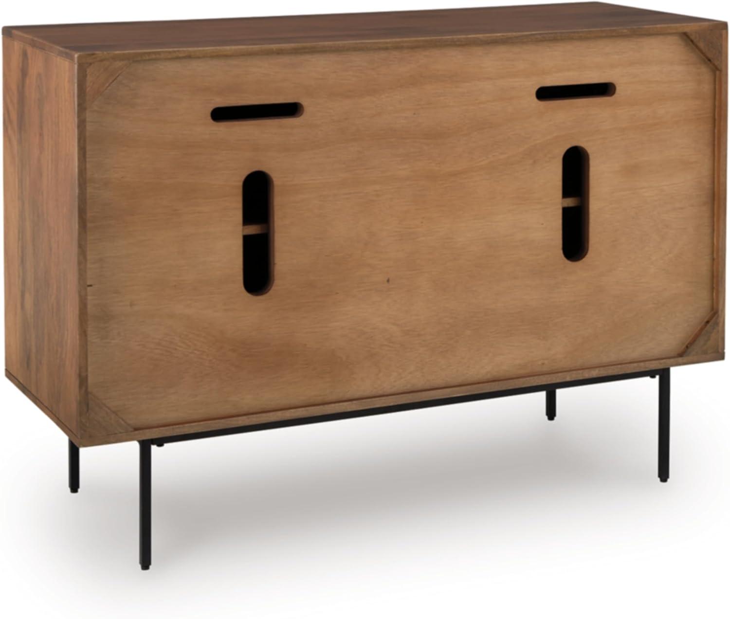 Signature Design by Ashley Juddins Mid-Century Modern Accent Cabinet with 2 Magnet Doors, 2 Shelves and Cable Management, Light Brown
