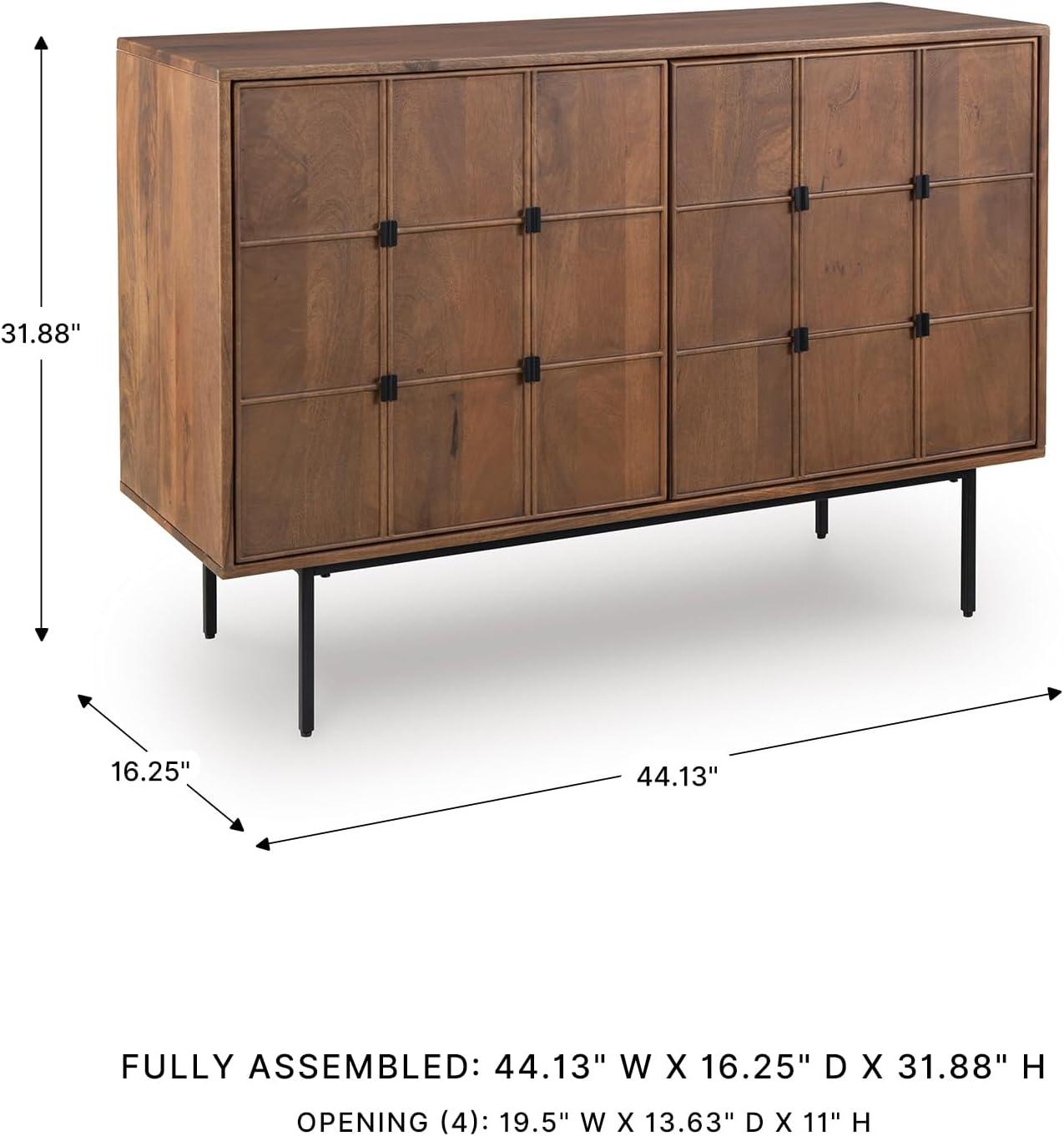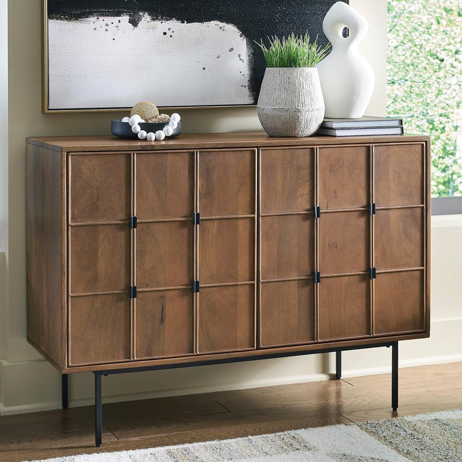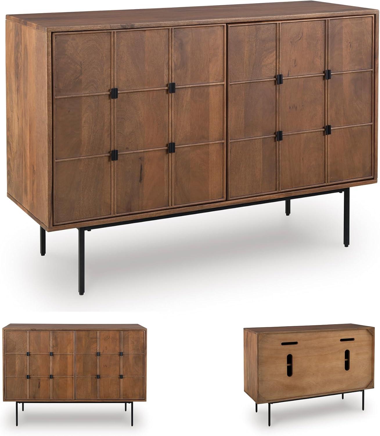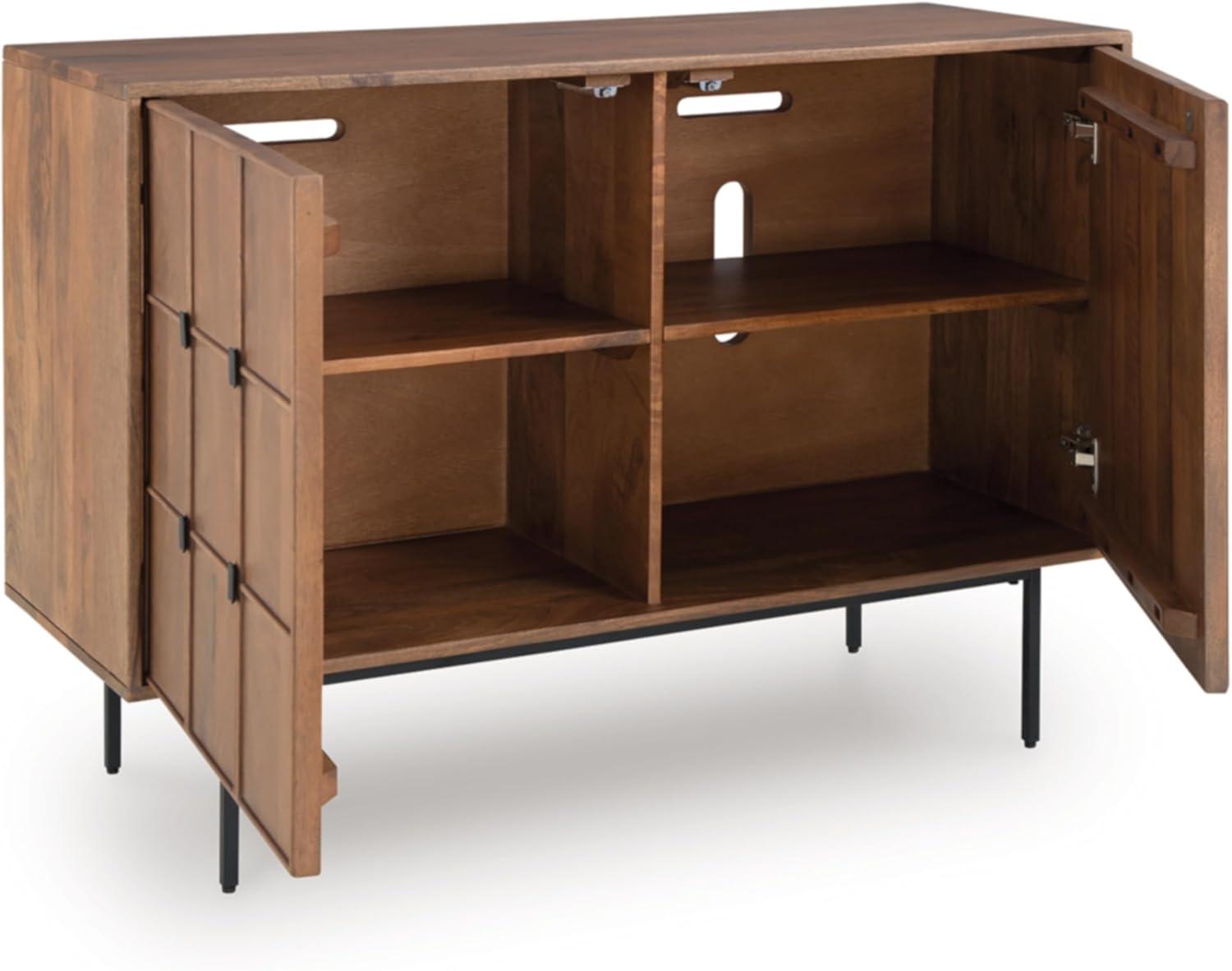 Signature Design by Ashley Juddins Mid-Century Modern Accent Cabinet with 2 Magnet Doors, 2 Shelves and Cable Management, Light Brown