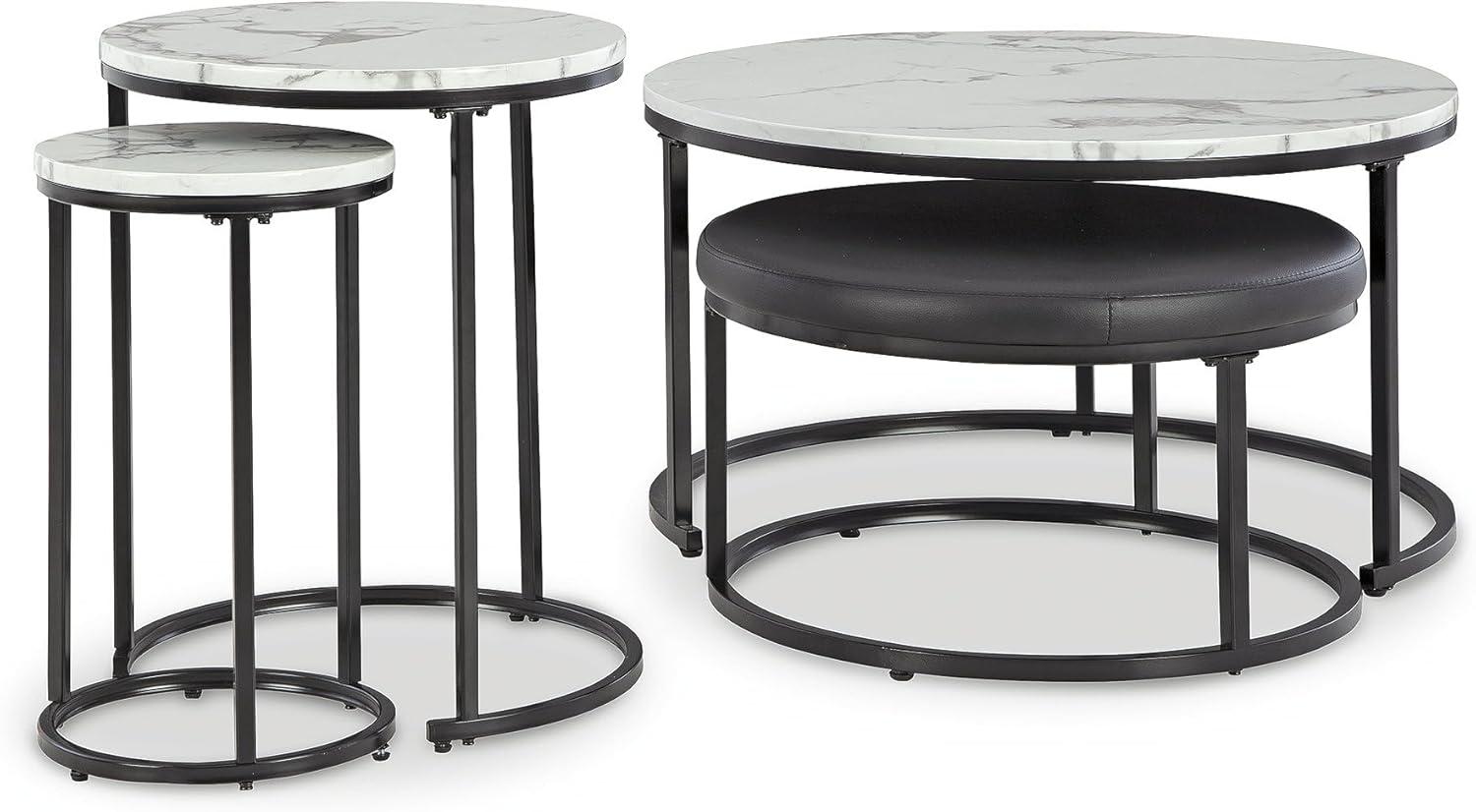 Signature Design by Ashley Jusmour Modern Nesting Table Set with Faux Leather Upholstered Ottoman, Set of 4, Black & White