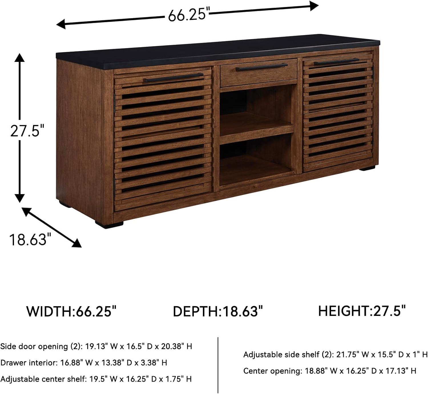DIMENSIONS: Measures 66.25″ W x 18″ D x 27.5″ H