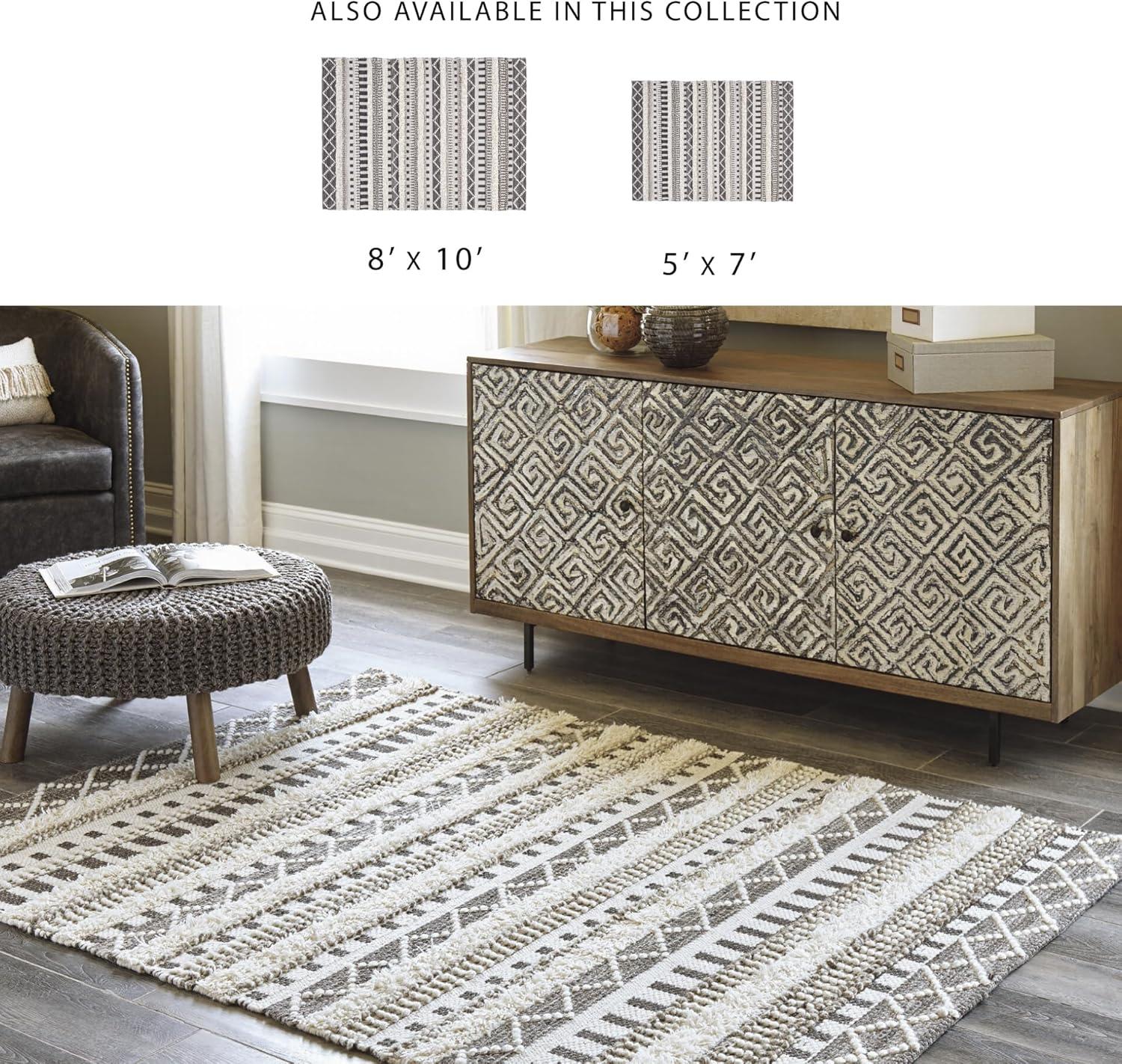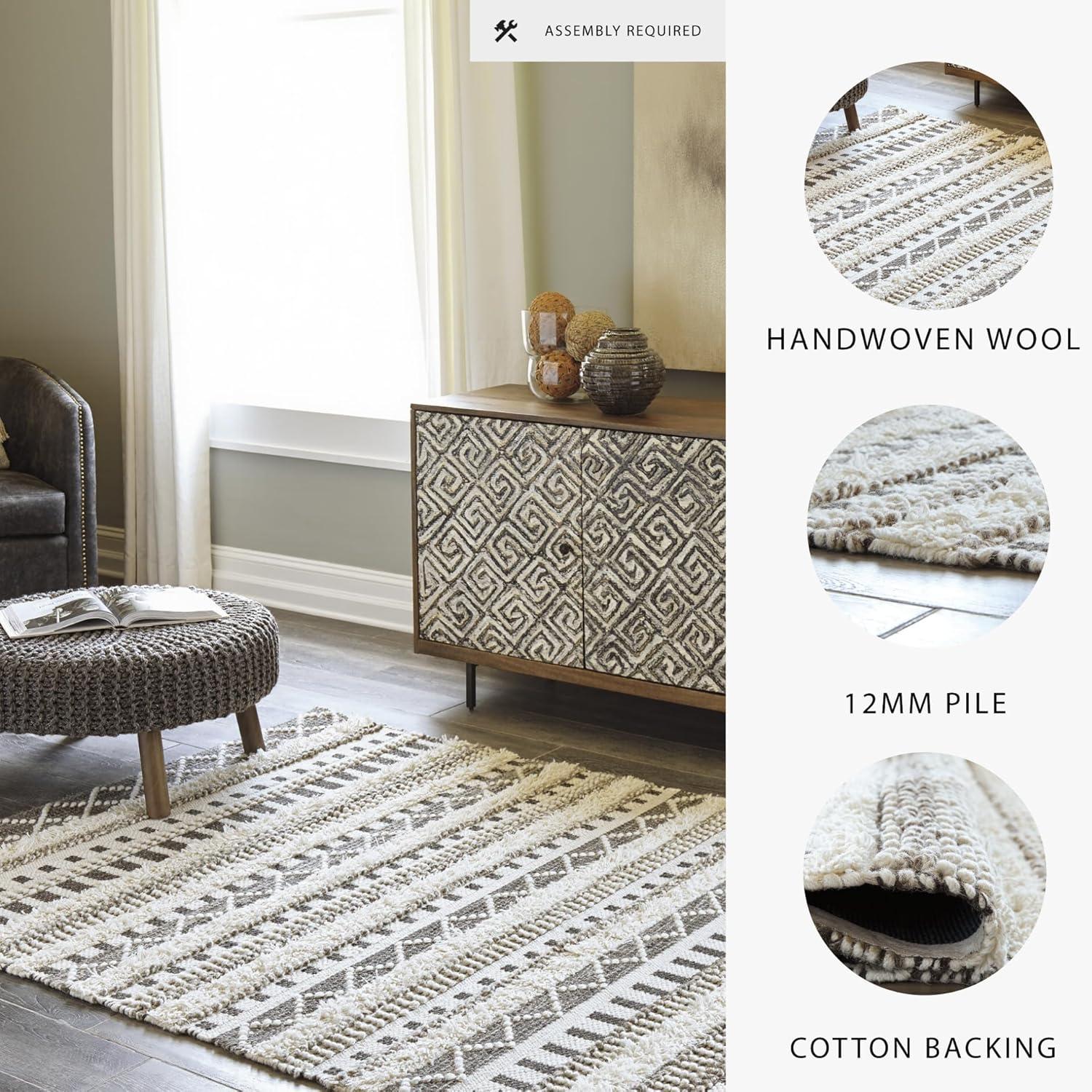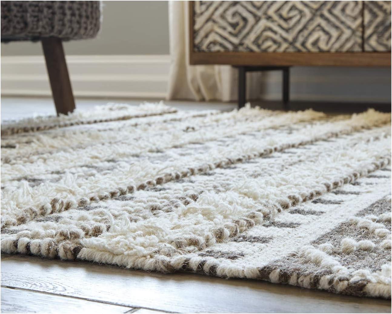 Signature Design by Ashley Karalee Tribal 5 x 7 Medium Pile Rug with Geometric Design, Ivory & Brown(5′ x 7′ (Rectangular))