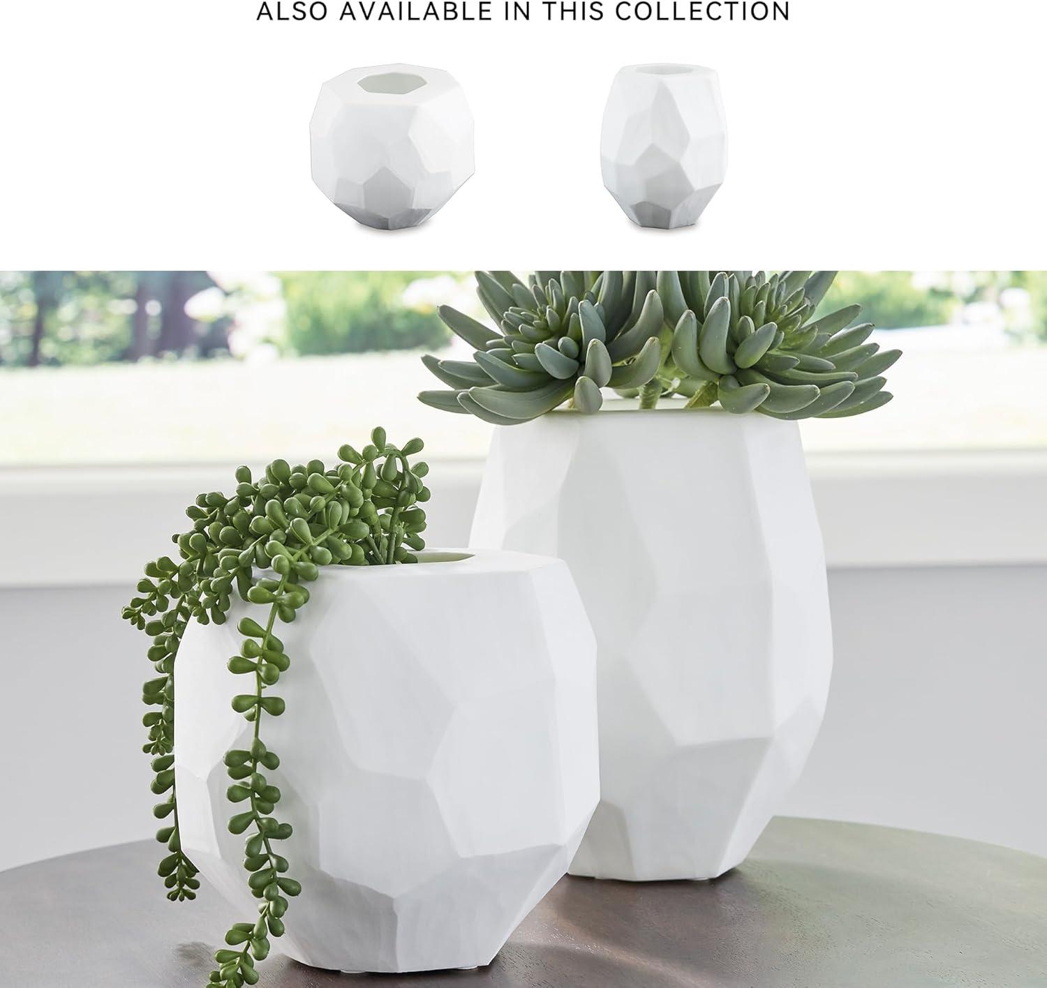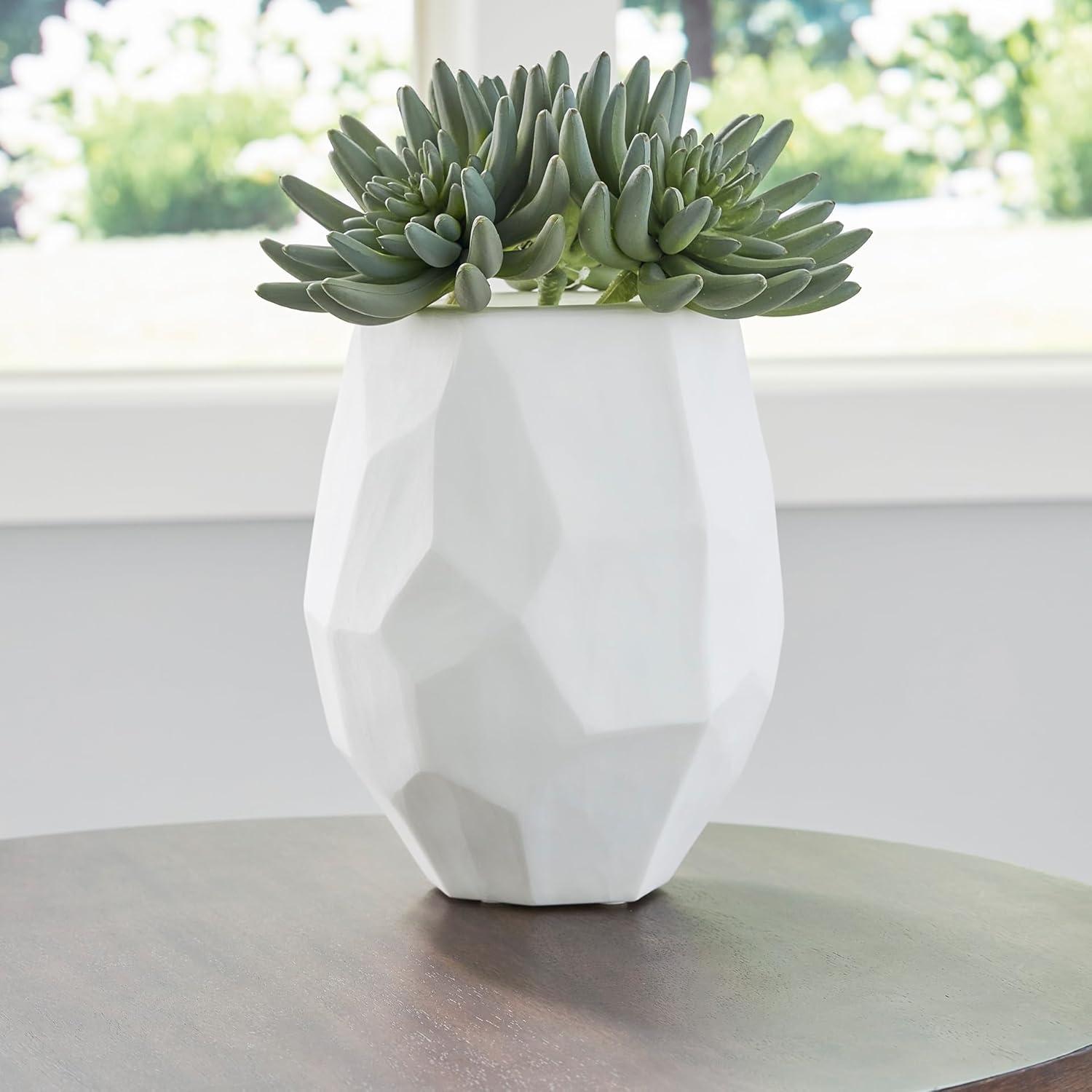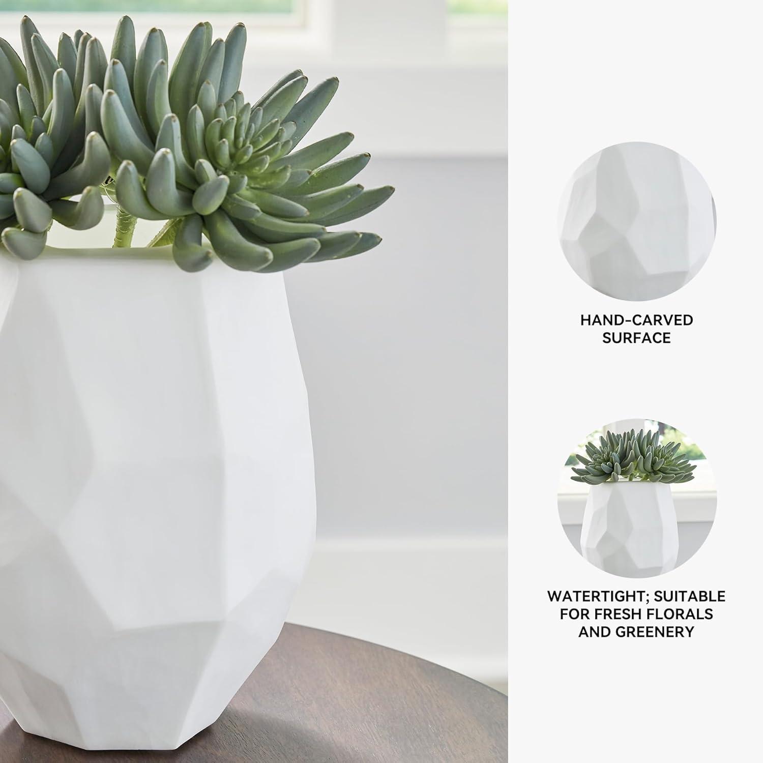 Equal parts elegant and organic, this vase brings ethereal beauty to your tabletop. Its white finish seamlessly harmonizes with existing accents. Meticulous craftsmanship creates the unique, faceted look of the hand-carved surface and makes each piece one of a kind.