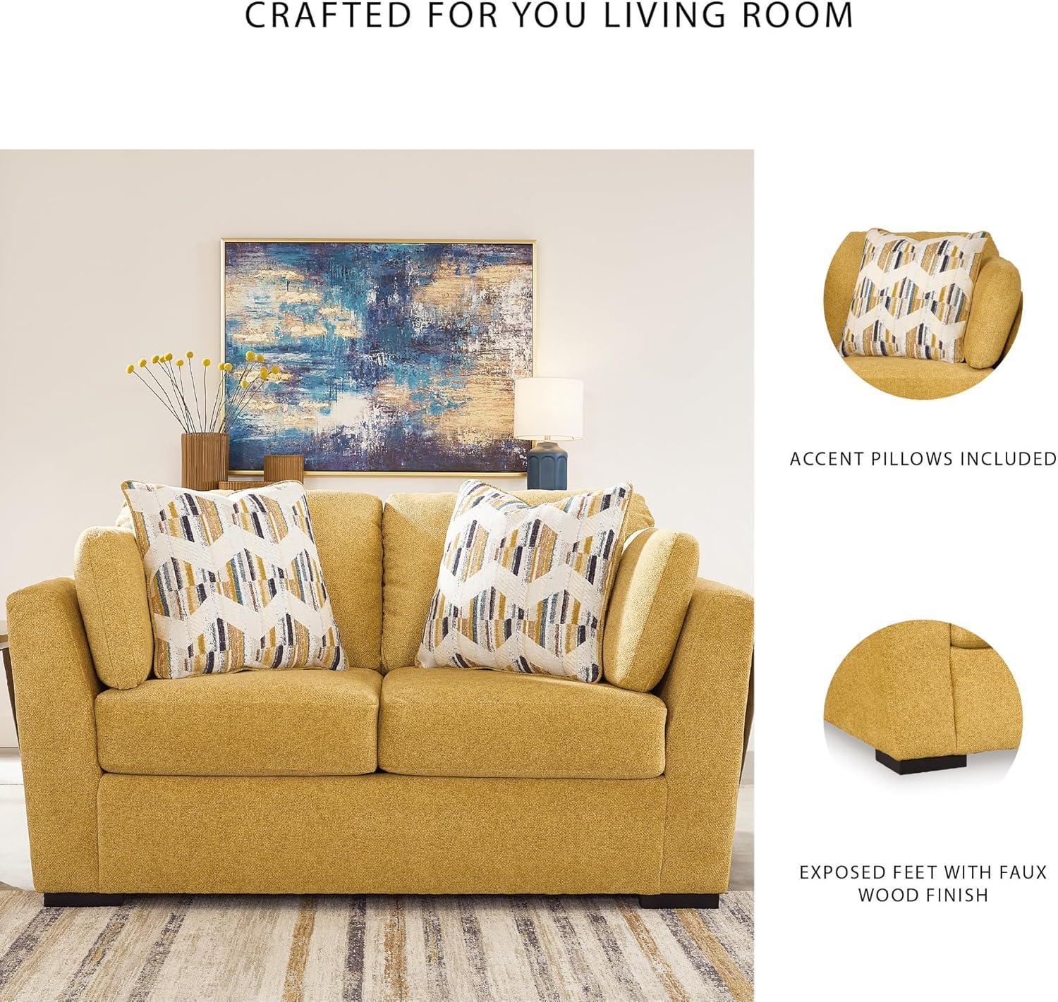 Signature Design by Ashley Keerwick Scandinavian Loveseat with 4 Toss Pillows, Yellow(Yellow)
