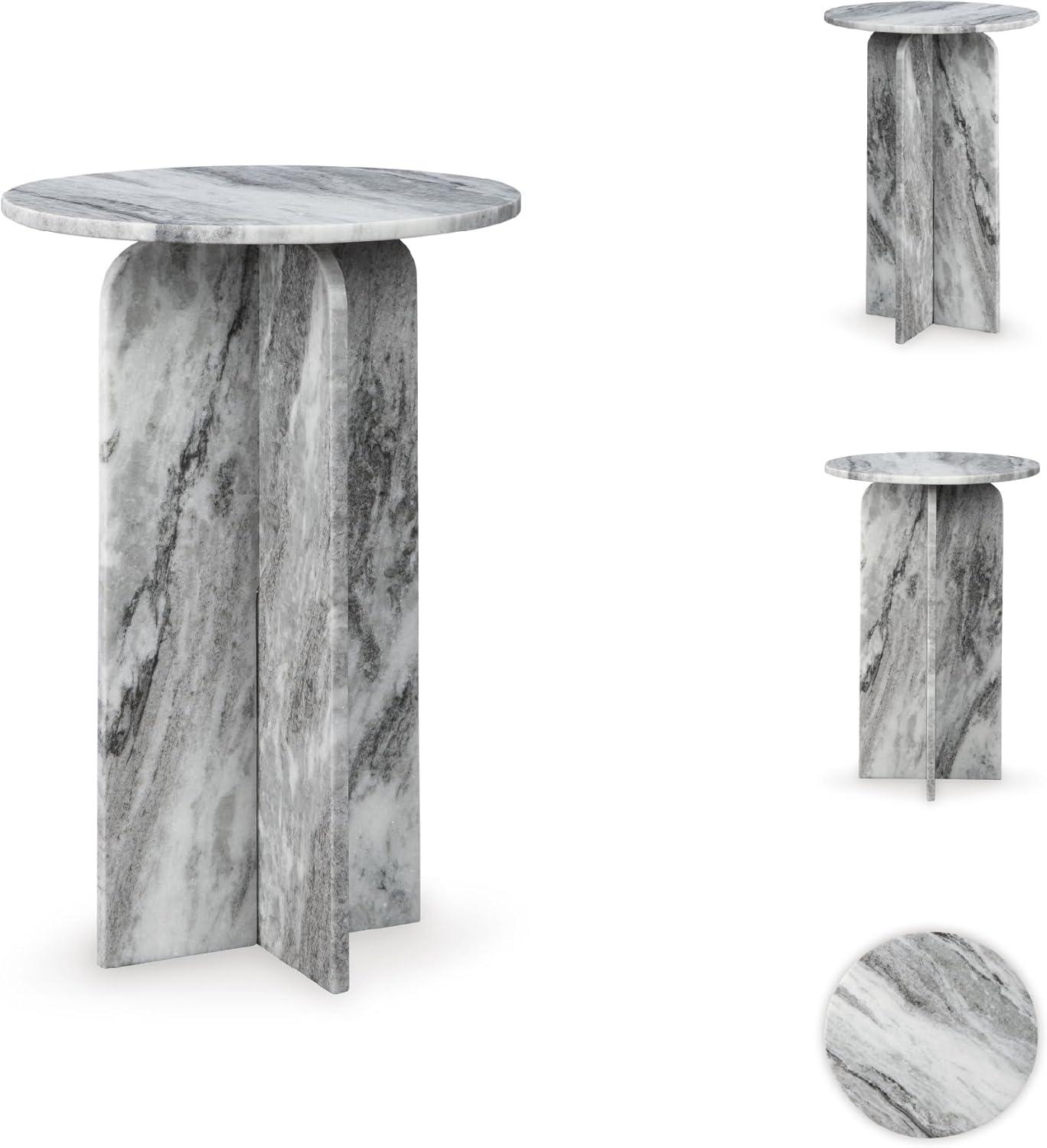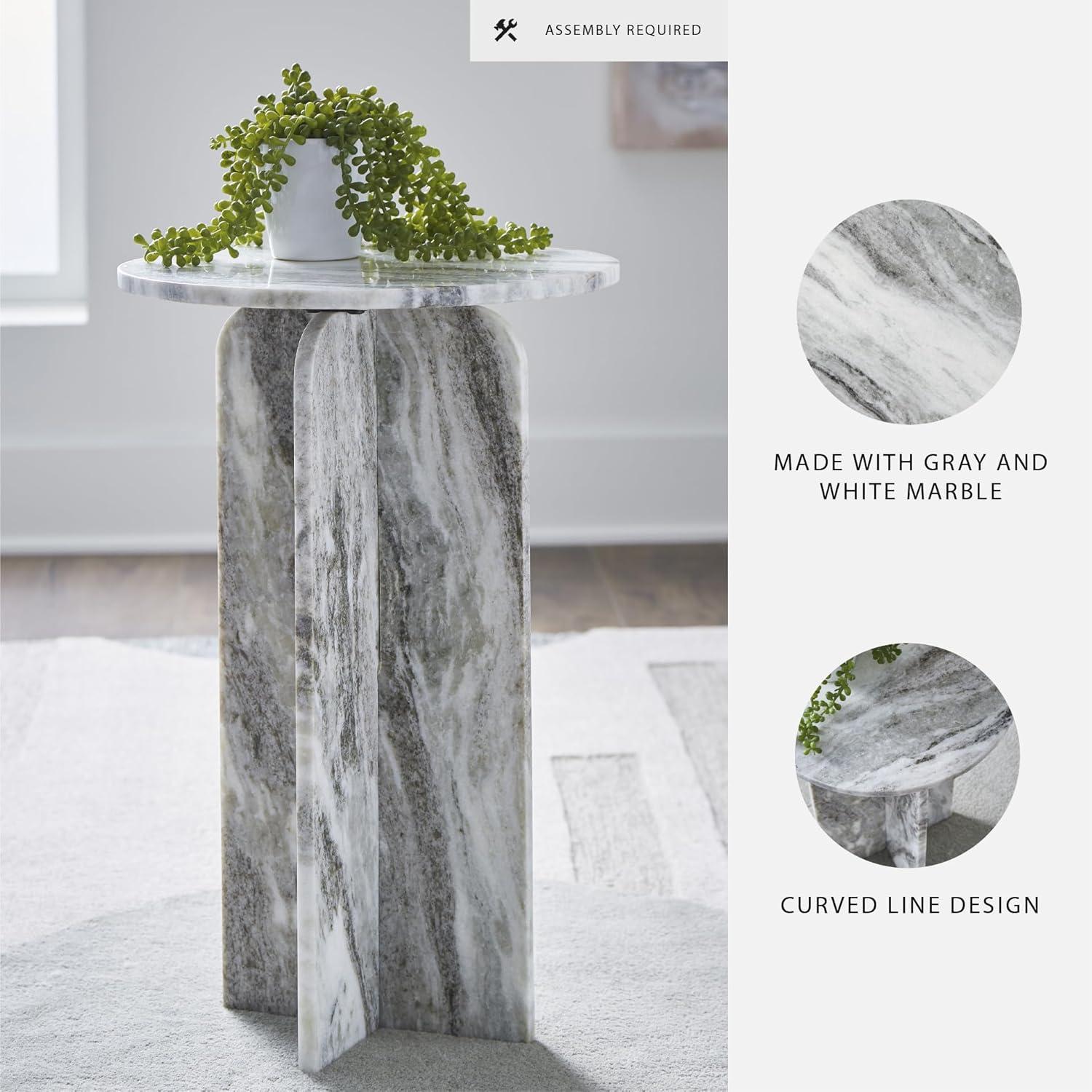 Signature Design by Ashley Keithwell Contemporary Marble Top Accent Table, Gray(Circle)