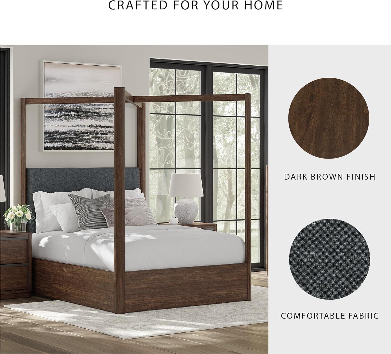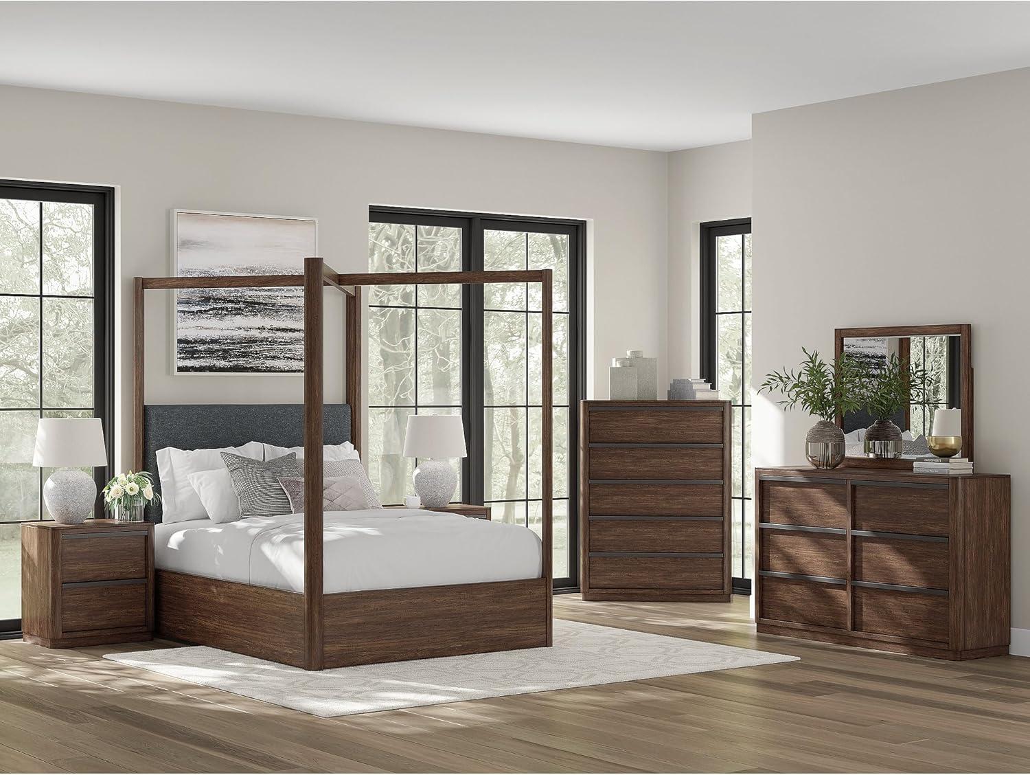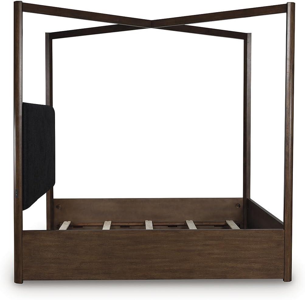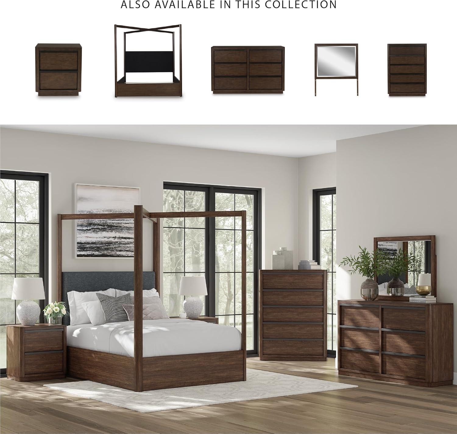 Signature Design by Ashley Kendamor Contemporary 6-Drawer Dresser and Mirror with Anti-Tipping Restraint, Dark Brown(Queen Canopy Bed)
