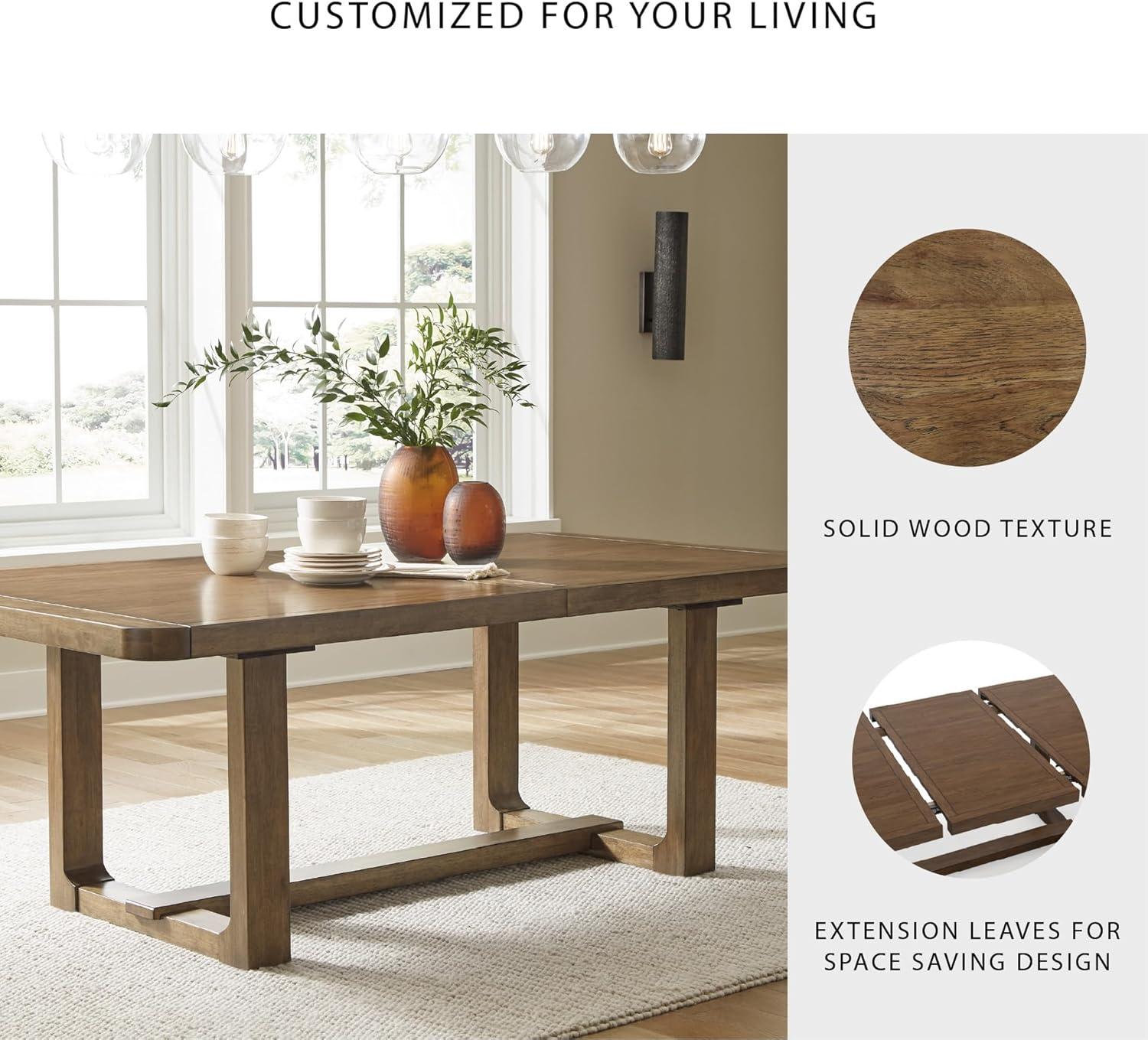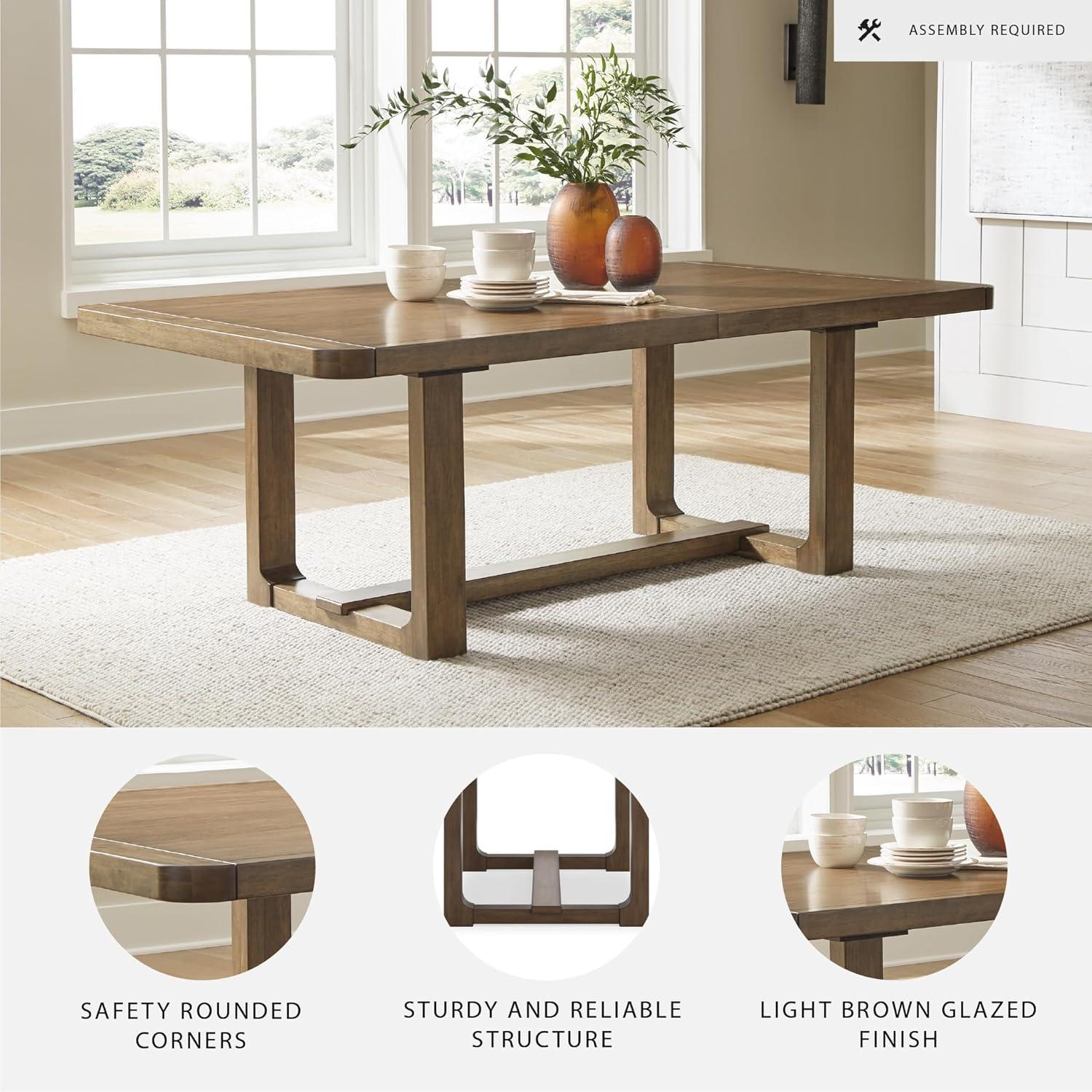 Signature Design by Ashley Kendamor Rectangular Dining Room Extension Table with Table Glide System, Seats up to 8, Wood, 108″ Wide with Leaf, Dark Brown(Light Brown)