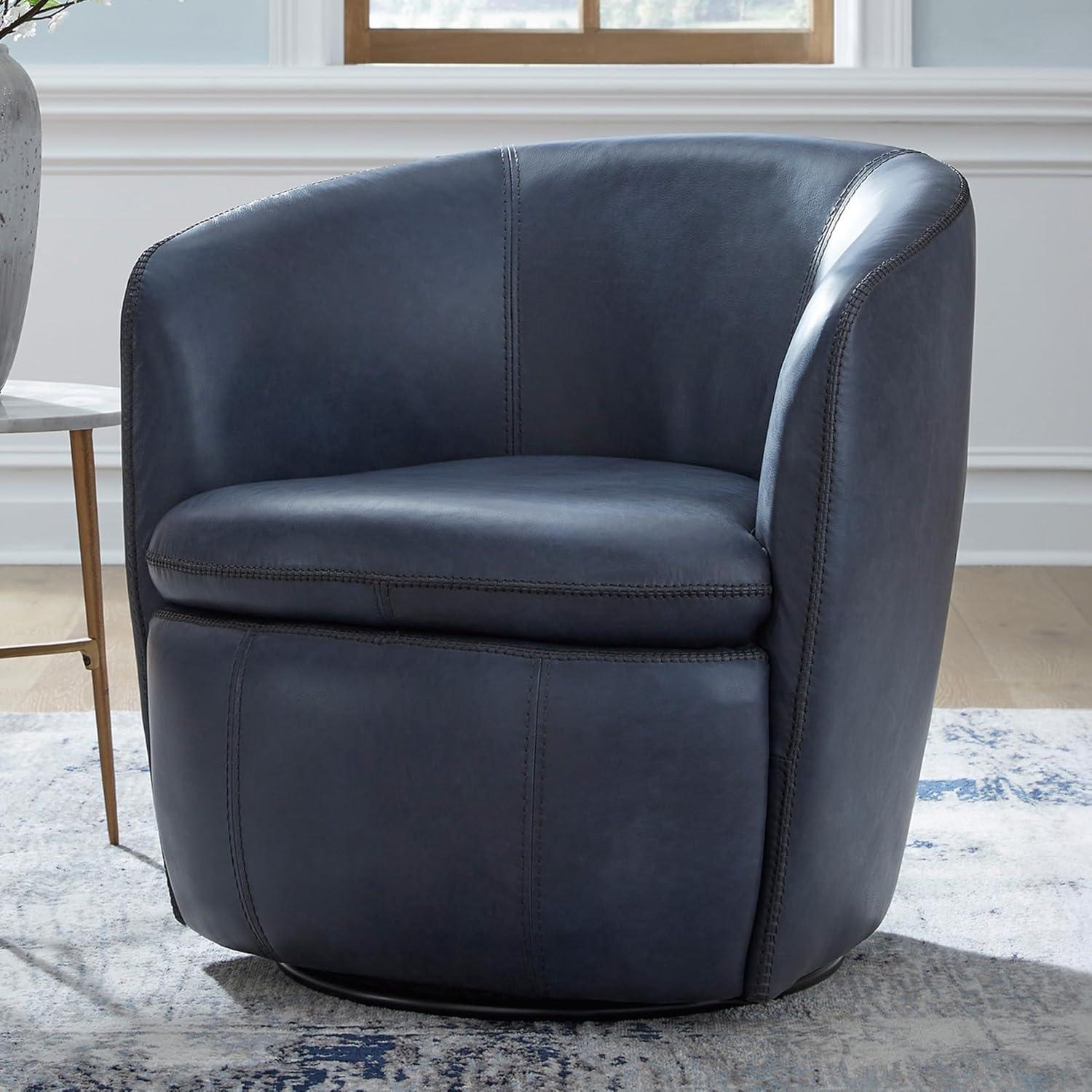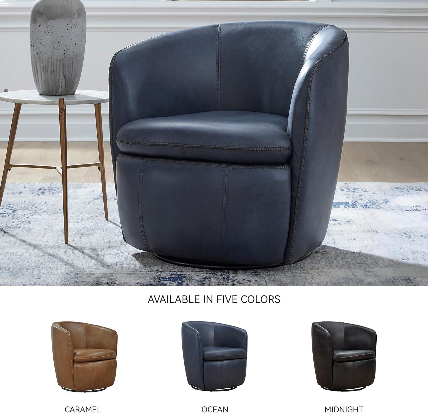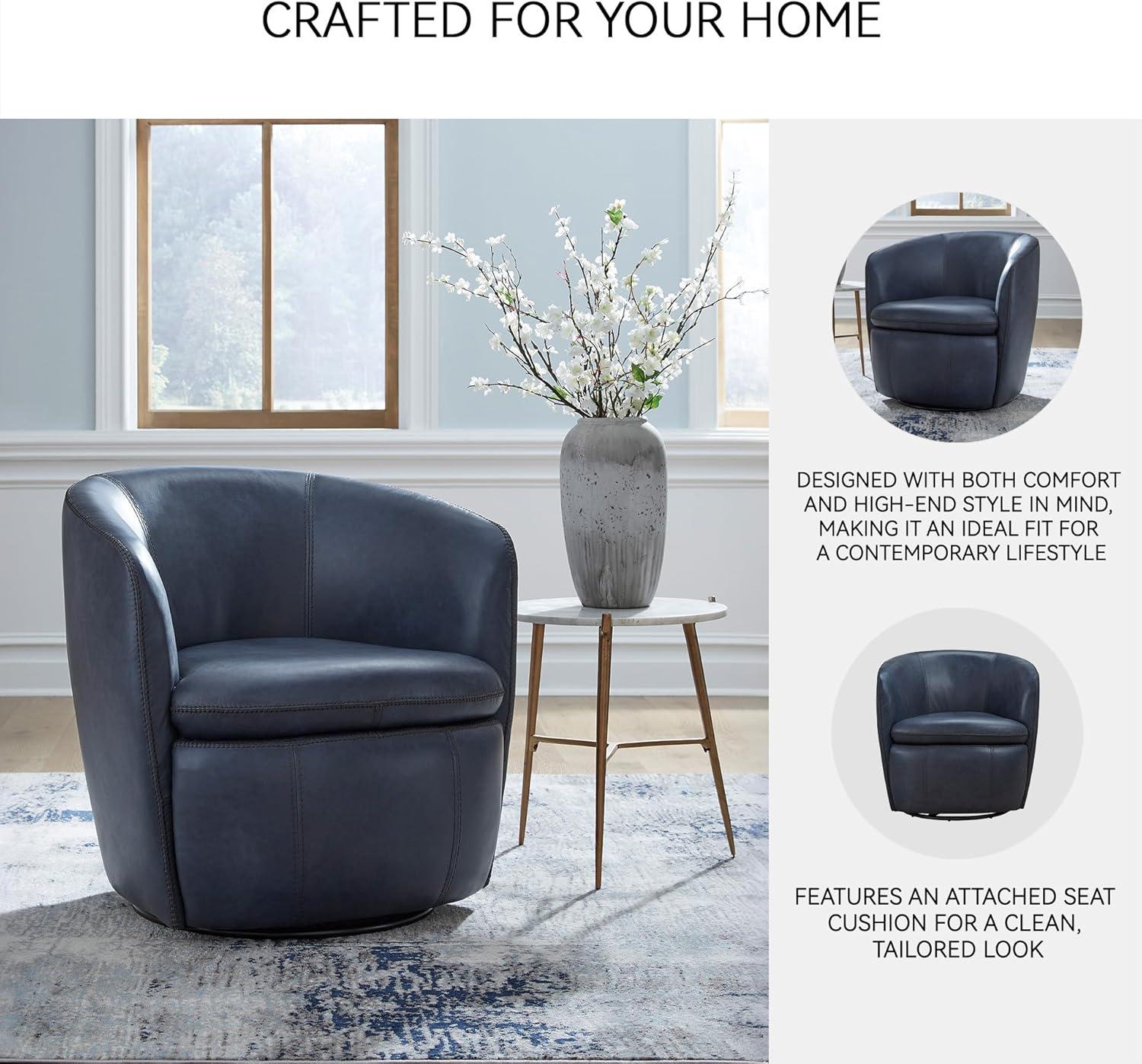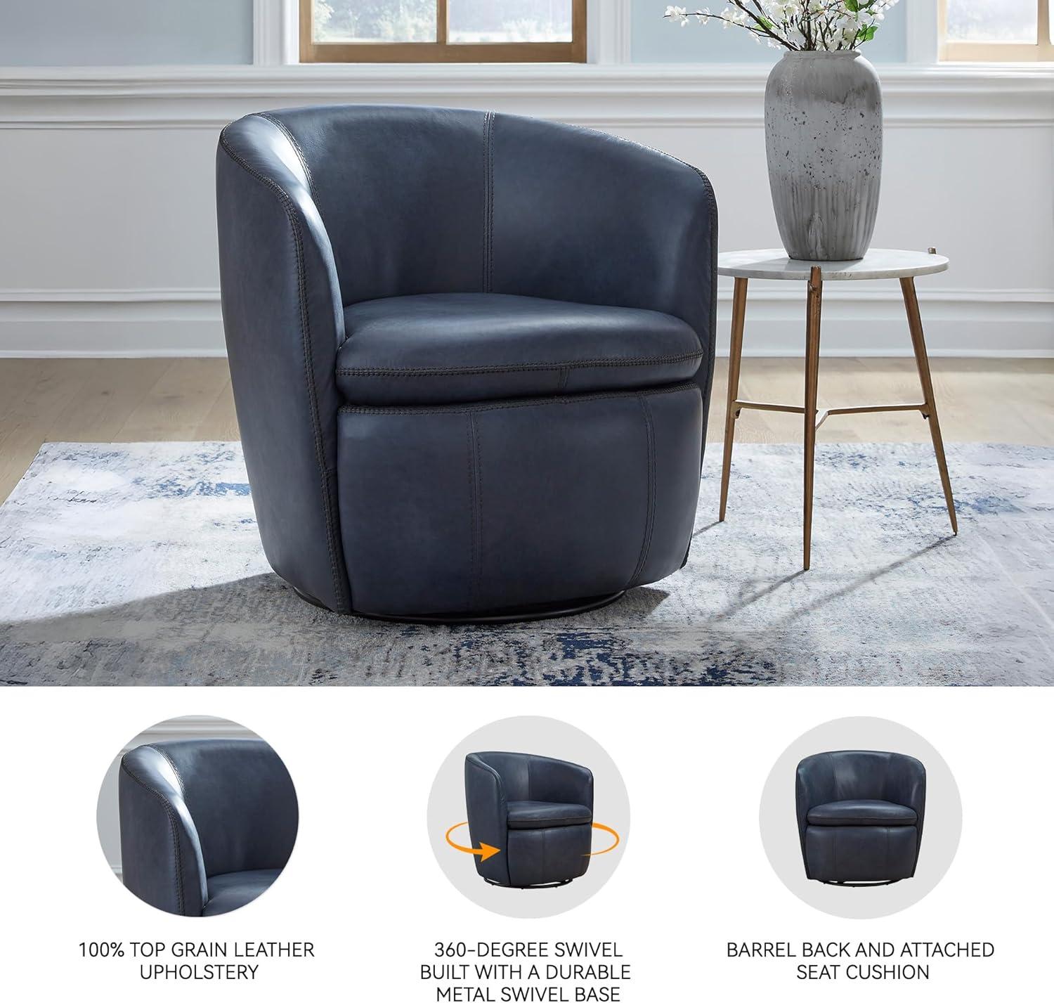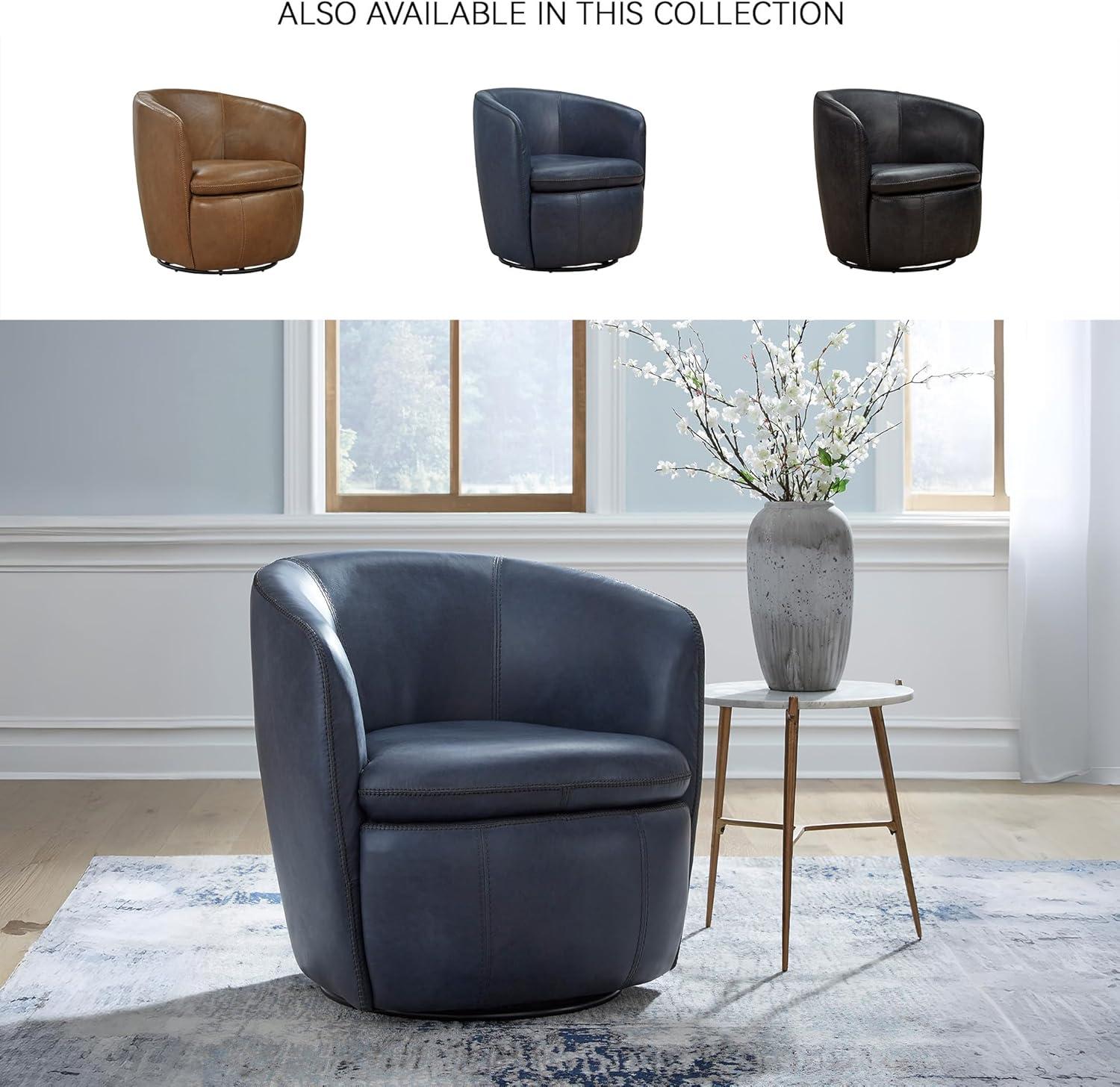 Signature Design by Ashley Kierreys Contemporary Top Grain Leather Swivel Chair, Light Brown(Blue)