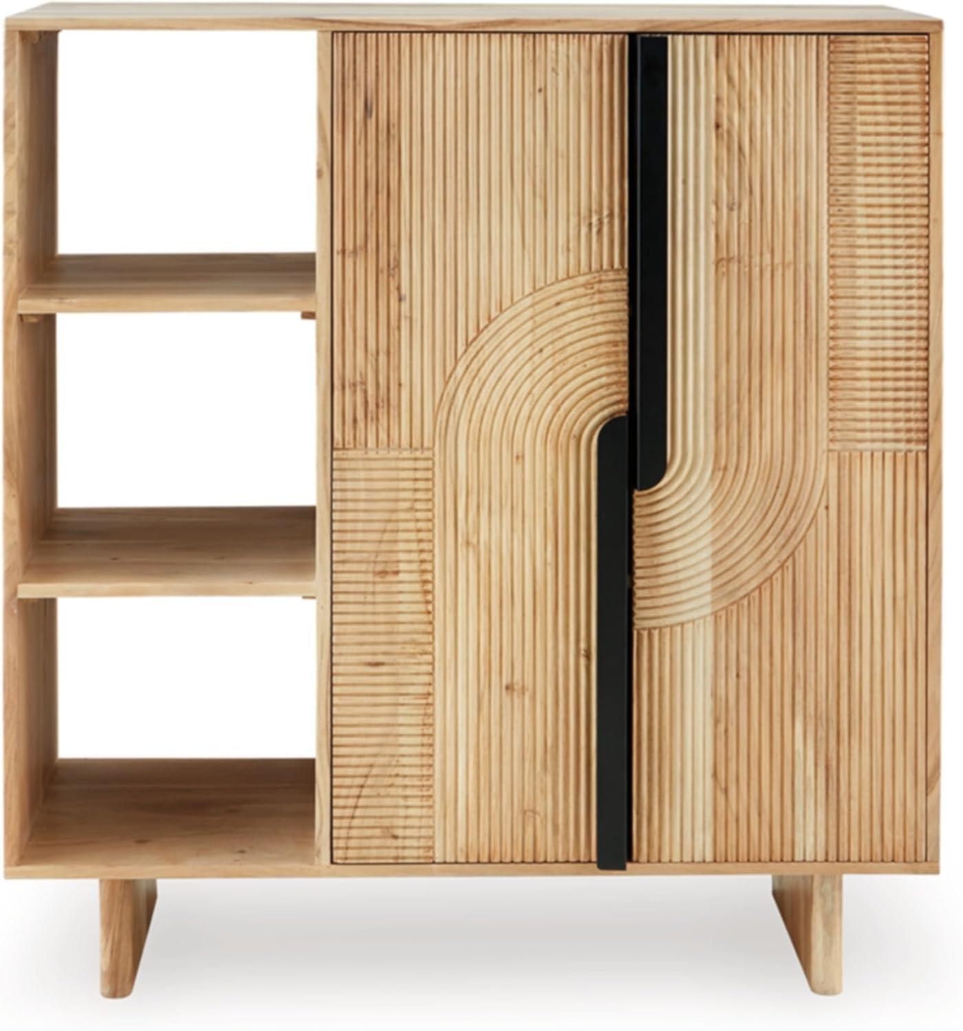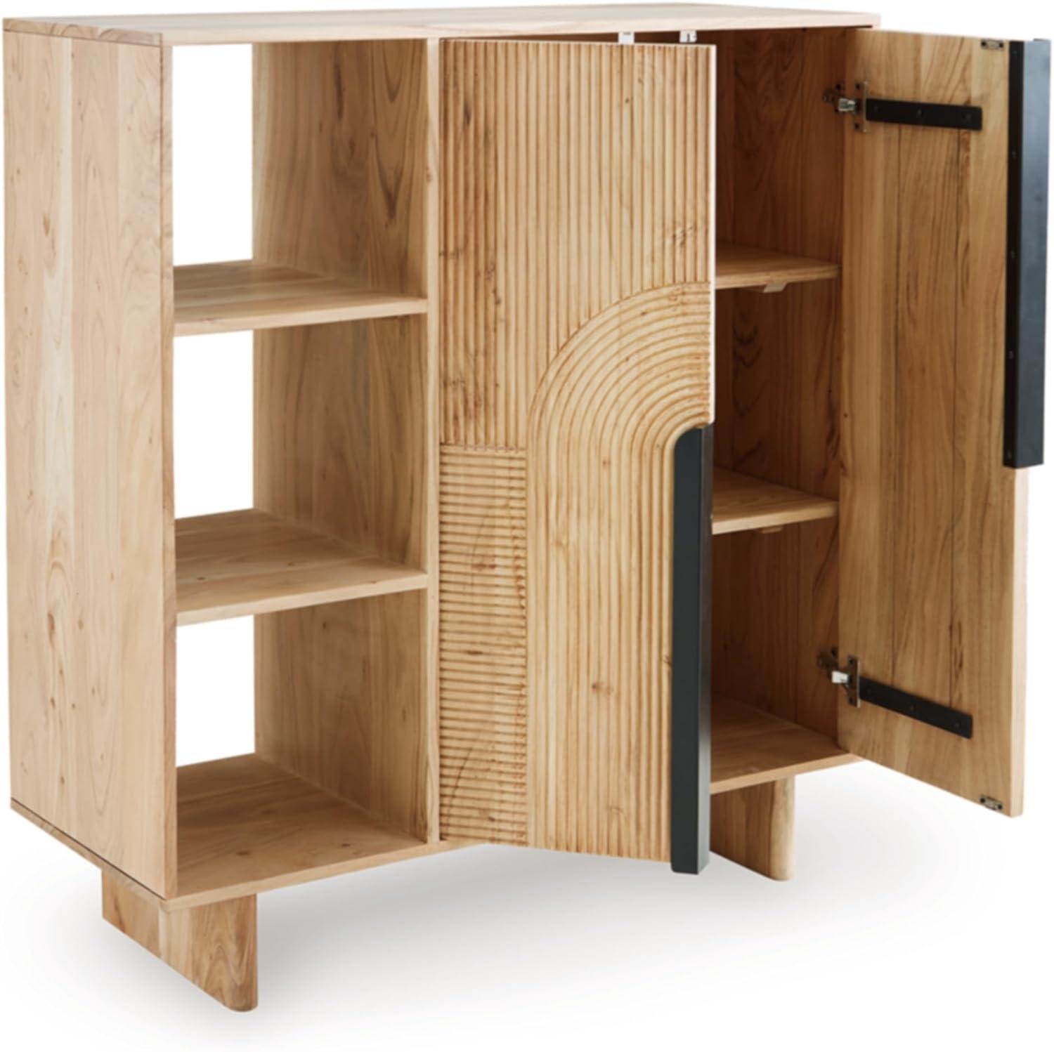 This accent cabinet offers clean, functional style for your entryway or living room. With fluted door fronts and ample shelves, it adds visual intrigue and storage options. A masterful blend of simplicity and modernity, this cabinet seamlessly fits into every environment.