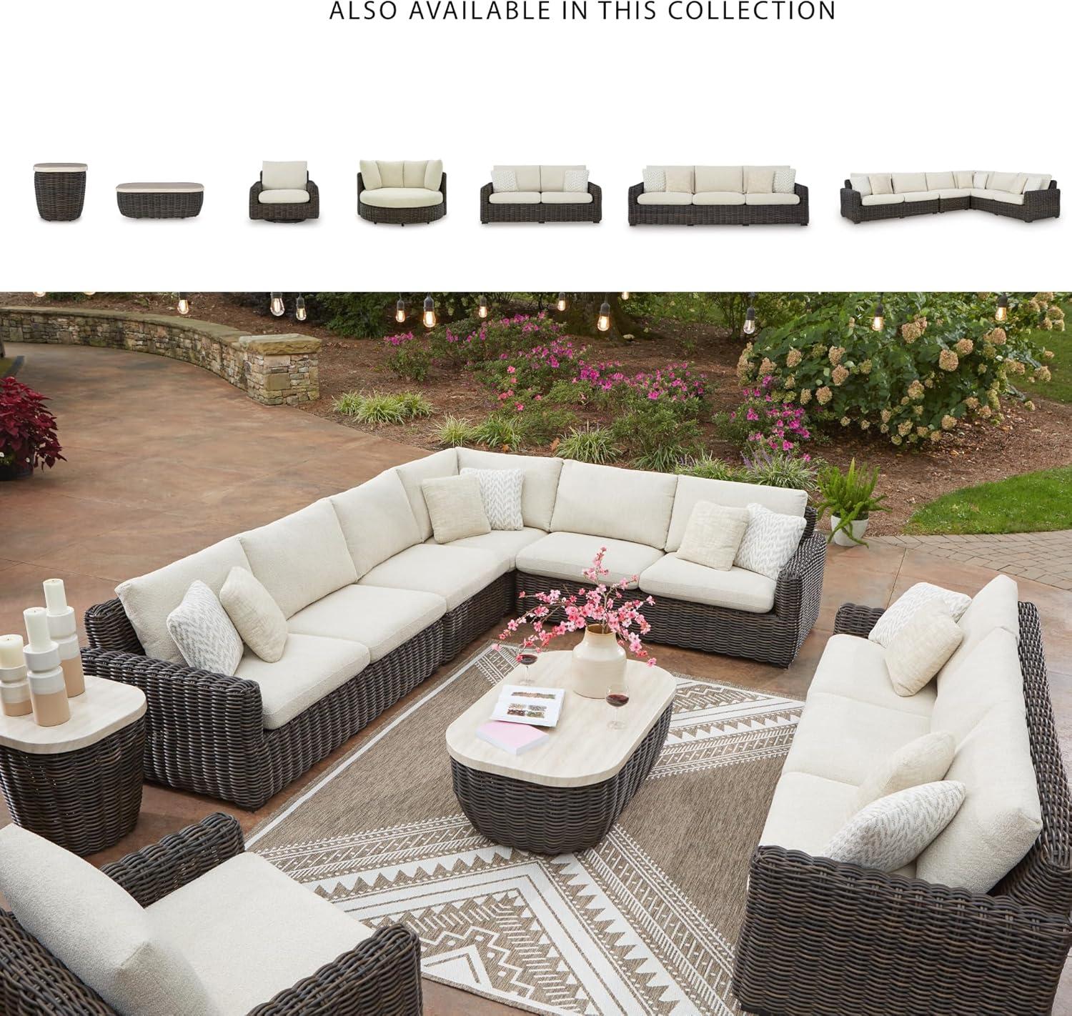 Signature Design by Ashley Kimora Casual Nuvella Weather Resistant Fabric Outdoor Swivel Lounge Chair with Zippered Removable Cushion and Casters, Beige & Dark Brown