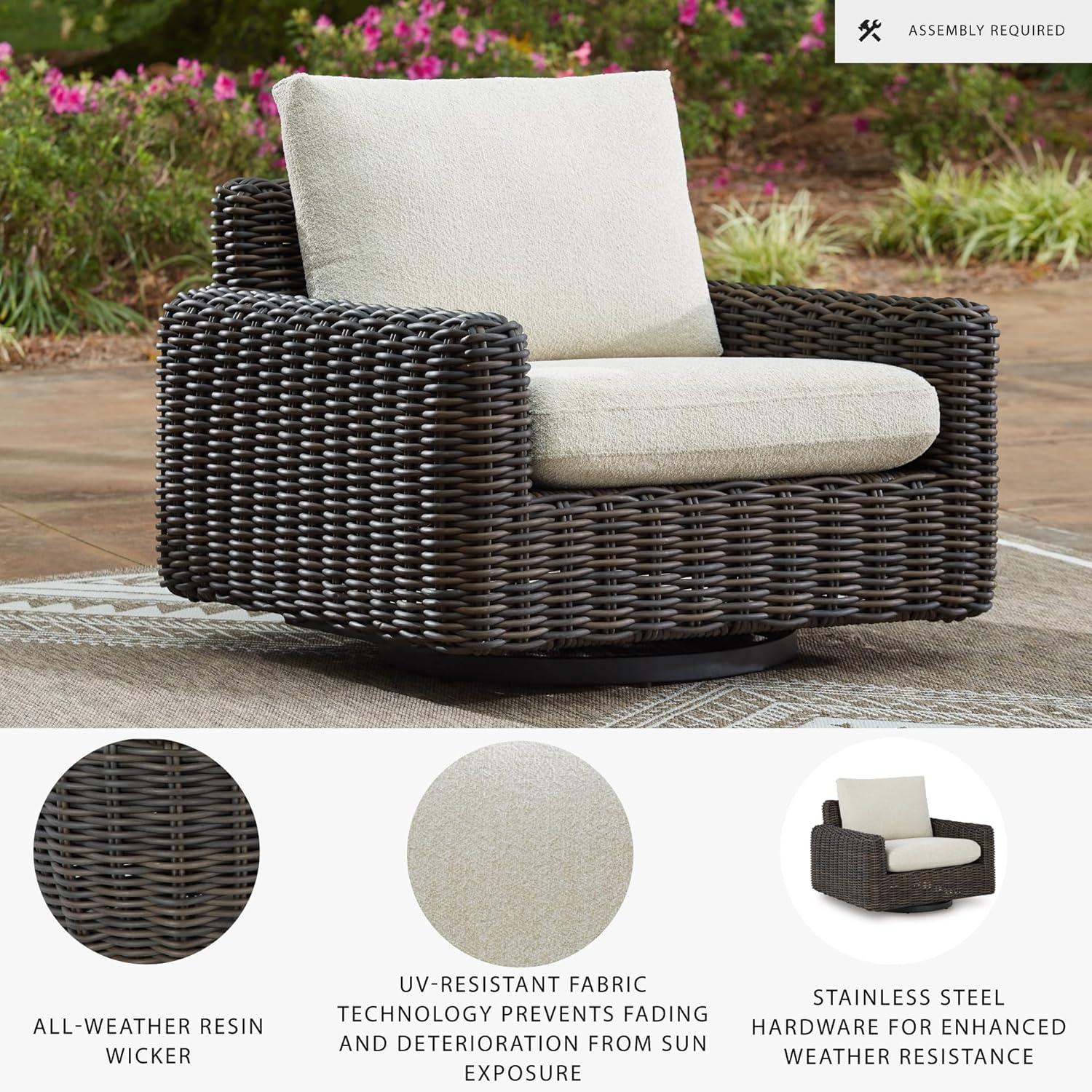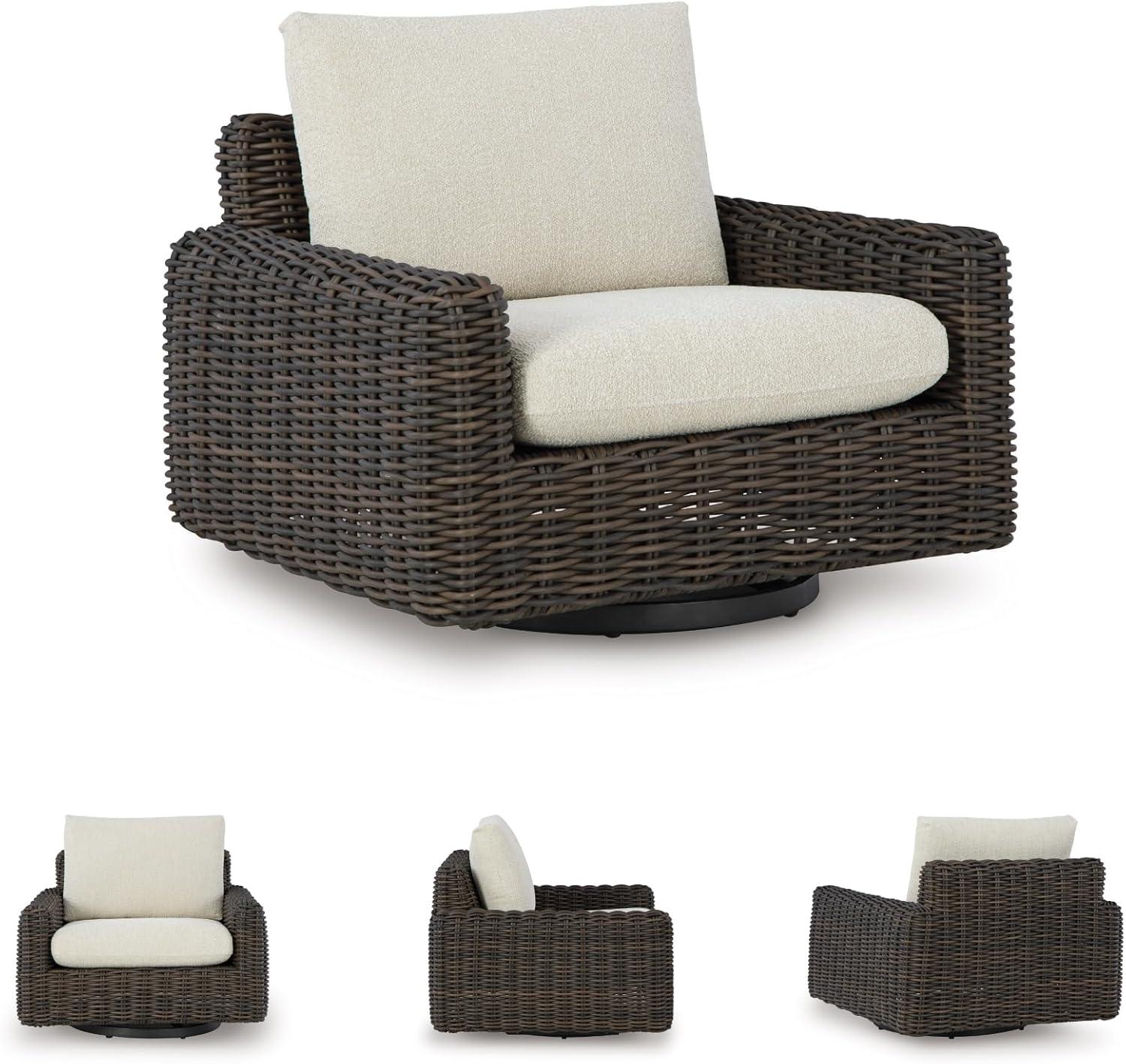 Signature Design by Ashley Kimora Casual Nuvella Weather Resistant Fabric, Resin Wicker Outdoor Swivel Glider Lounge Chair with Removable Cushions, Dark Brown & Beige