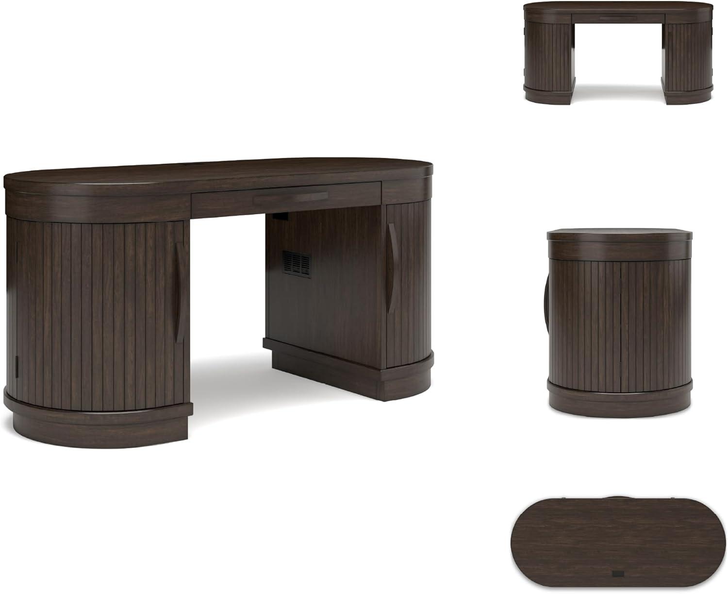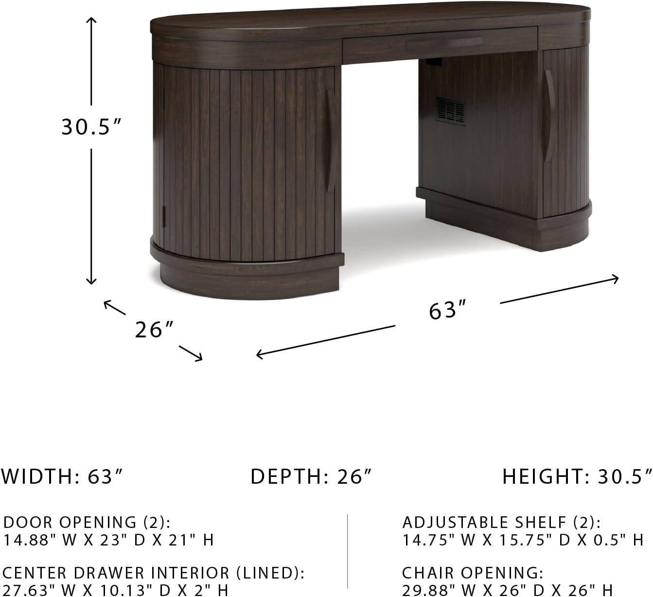 Signature Design by Ashley Korestone Contemporary 63″ Home Office Desk with 2 Adjustable Shelves, 2 Cabinets and Cord Management, Dark Brown