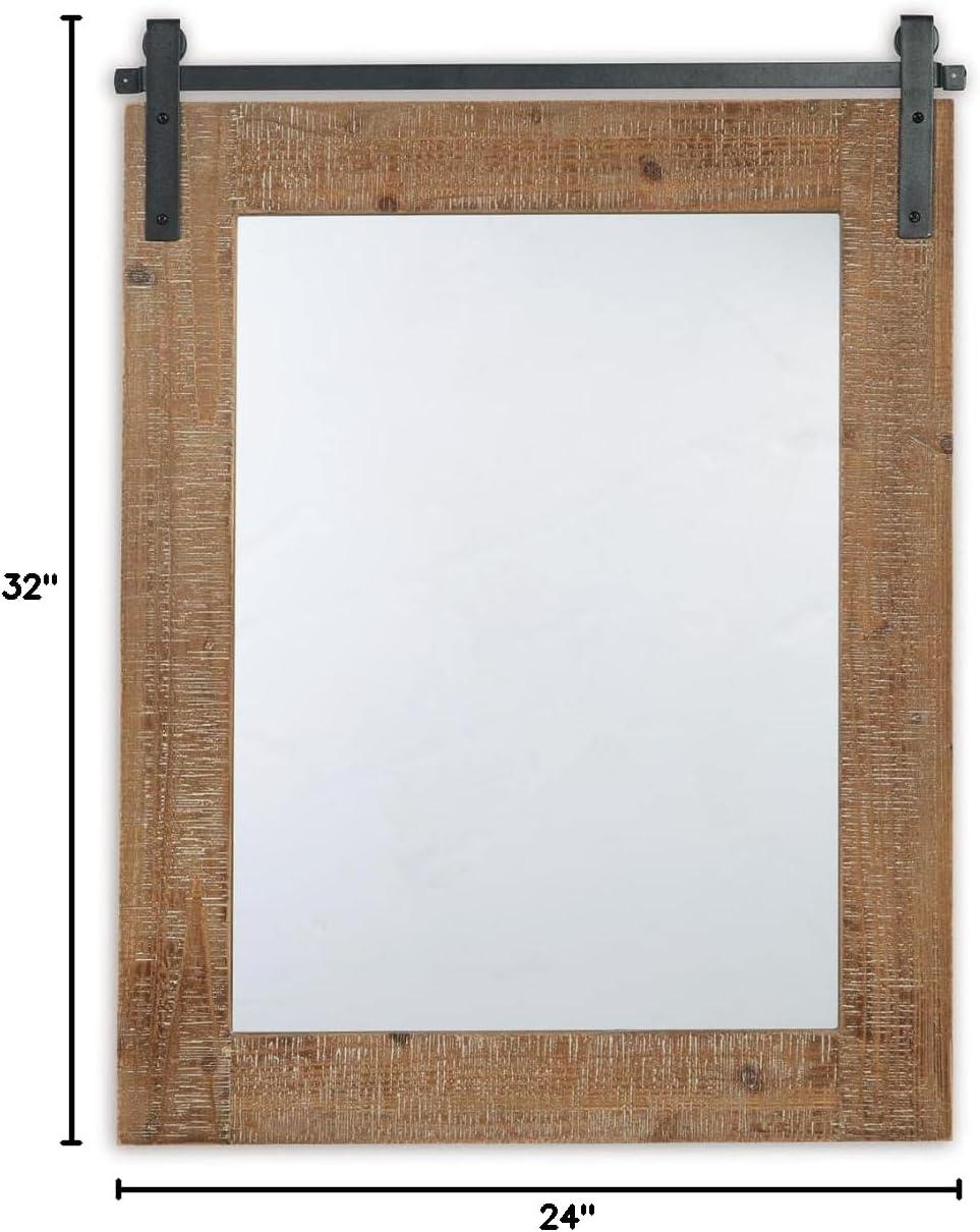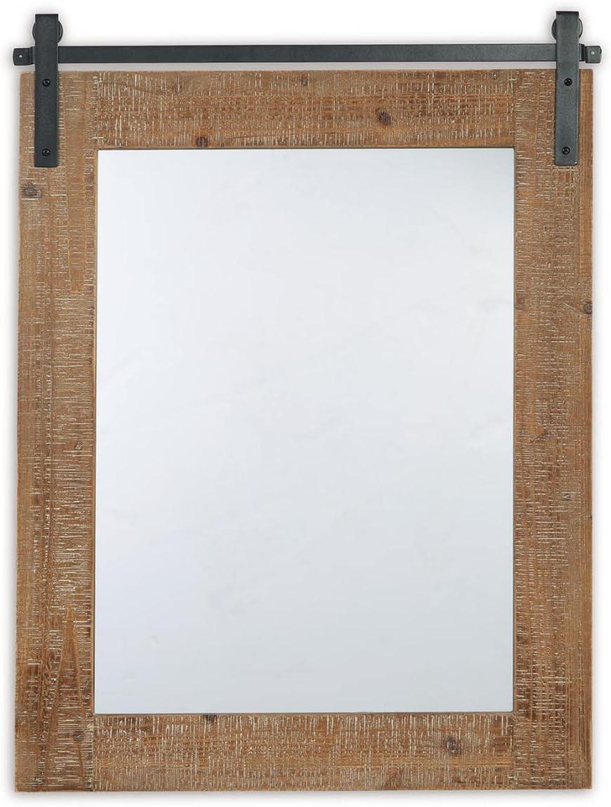 Signature Design by Ashley Lanie Rustic Accent Mirror with Metal Faux Barn Door Track, Brown & Black