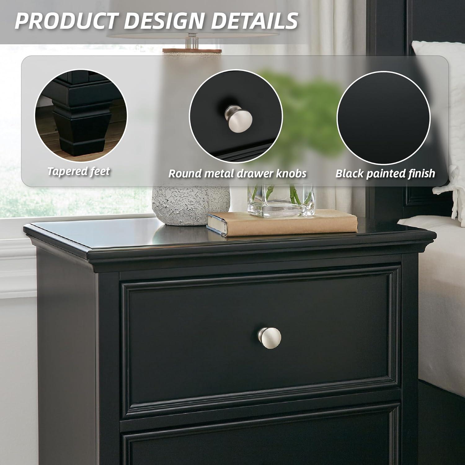 Signature Design by Ashley Lanolee Classic 2 Drawer Nightstand for Bedroom, 26.75″ Tall, Black(Black)