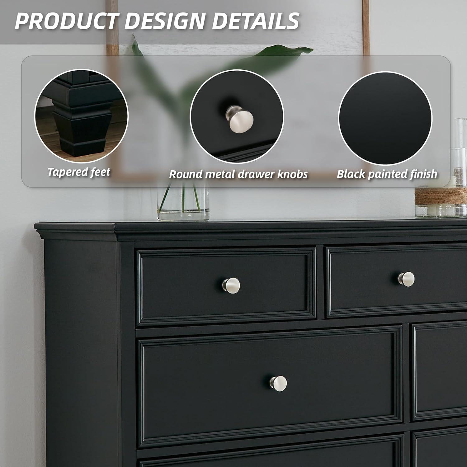 QUALITY CRAFTED: Made of hardwood solids, birch veneer and MDF substrate with a black painted finish. Round metal drawer knobs with a satin nickel-tone finish