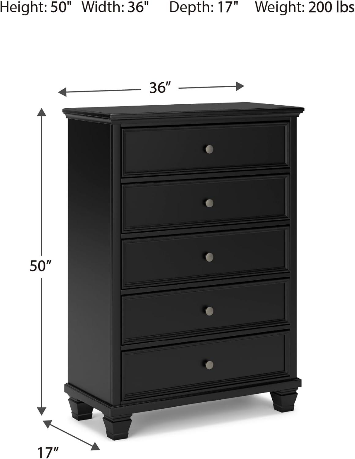 Signature Design by Ashley Lanolee Traditional 5 Drawer Chest for Bedroom, Black(Black)