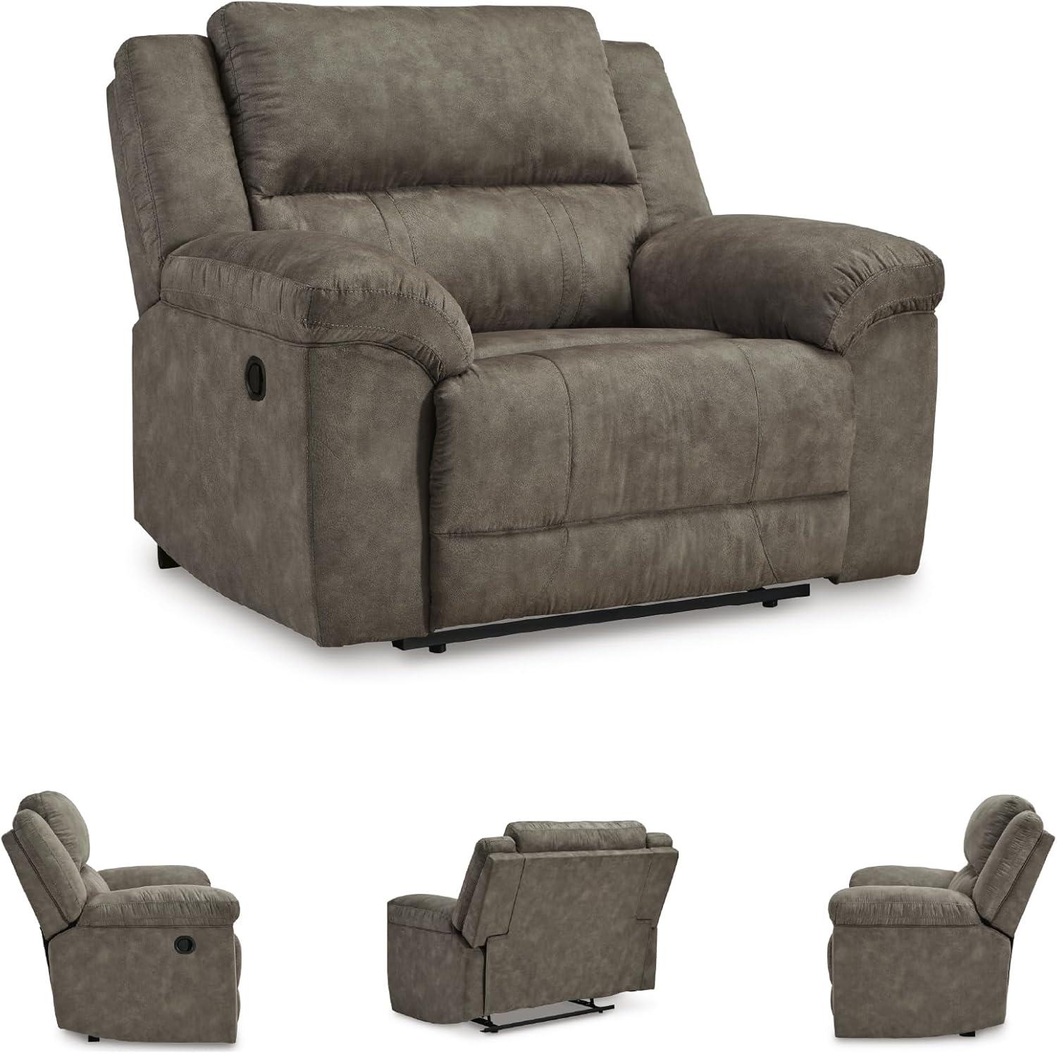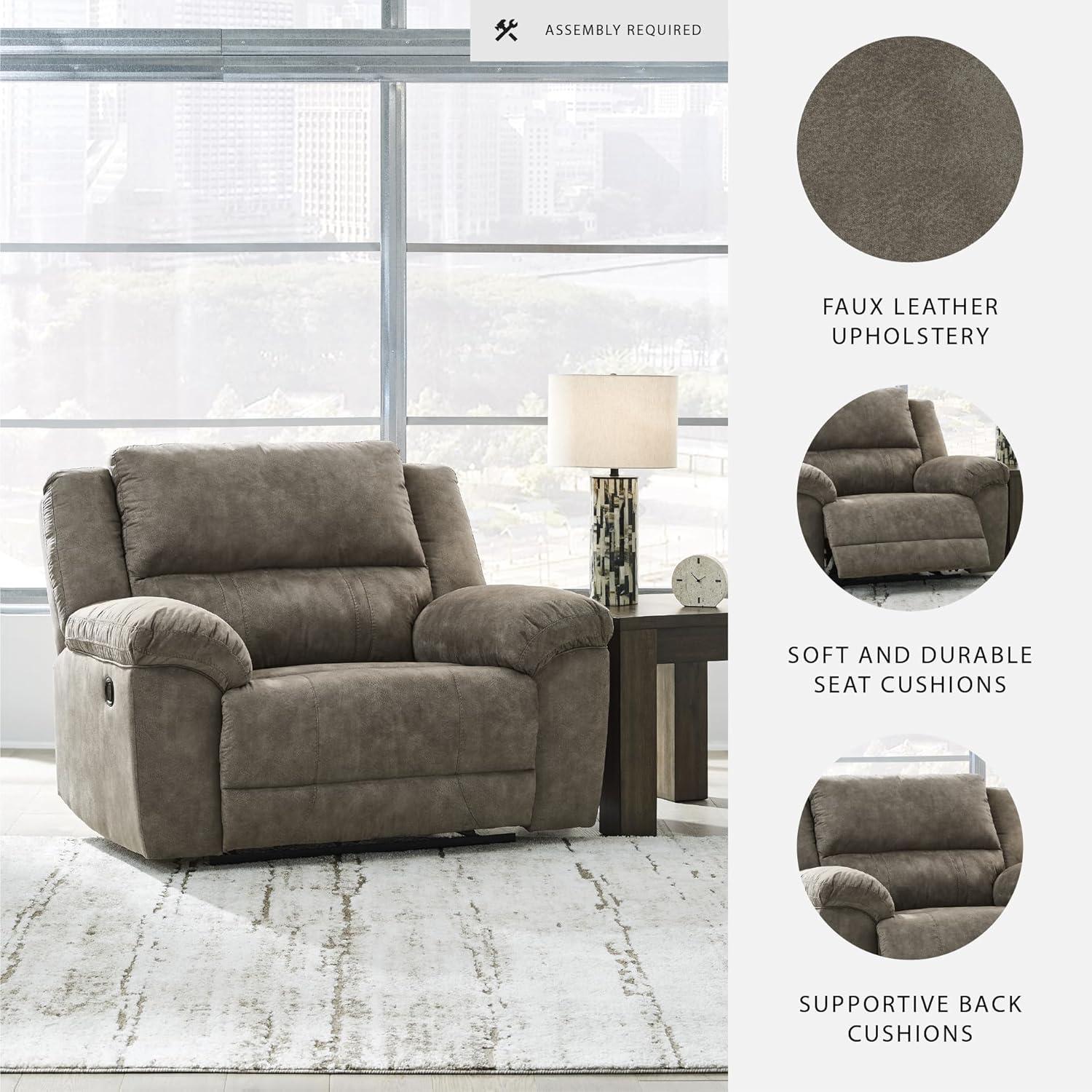 Signature Design by Ashley Laresview Urban Faux Leather Manual Zero Wall Wide Seat Recliner with Pillow-Top Arms, Gray(Oversized Recliner)
