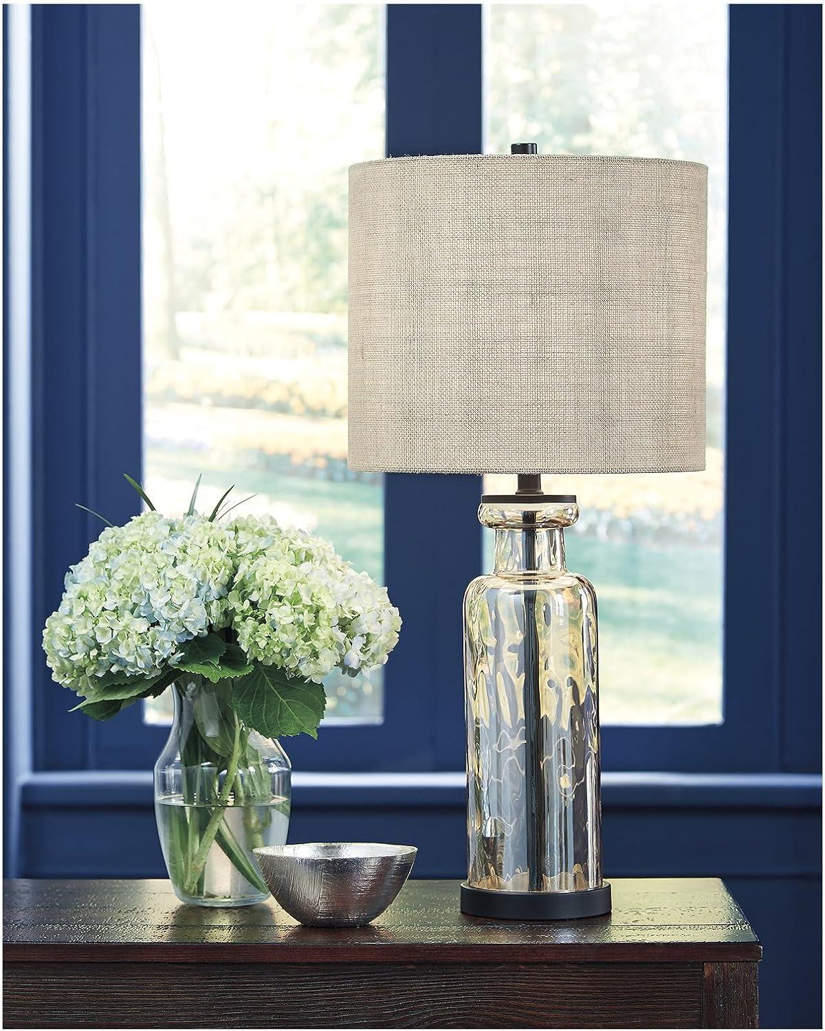 Signature Design by Ashley Laurentia 28.75″ Modern Neutral Glass Table Lamp, Champagne(Copper)