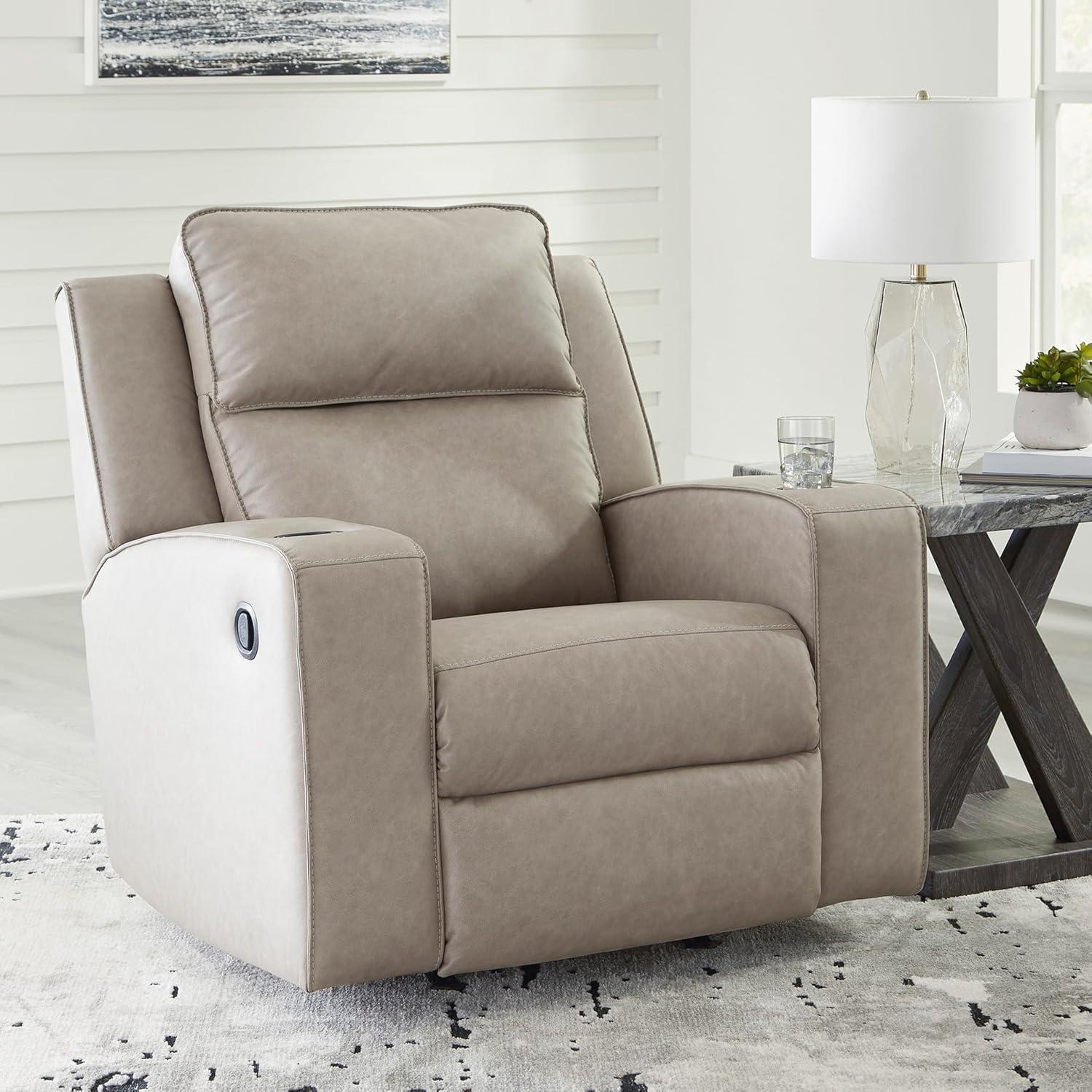 Signature Design by Ashley Lavenhorne Contemporary Faux Leather Upholstered Manual Rocker Recliner with 2 Cup Holders, Dark Brown(Beige)