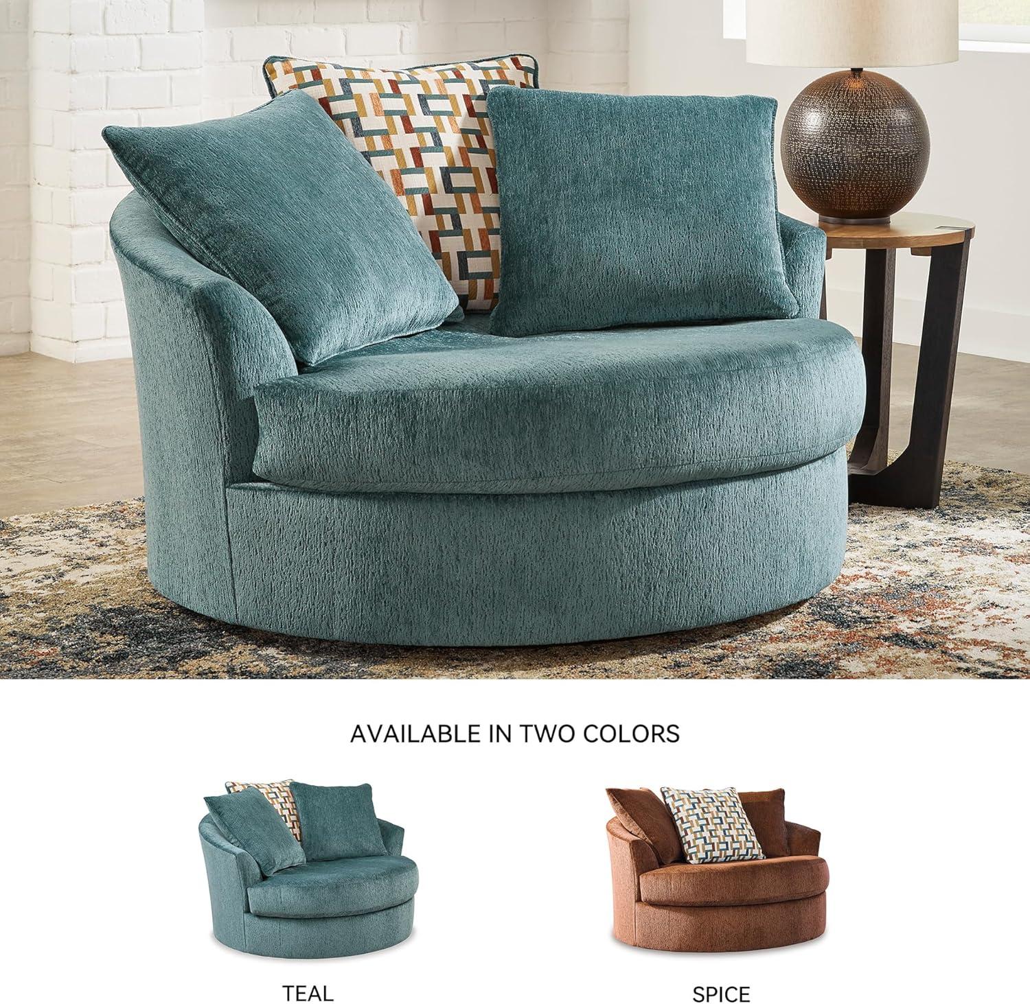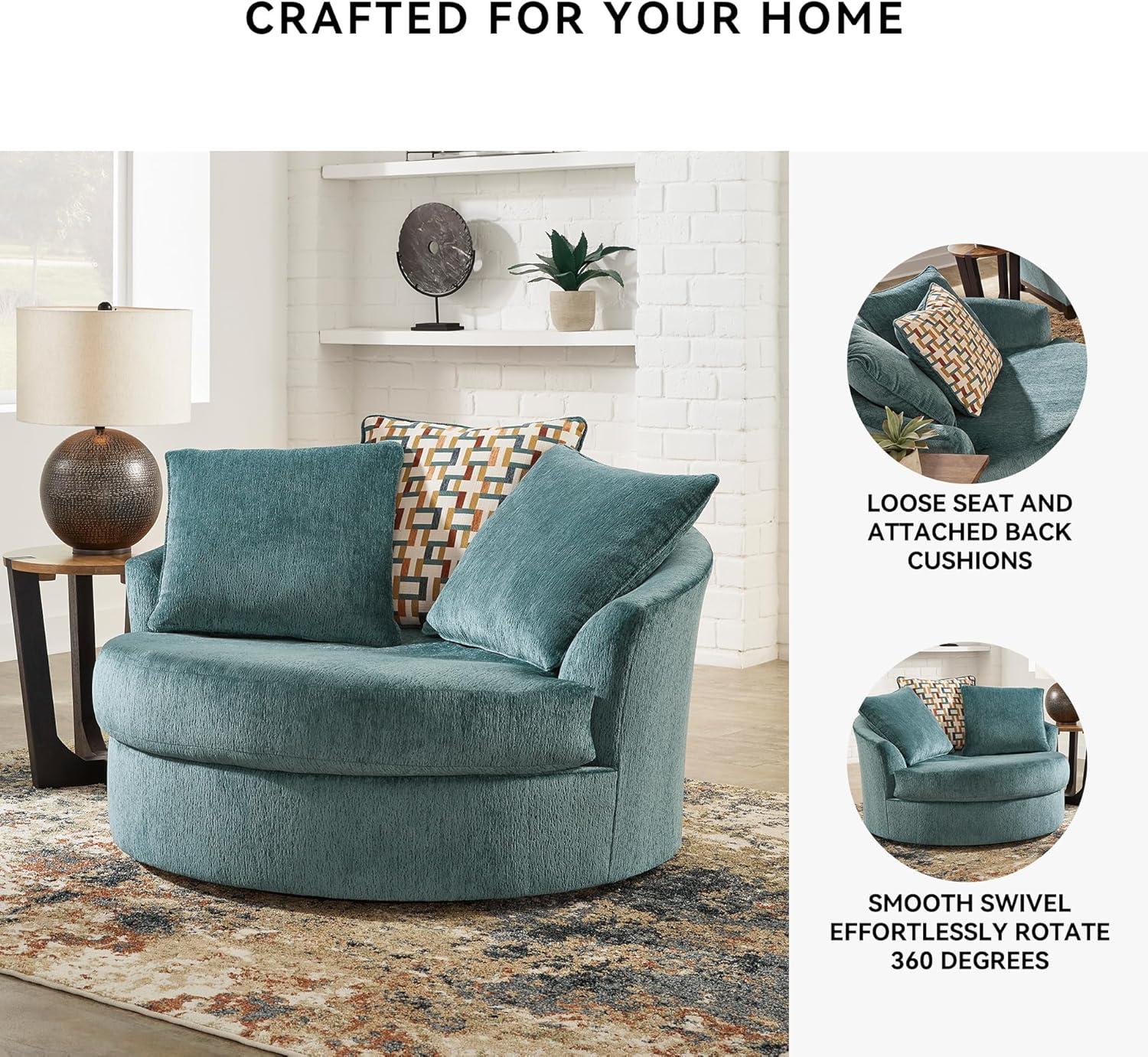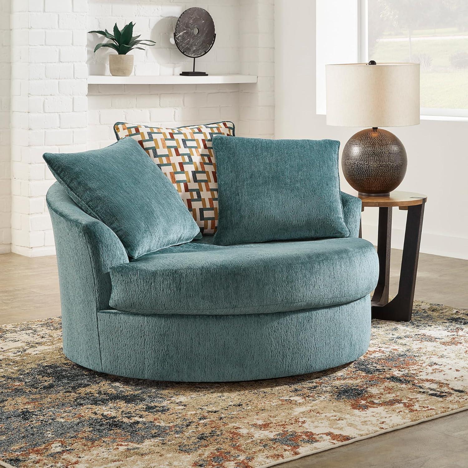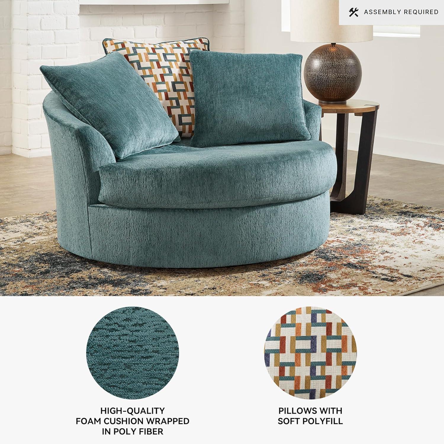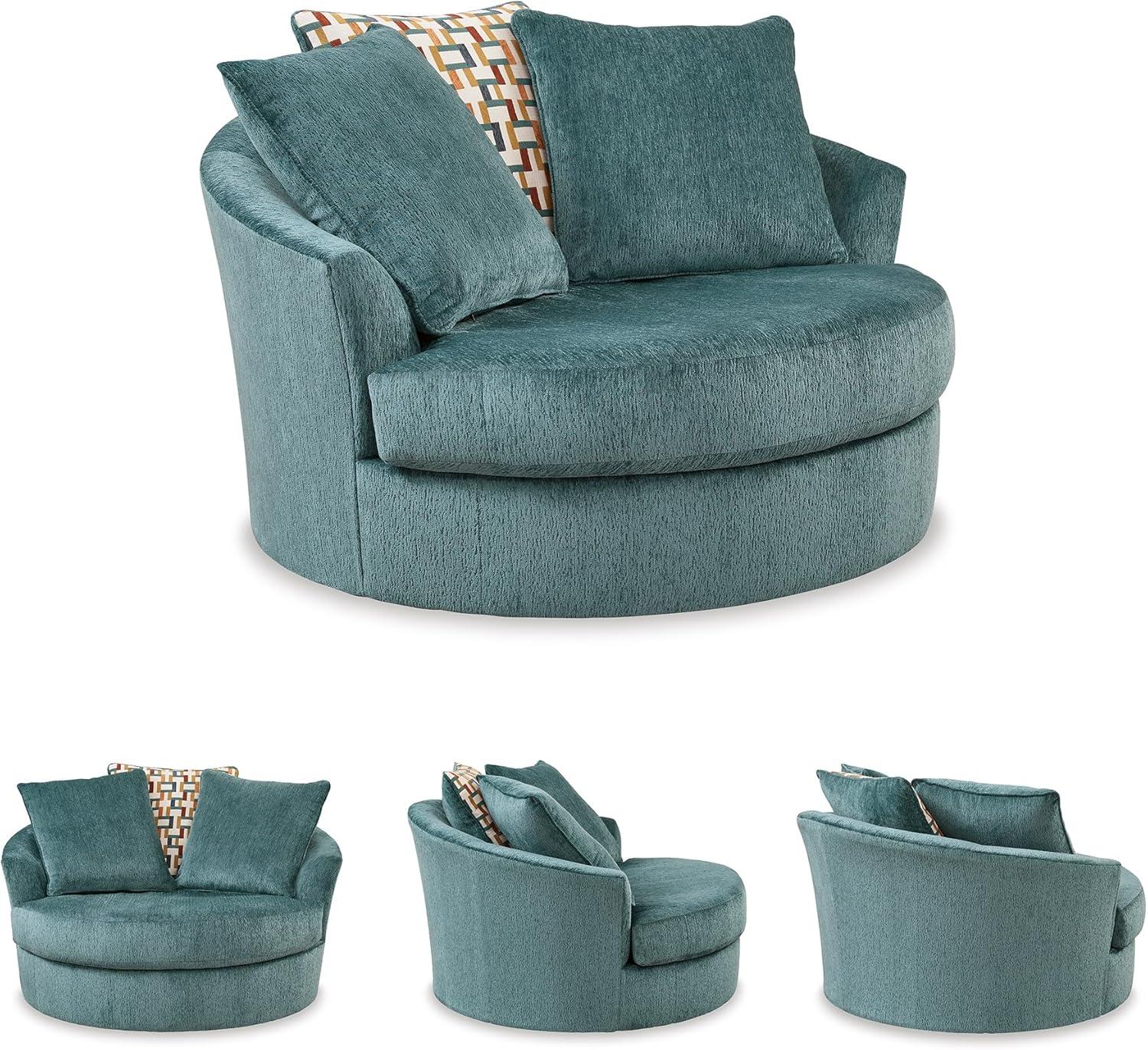 Signature Design by Ashley Laylabrook Scandinavian Upholstered Oversized Swivel Accent Chair with 3 Back Pillows, Green(Green)