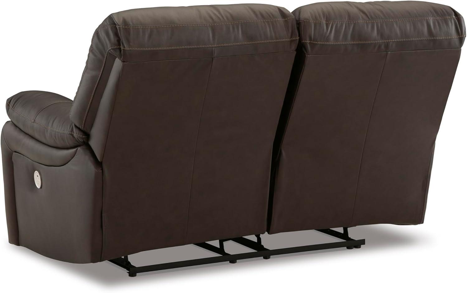 Signature Design by Ashley Leesworth Modern Leather Match Power Reclining Loveseat with USB Ports, Dark Brown(Dark Brown)
