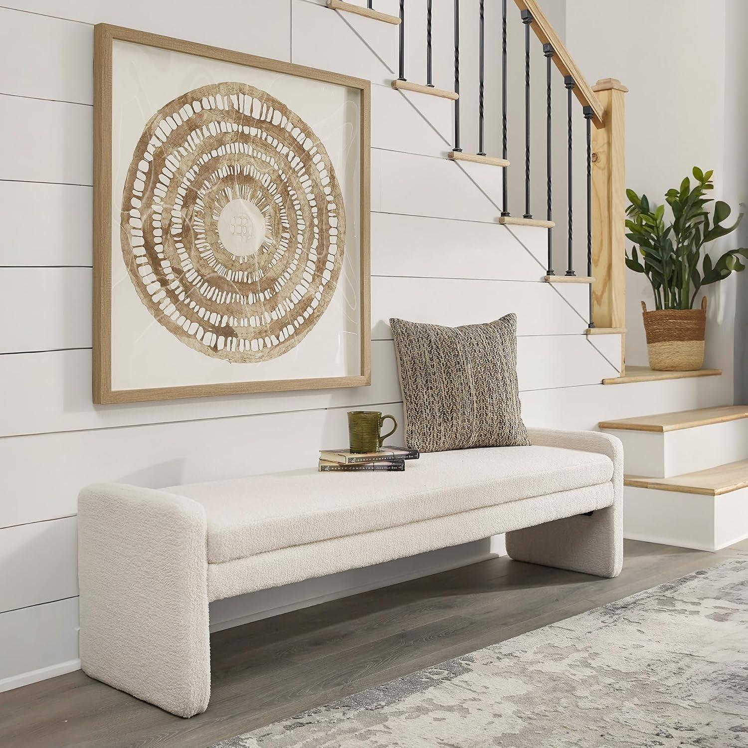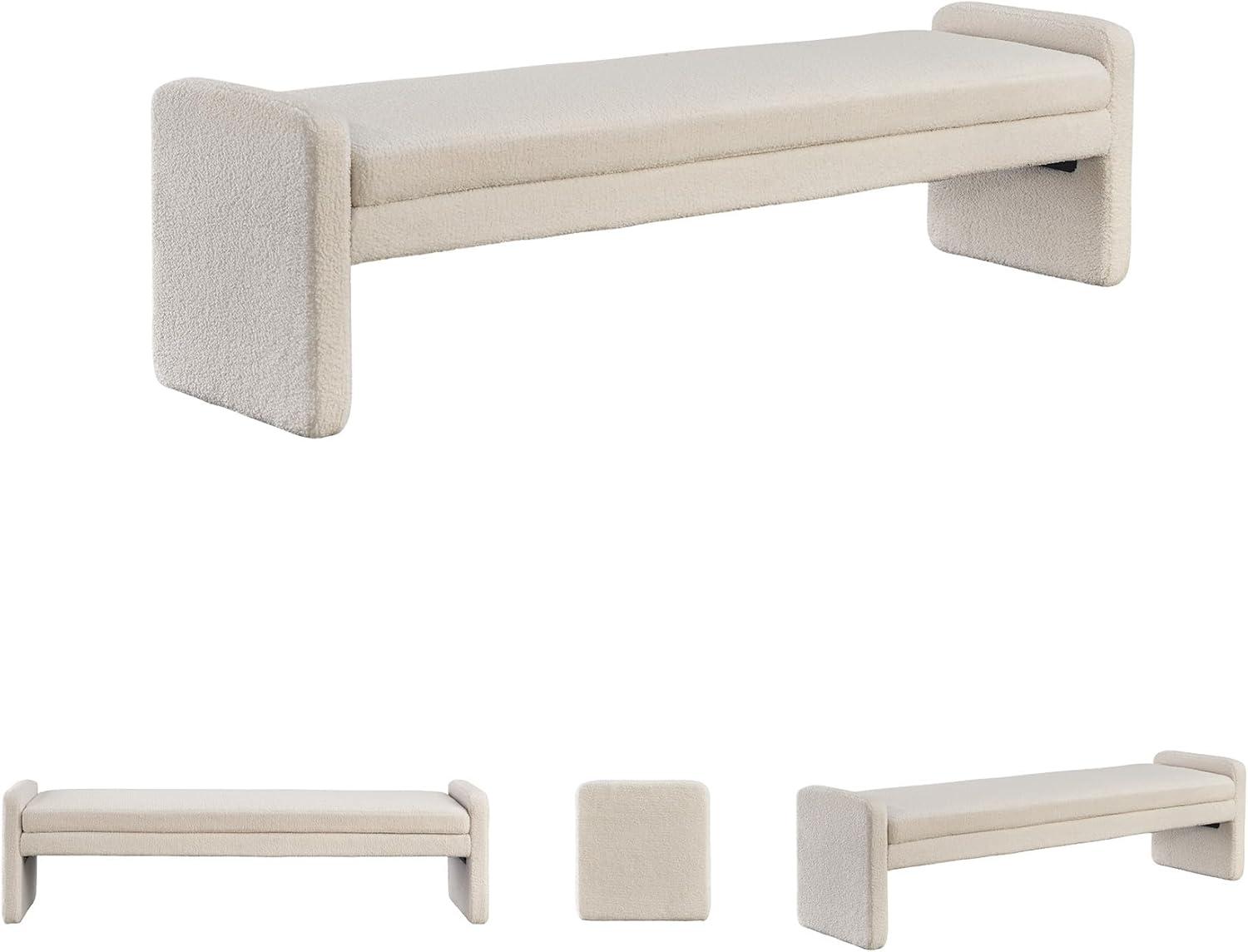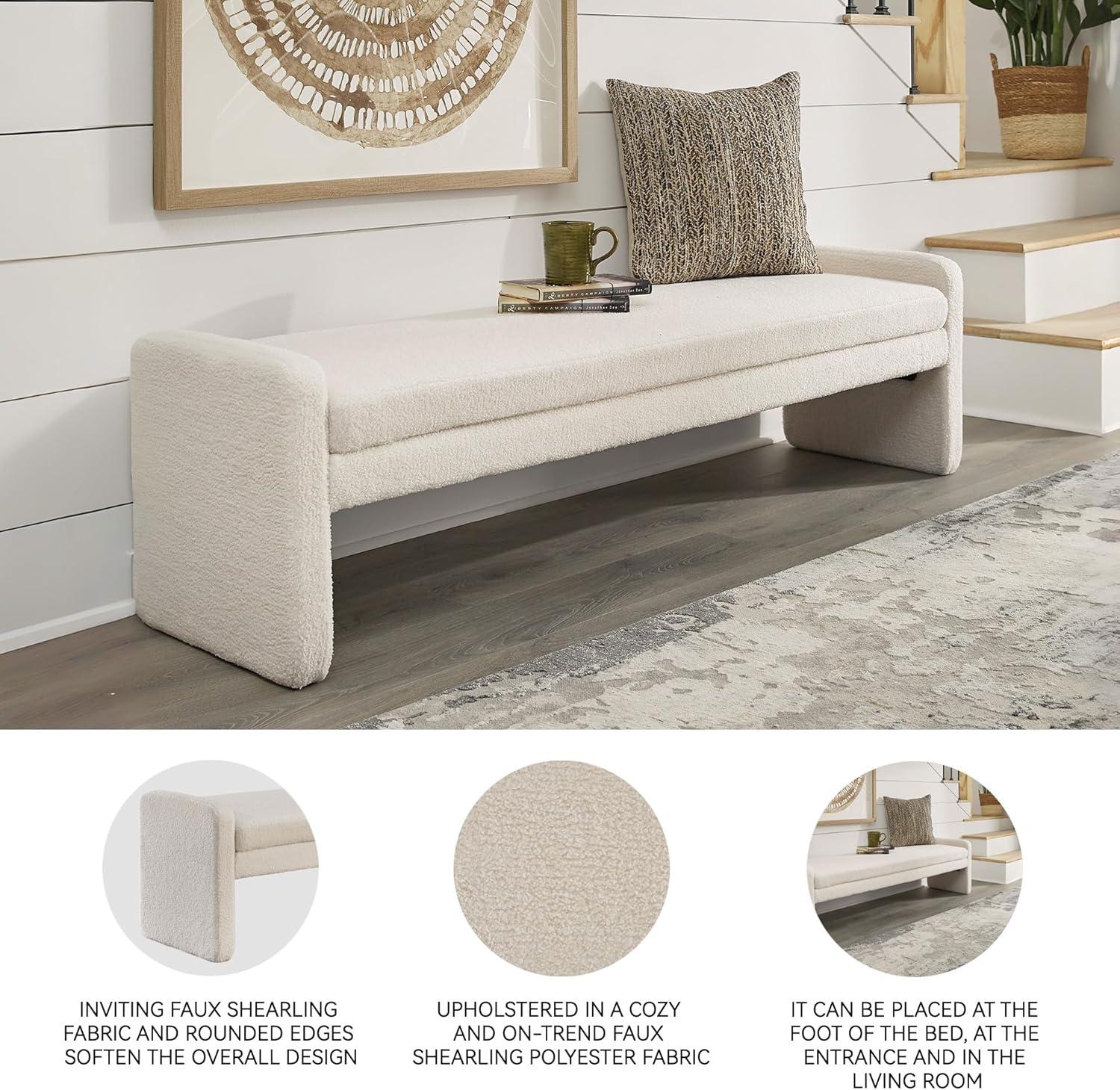 This accent bench helps you craft a cozy space without sacrificing the high-style vibe you love. Clean lines and a simple silhouette give it a contemporary, tailored feel. Inviting faux shearling fabric and rounded edges soften the look. Whether it's at the end of your bed or welcoming guests in the entryway, this piece is sure to make a statement.