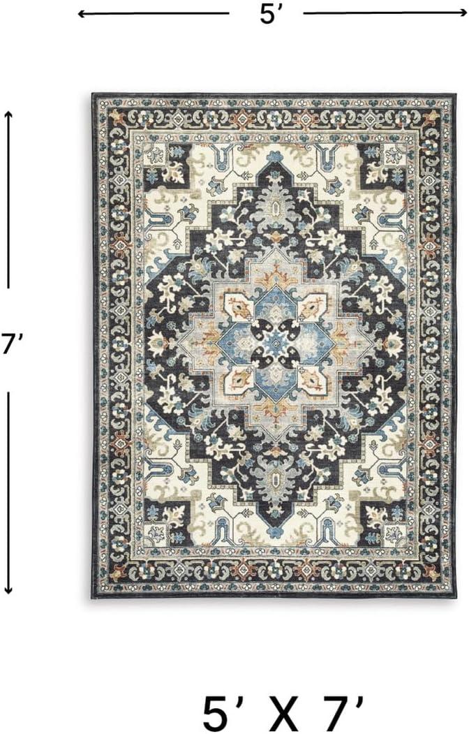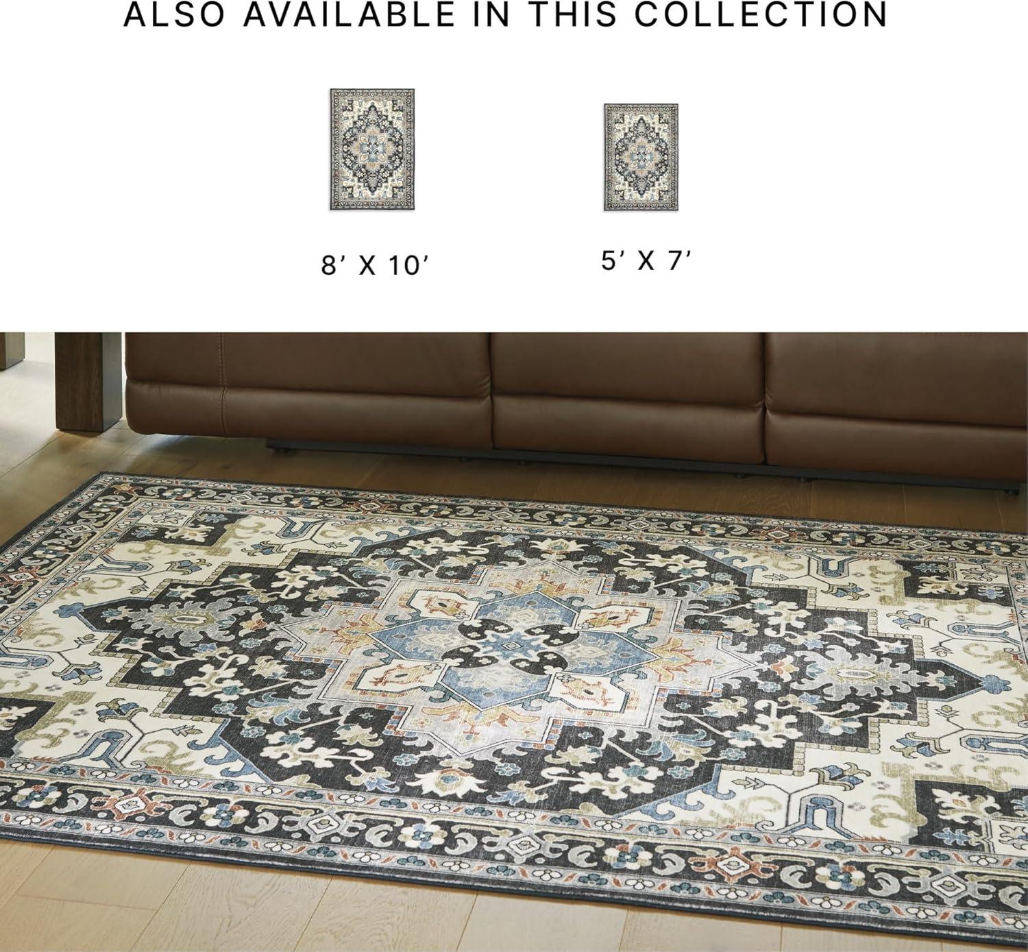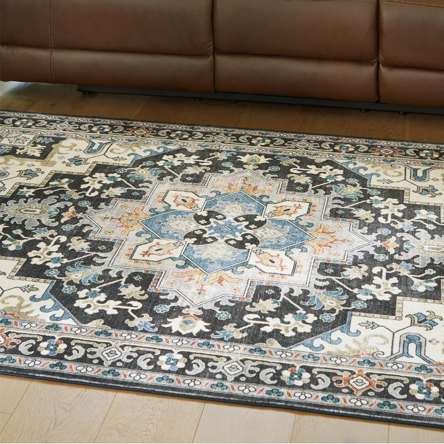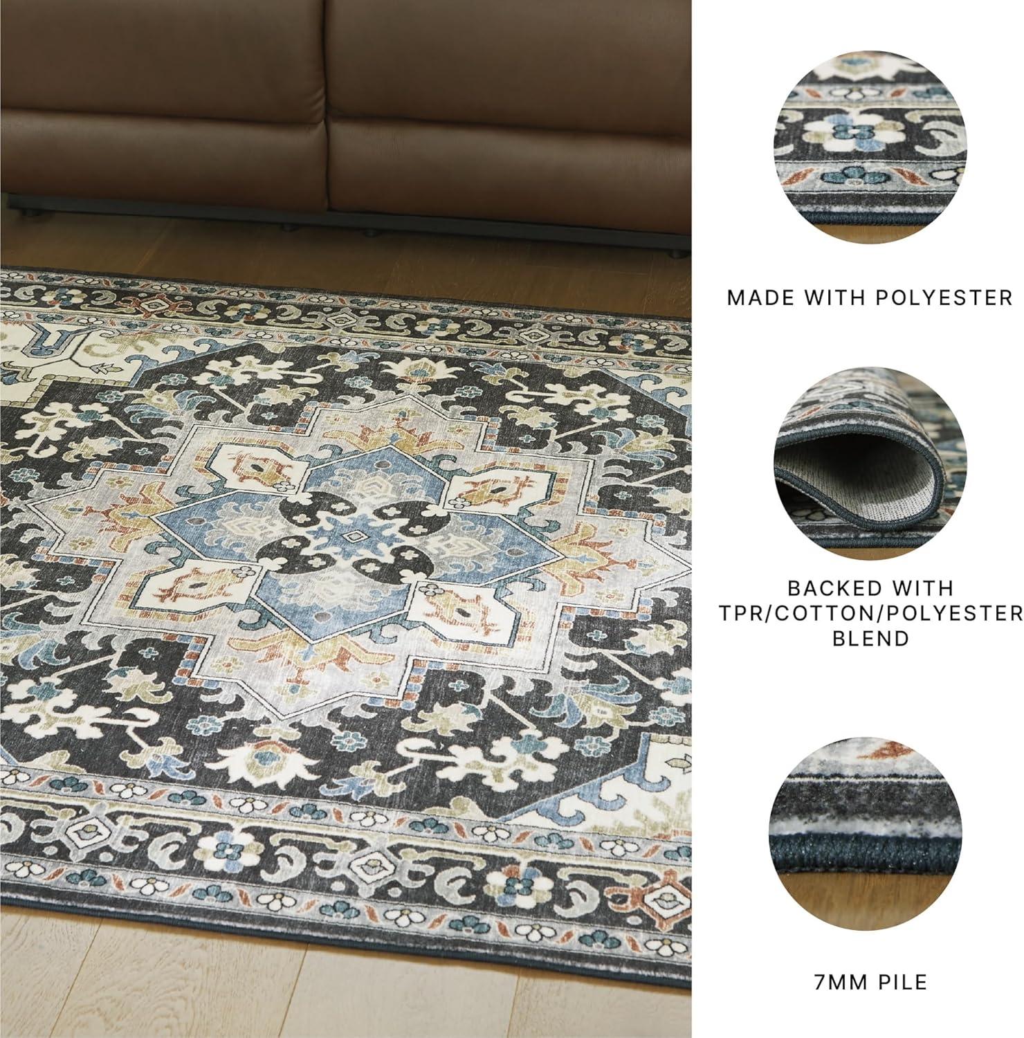 Signature Design by Ashley Leningston Classic Indoor Non Slip Medallion 5 x 7 Washable Rug, Blue & Black(5′ x 7′ (Rectangular))