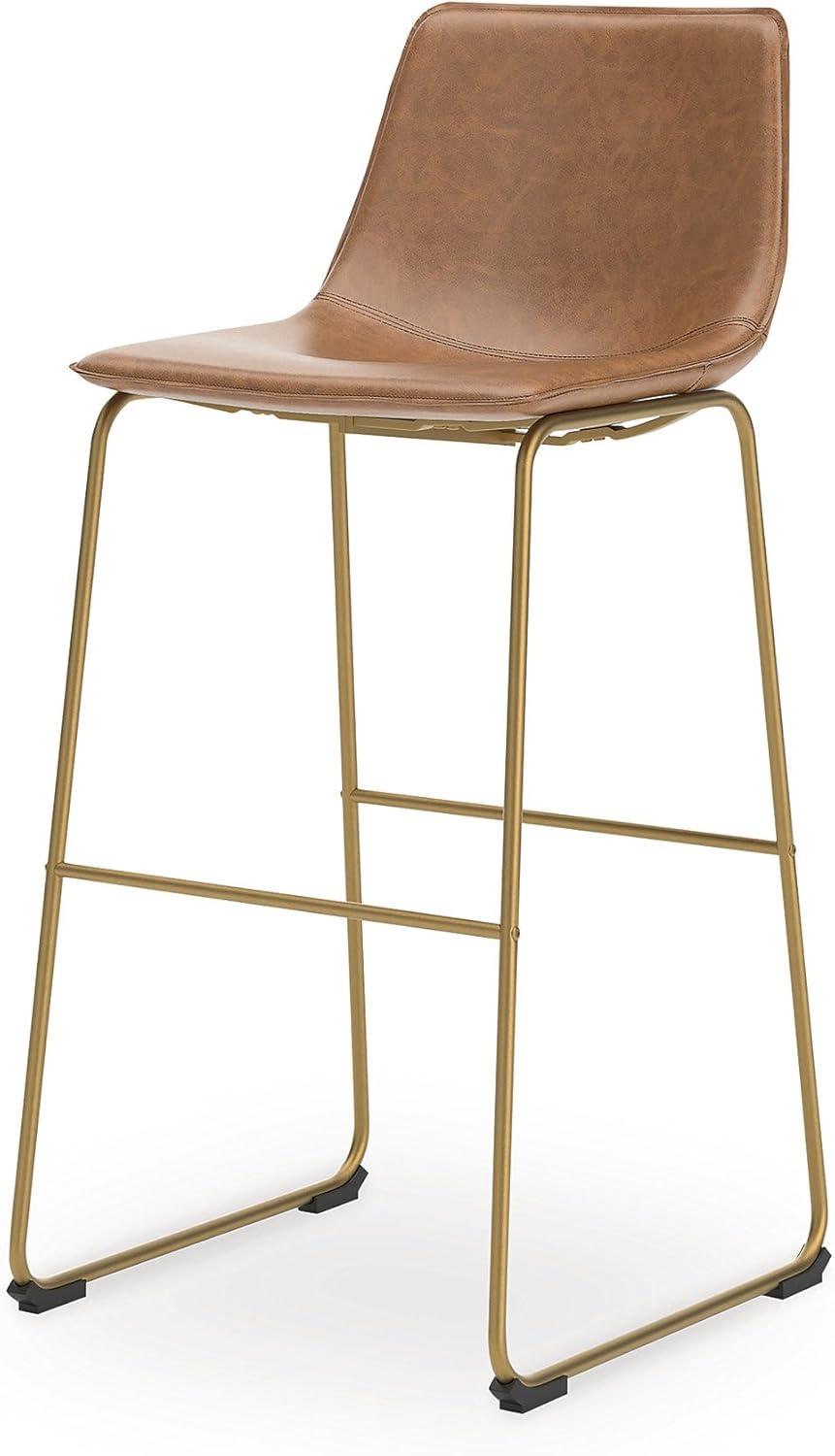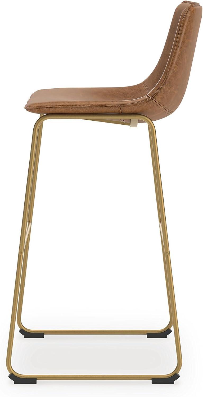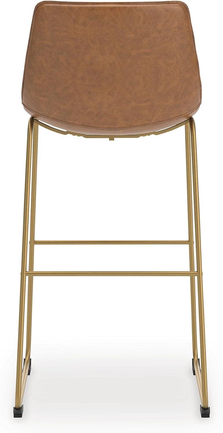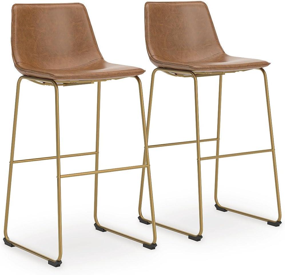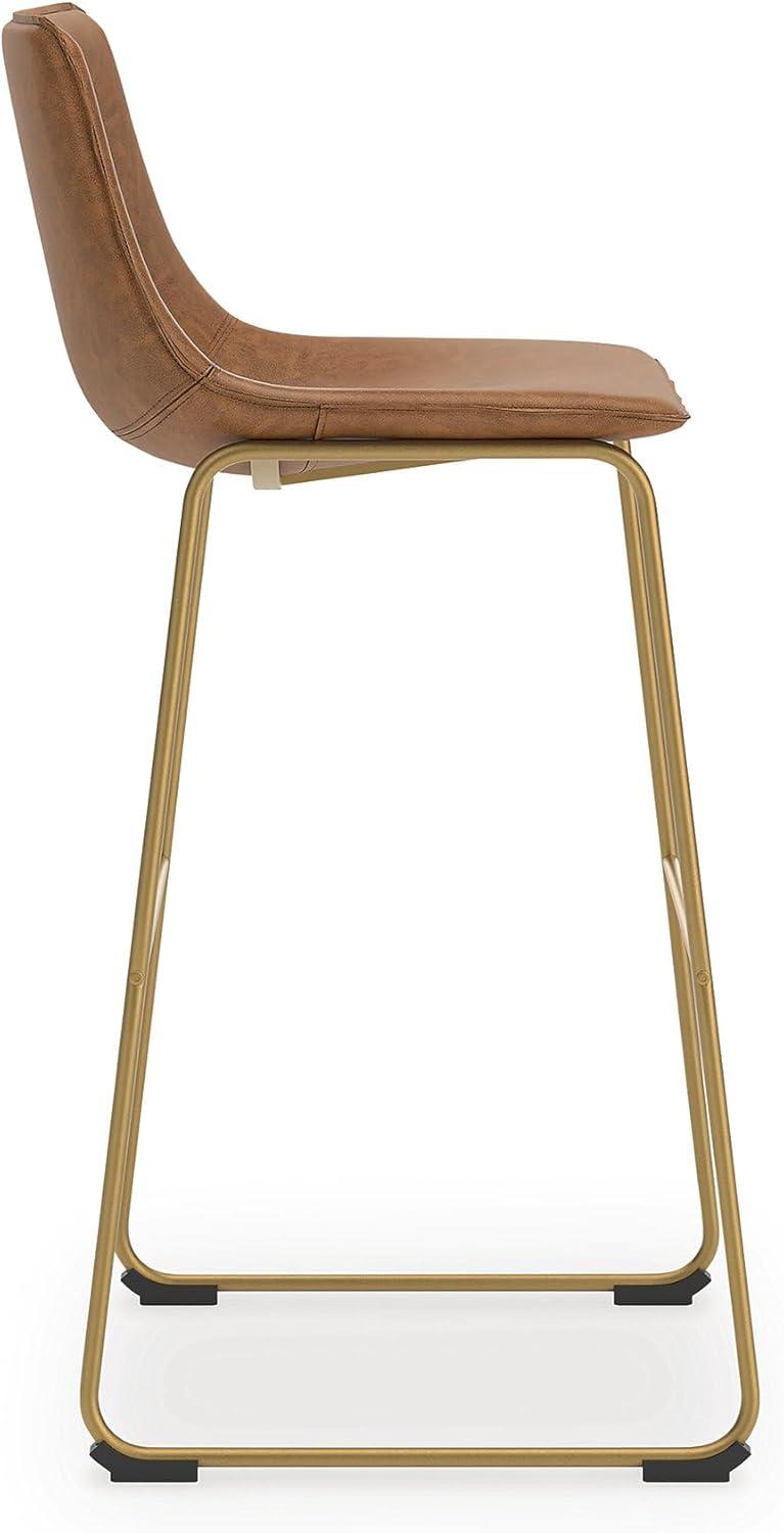 Signature Design by Ashley Lexadine Contemporary Bar Height Bar Stool with Faux Leather Upholstery, Set of 2, Brown & Gold