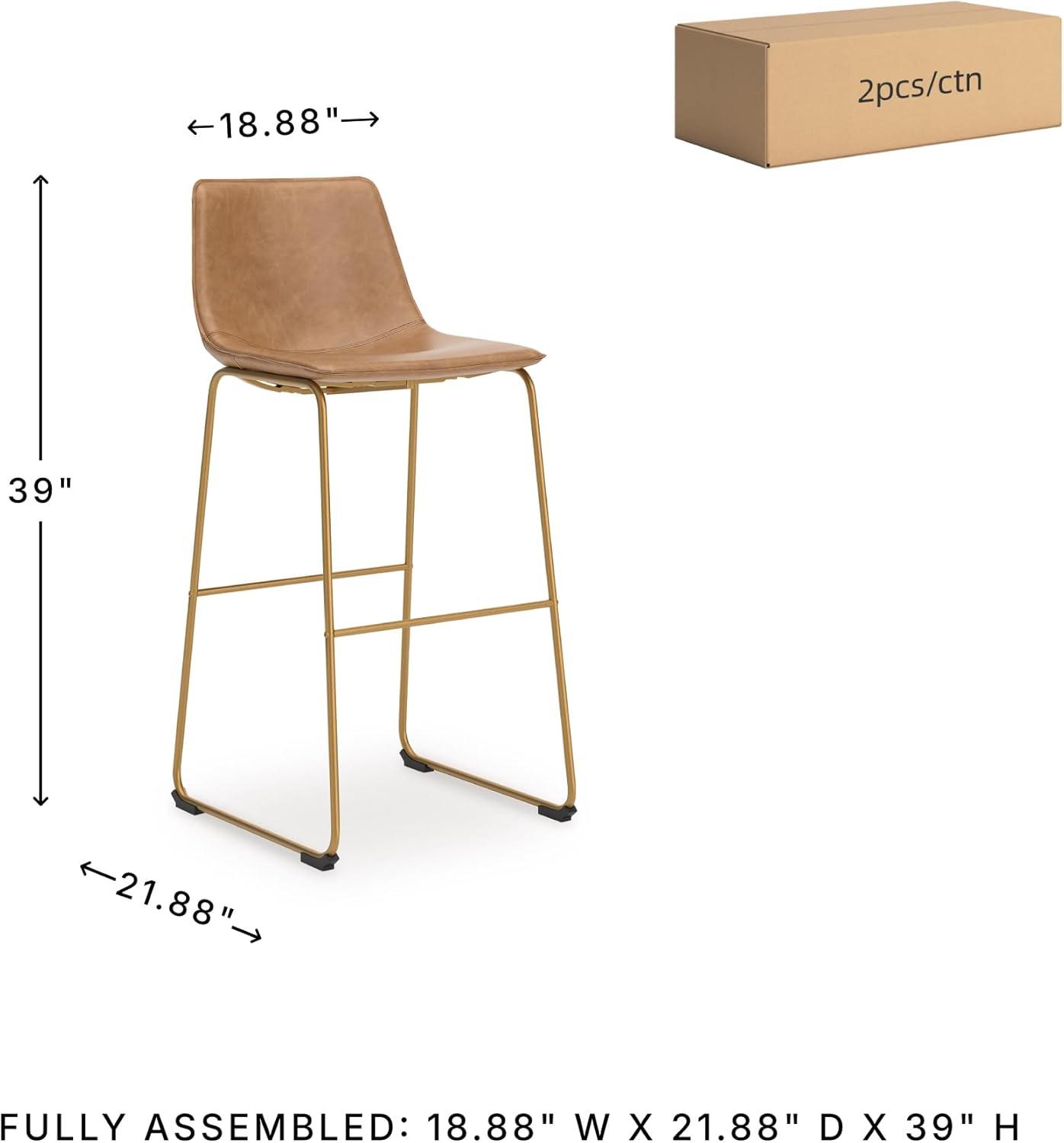 Signature Design by Ashley Lexadine Contemporary Bar Height Bar Stool with Faux Leather Upholstery, Set of 2, Light Brown & Gold