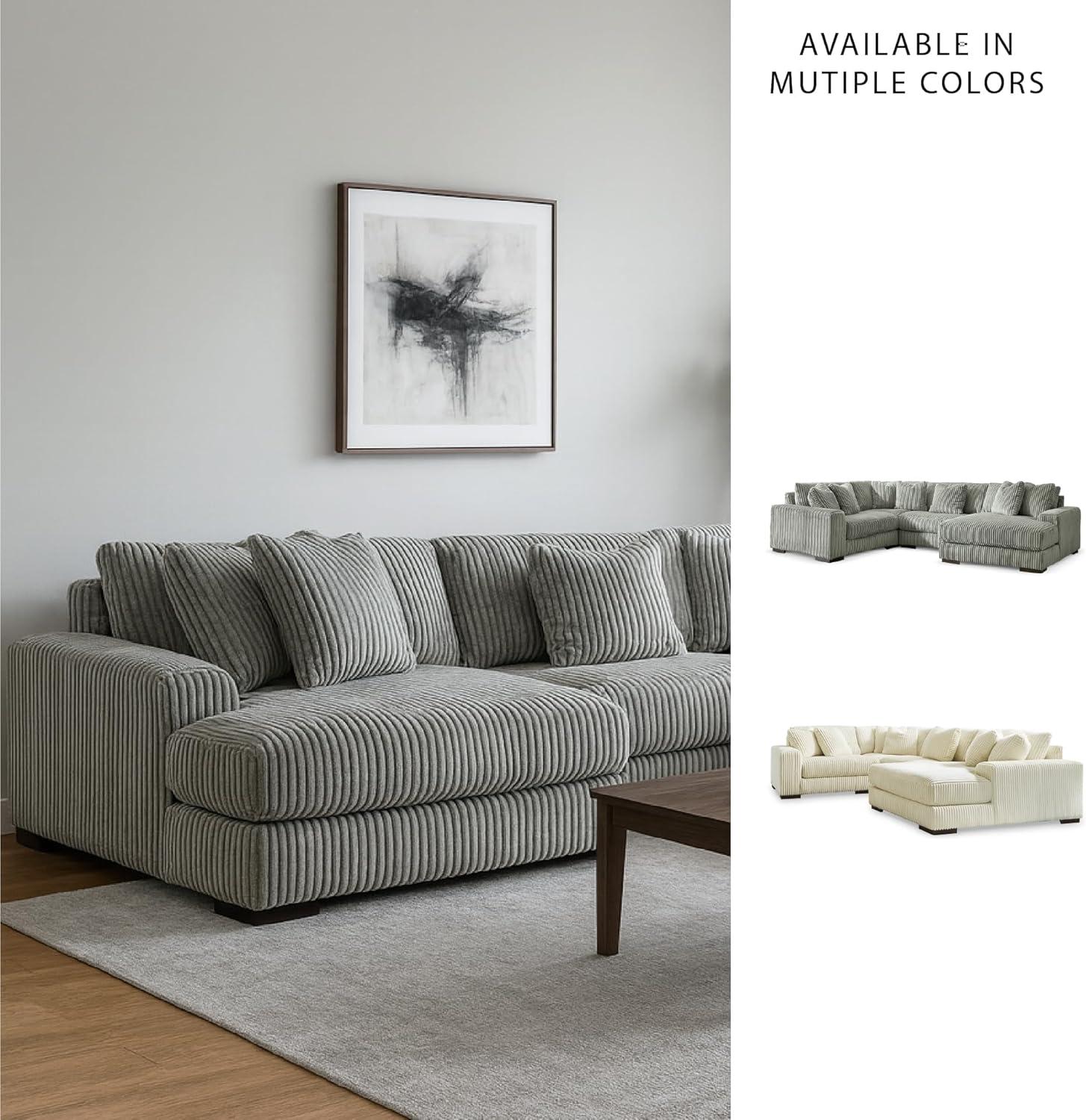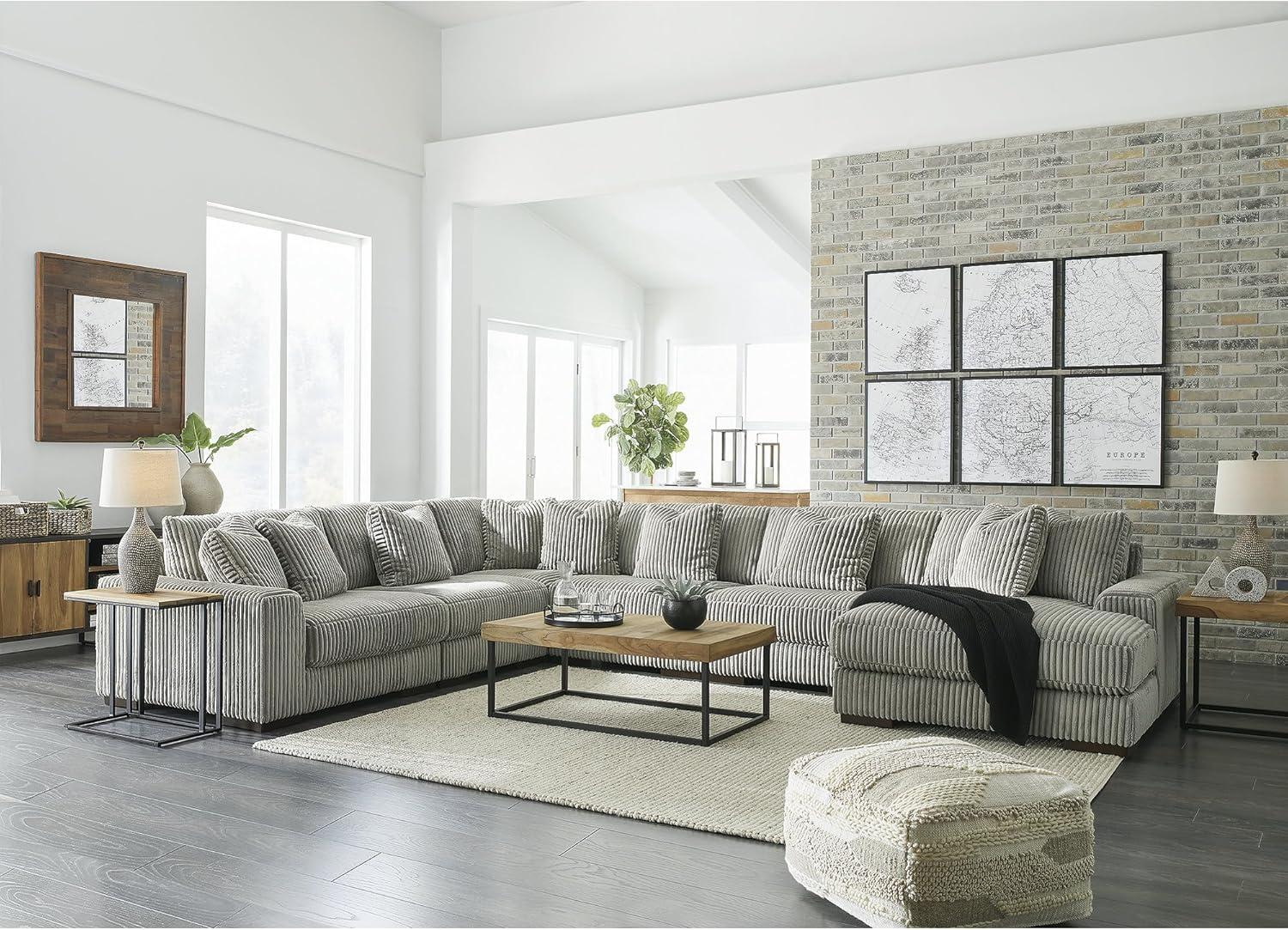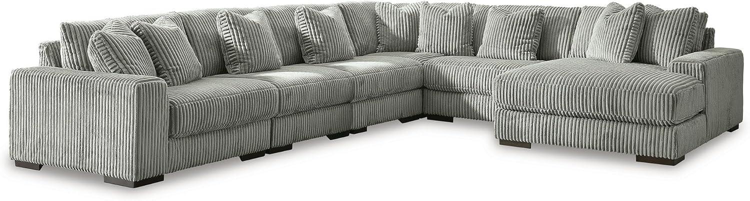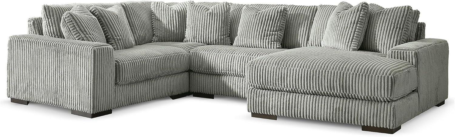 Signature Design by Ashley Lindyn Casual Anti Sag 3-Piece Sectional with Double Chaise, Reversible Cushions and 5 Accent Pillows, Gray(Grey)