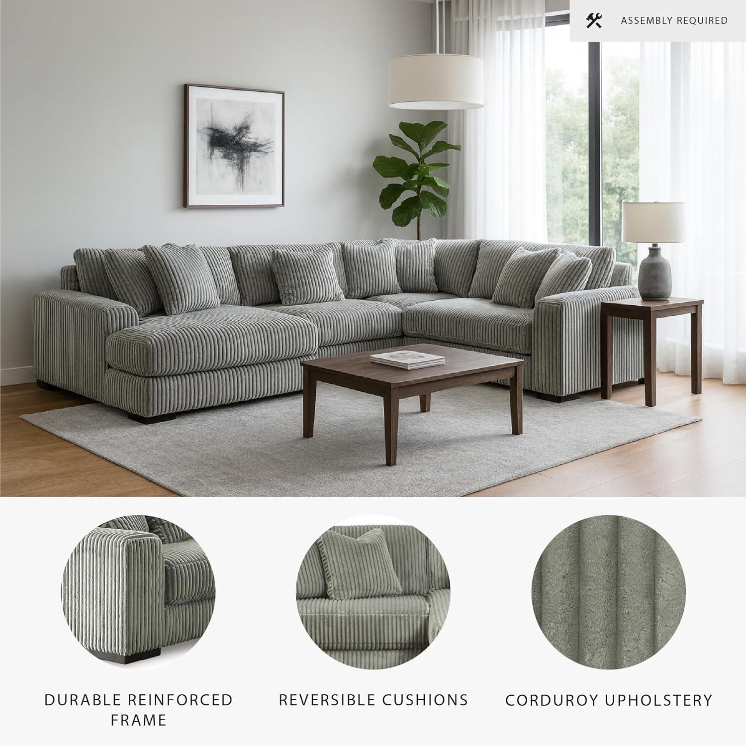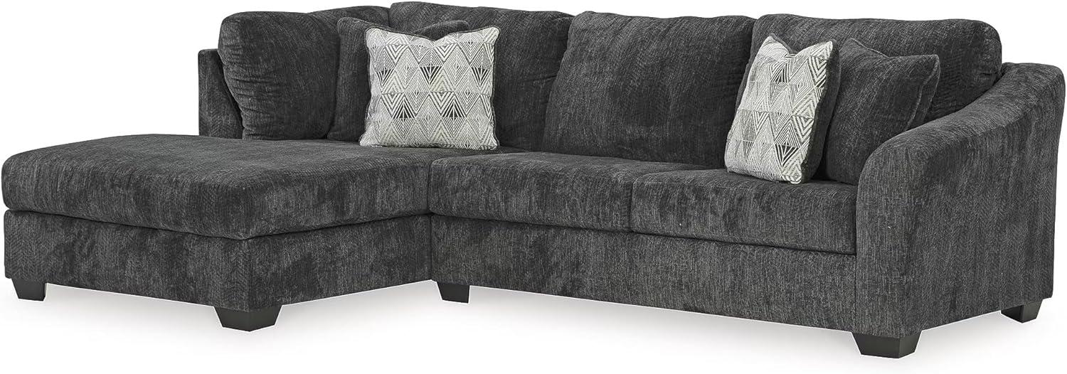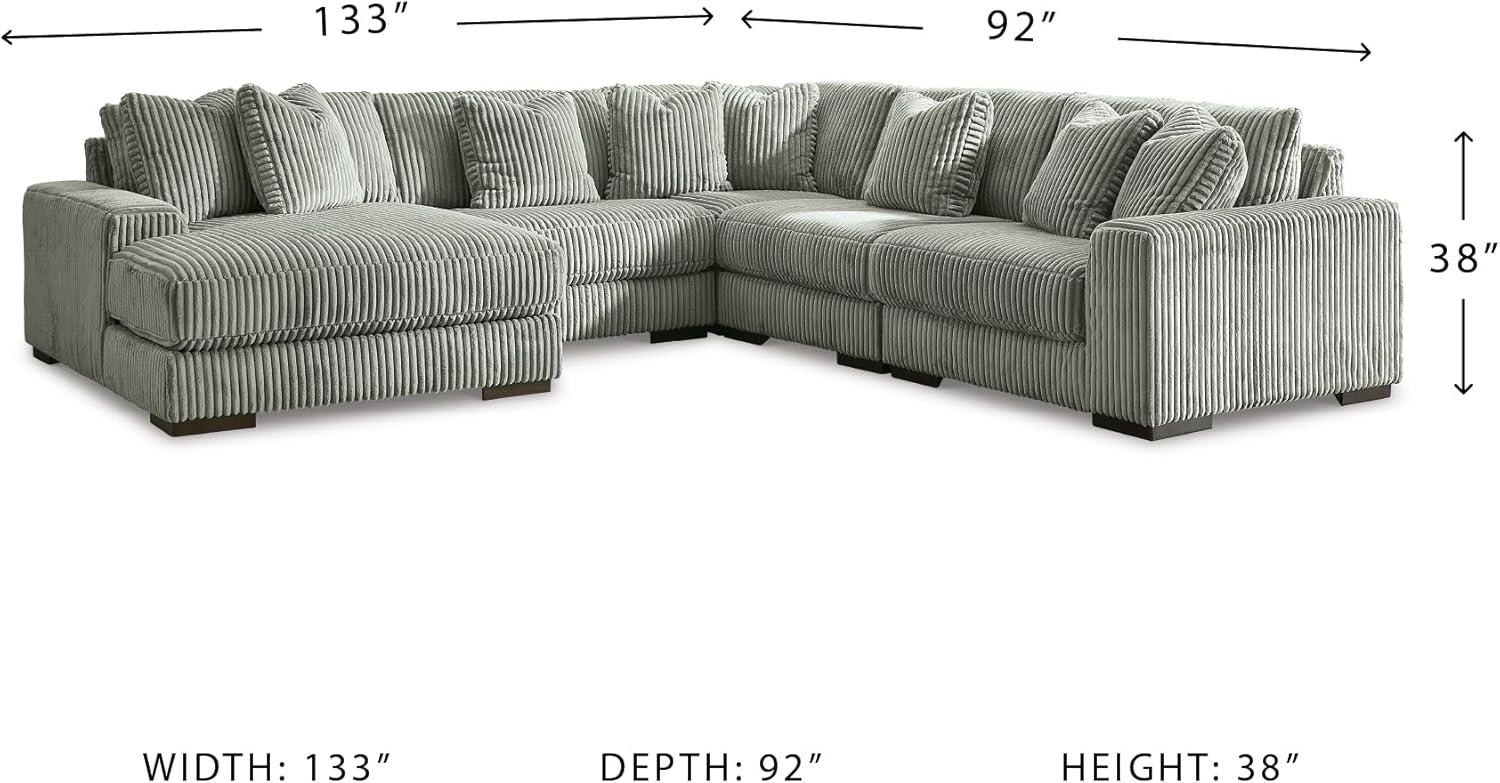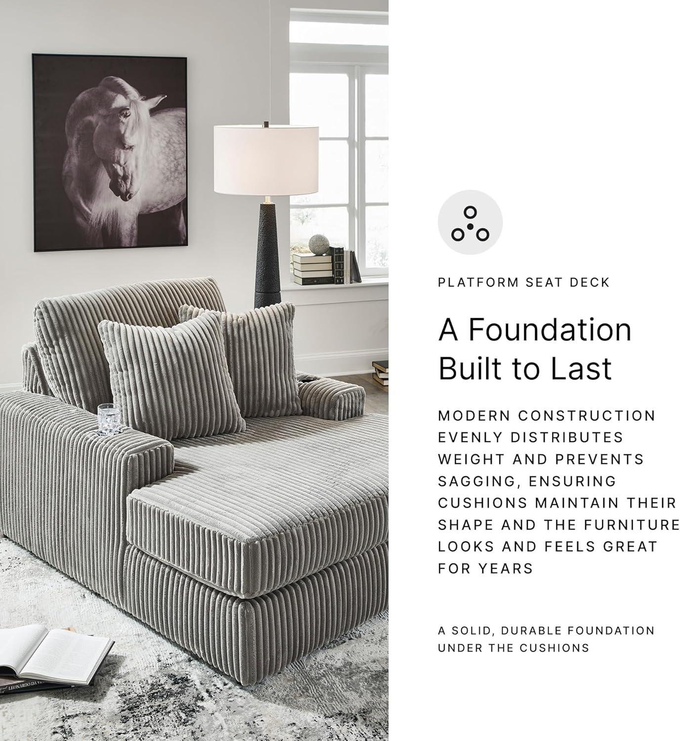 Signature Design by Ashley Lindyn Casual Anti Sag 3-Piece Sectional with Double Chaise, Reversible Cushions and 5 Accent Pillows, Gray(Grey)