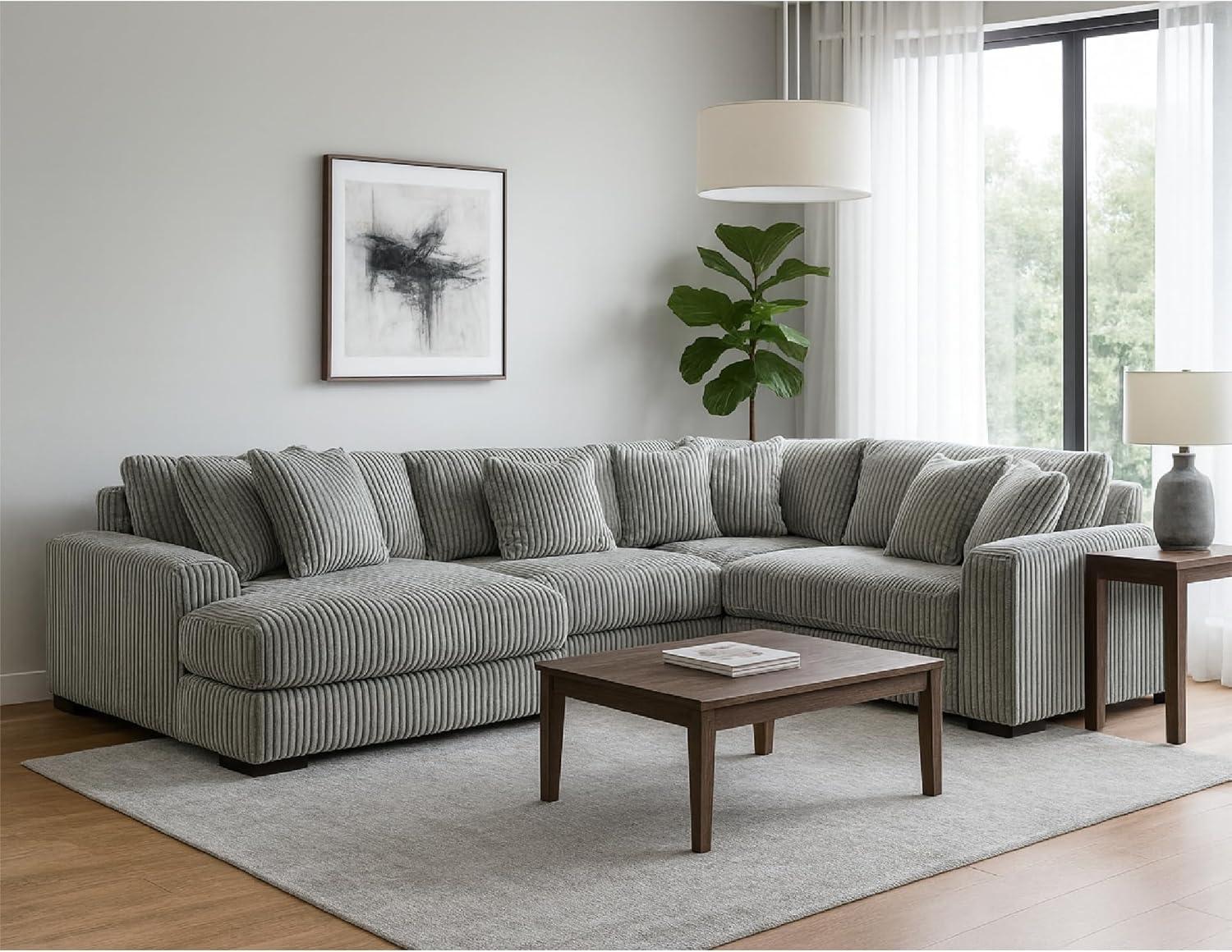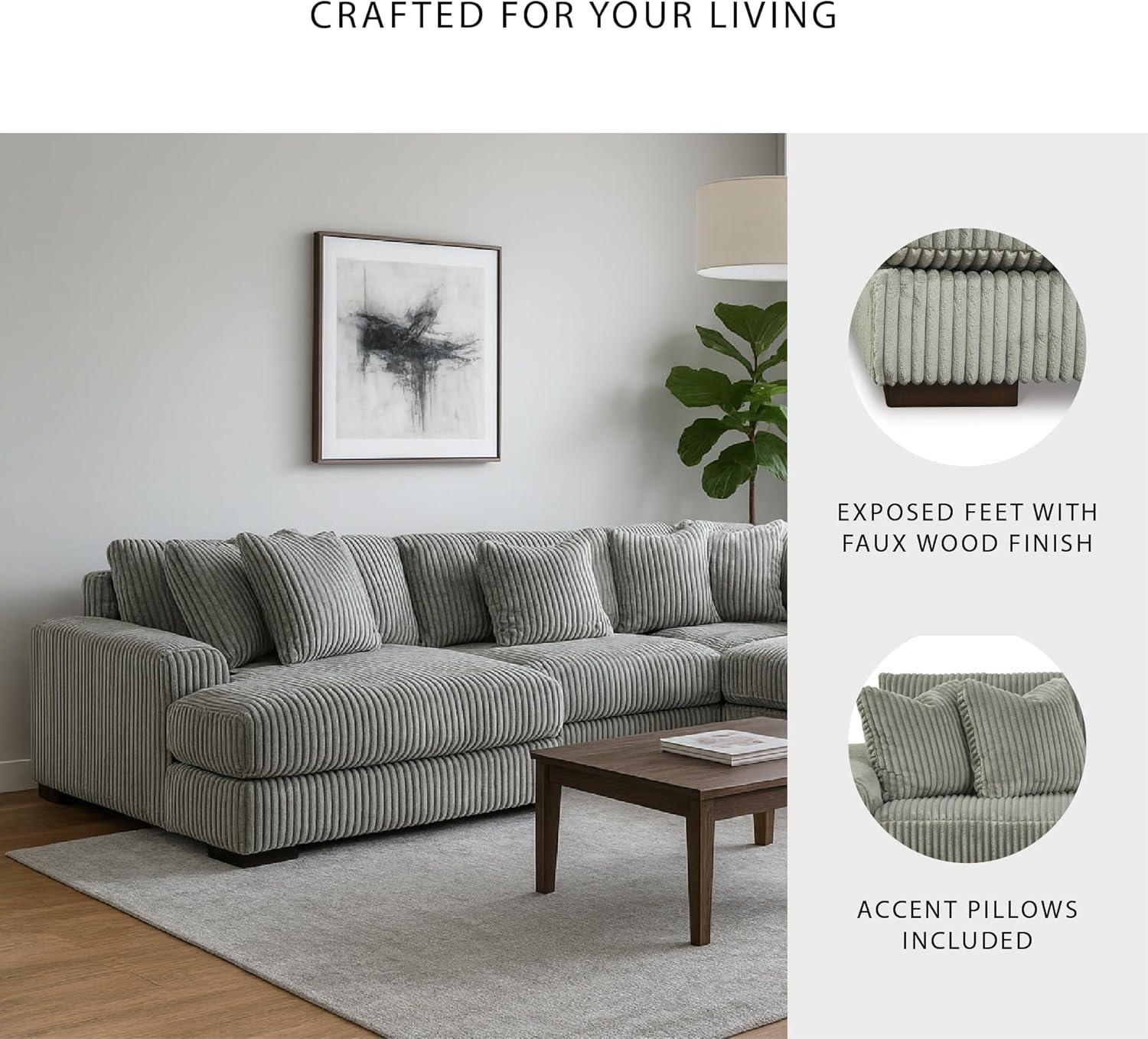 3-PIECE SECTIONAL WITH DOUBLE CHAISE: Showcase your eye for trendy texture with the cord upholstery of this sectional. Its soft fabric entices in a warm neutral hue. Simply sink into the cushions of this cozy centerpiece and plan to stay a while