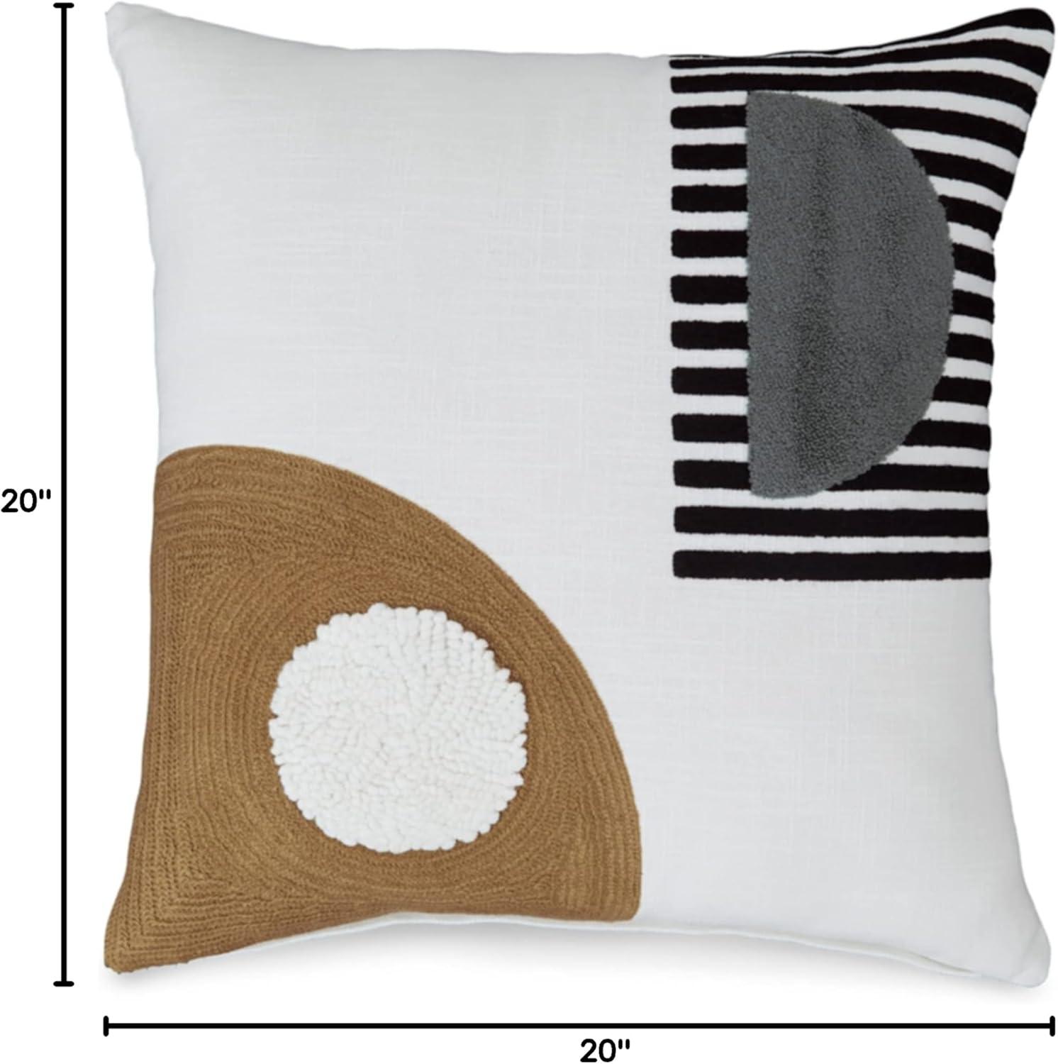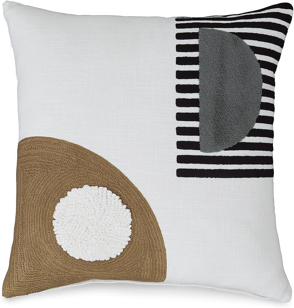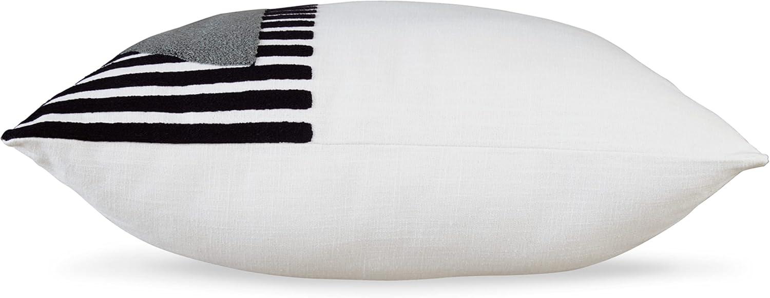 Signature Design by Ashley Longsum Contemporary Square Cotton Pillow with Embroidered Design, 20″ x 20″, White & Black