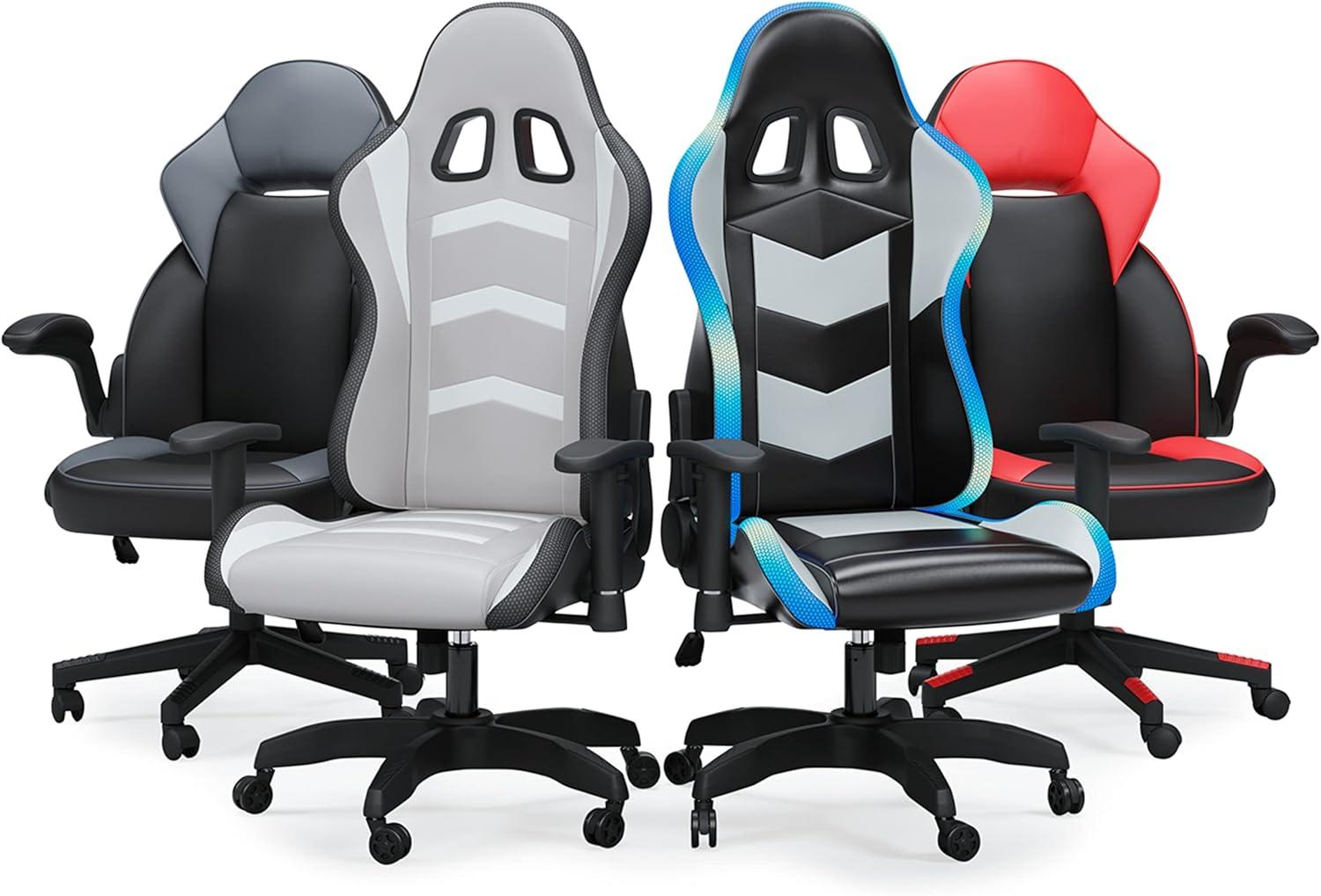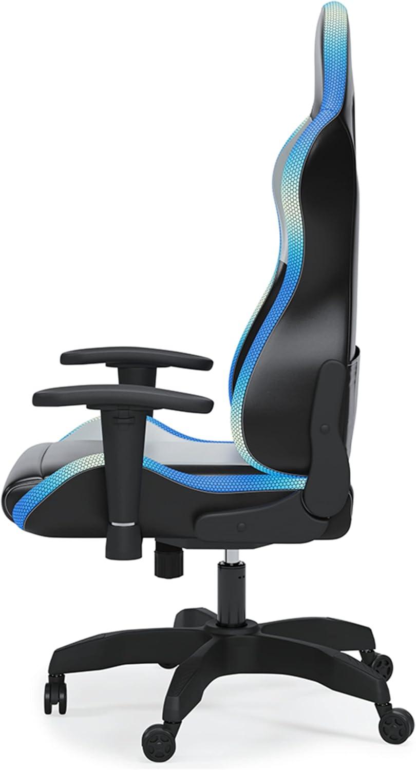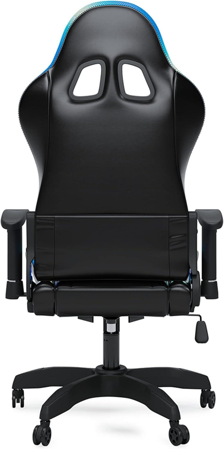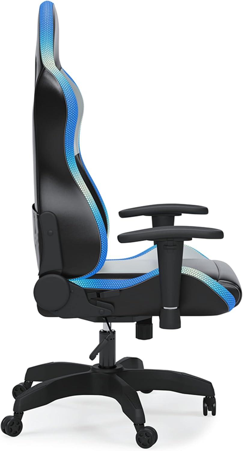 Tech this out: a swivel office chair that’s as cool as it is comfortable. The ultimate choice among gamers, this swivel office chair is hard to beat. Quality crafted with a sturdy steel frame, this swivel office chair with comfy contoured seat and cutting-edge design is upholstered in a durable faux leather in white and gray. Cleverly integrated into the chair: powered LED lighting to enhance the gaming experience. Choose from six different colors or stream a mix of color using the remote control. With a swivel base, smooth-gliding casters and adjustable seat height/tilt feature, this office chair with fully reclining backrest has serious game.