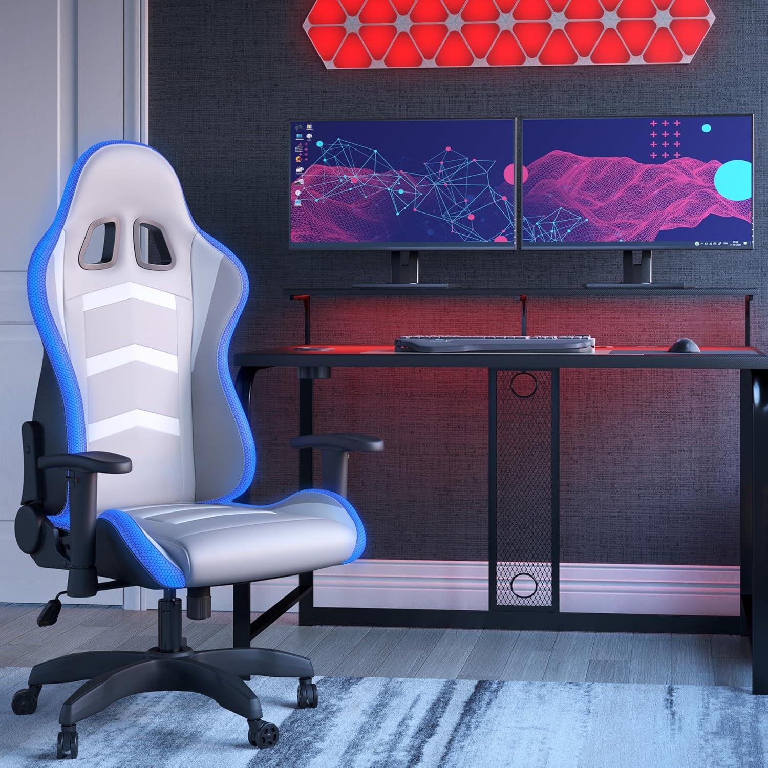 DURABLE FAUX LEATHER: Upholstered in white and gray, the chair's comfy contoured seat highlights a cutting-edge design. Its fully reclining backrest ensures hours of comfort as you work or play
