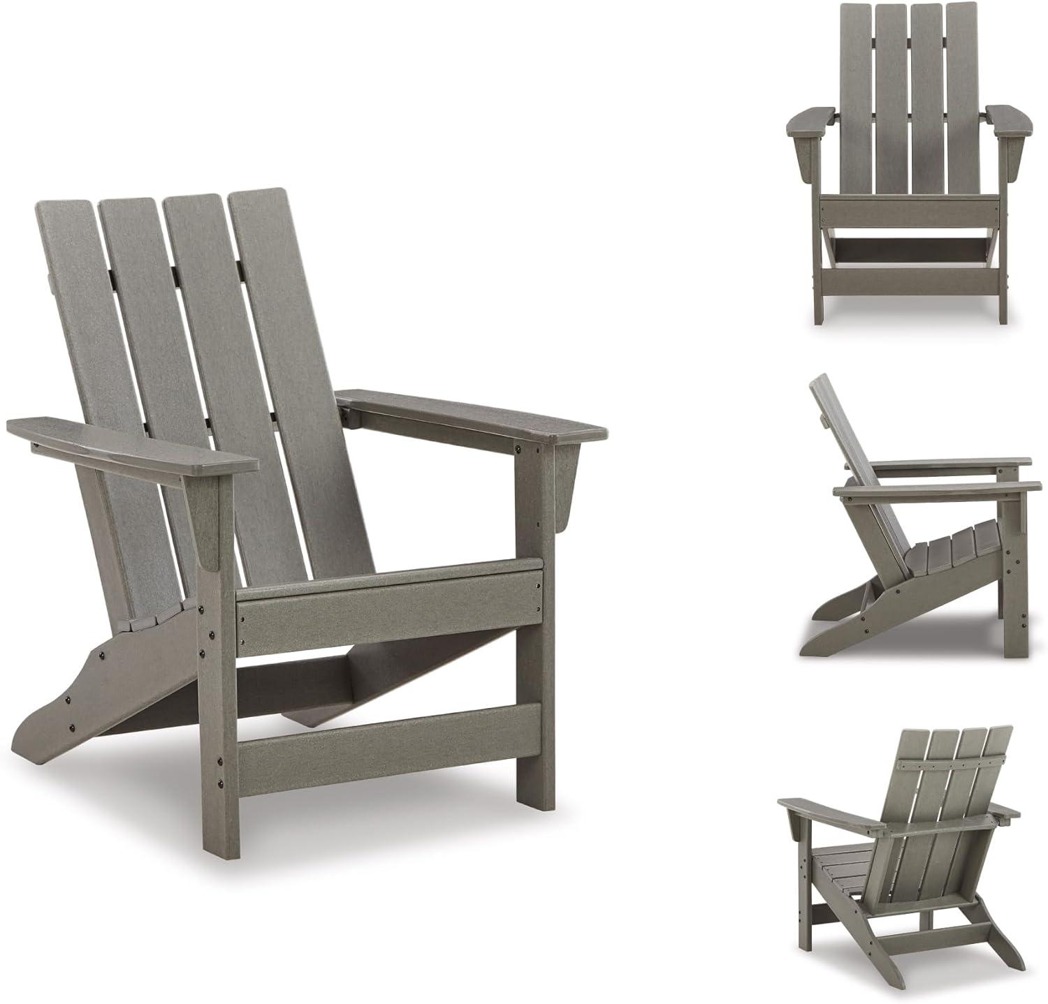 Signature Design by Ashley Mabry Shores Coastal MEGA-TUFF™ HDPE Weather Resistant Outdoor Adirondack Chair with Slat Back, Blue & Beige(Grey)