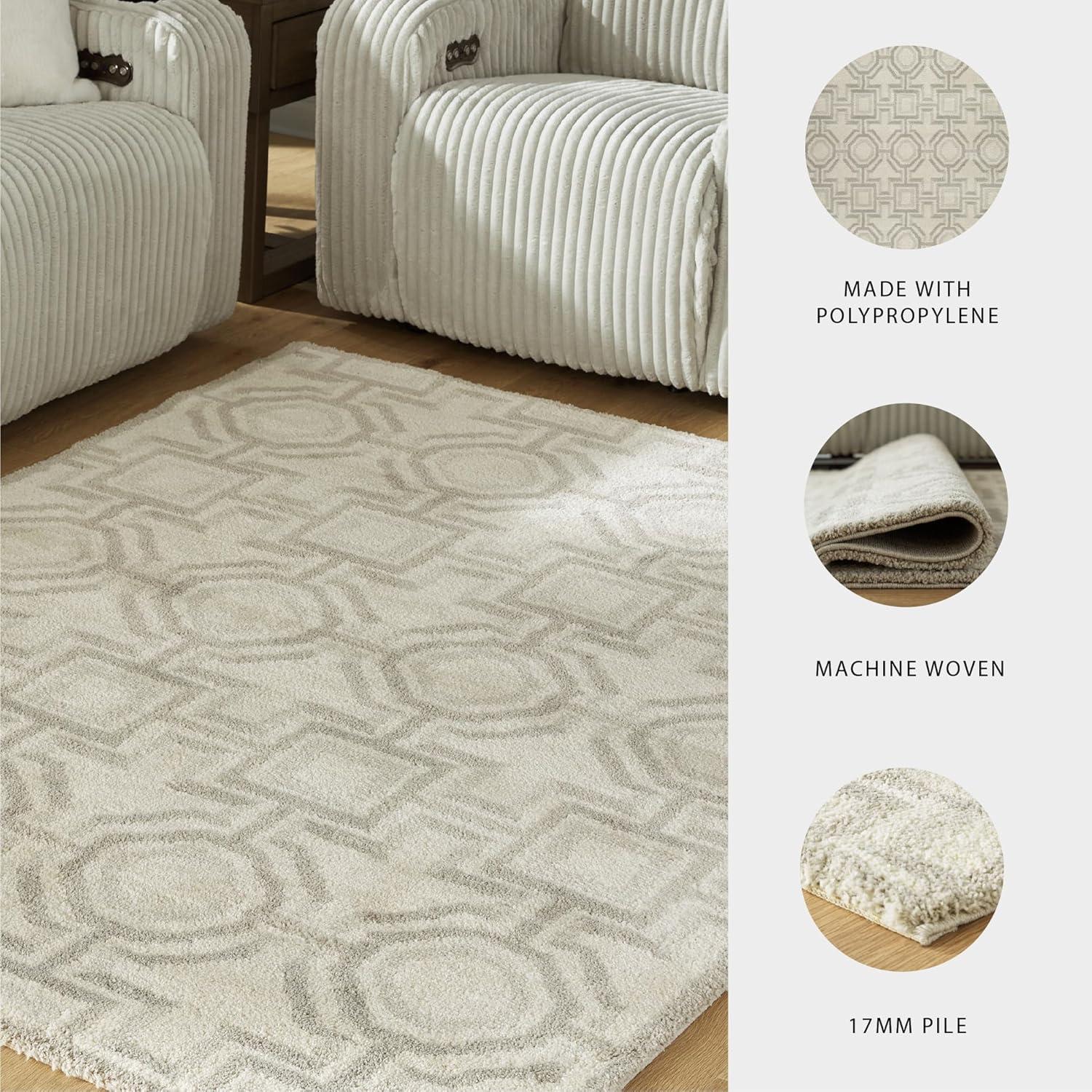 CONTEMPORARY LARGE RUG: Define your space beautifully with this magnificent rug. Its gorgeous geometric design in gray and ivory infuses a modern sensibility that suits your style. Plus, the plush pile feels fantastic underfoot
