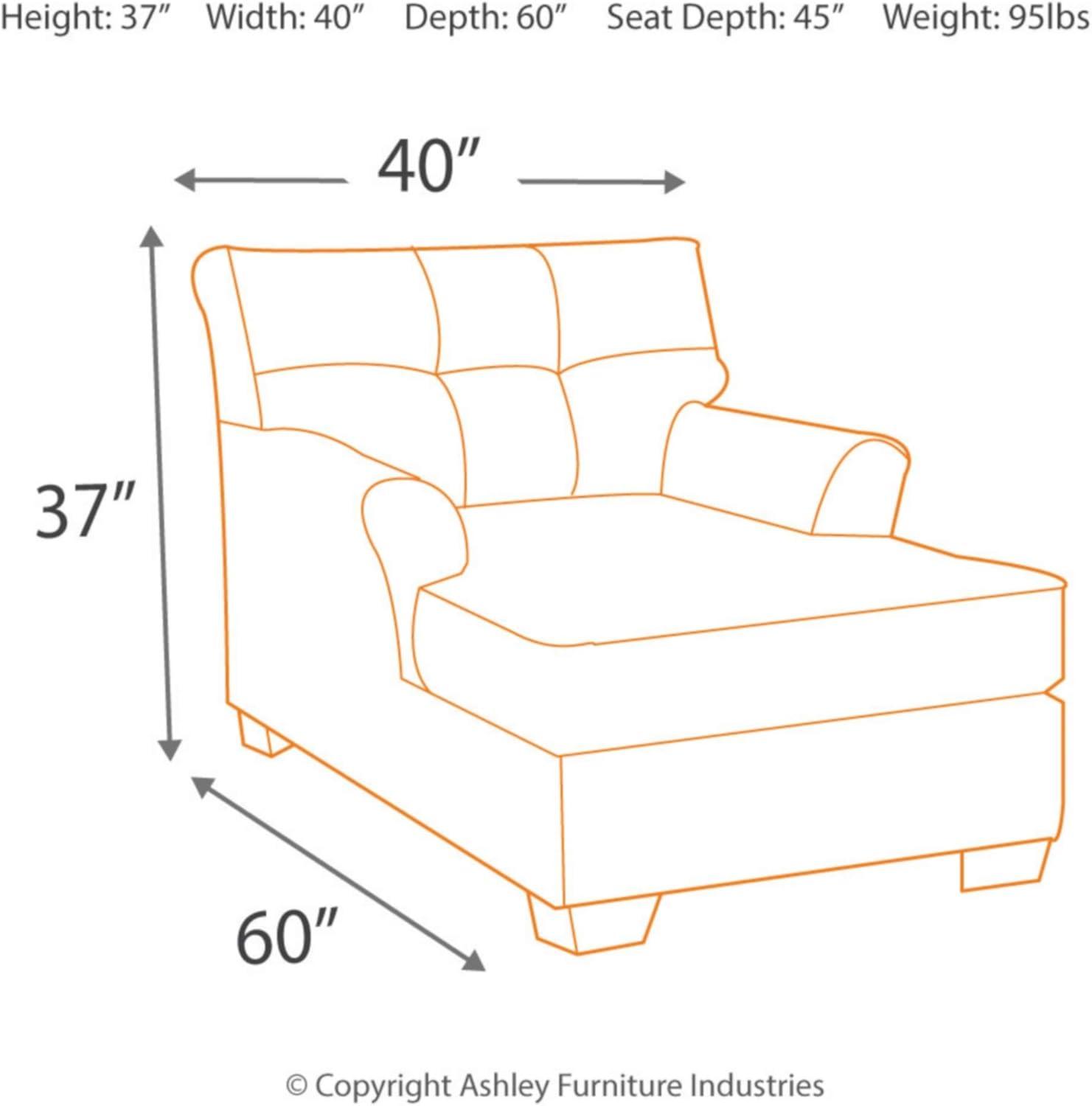 INSTANT STYLE: Furniture measures 35″ W x 62″ D x 37″ H. Arm height: 25″. Distance between arms: 24″. Seat depth: 45″. Seat height: 20″. Top of cushion to top of back: 19″. Leg height: 3″