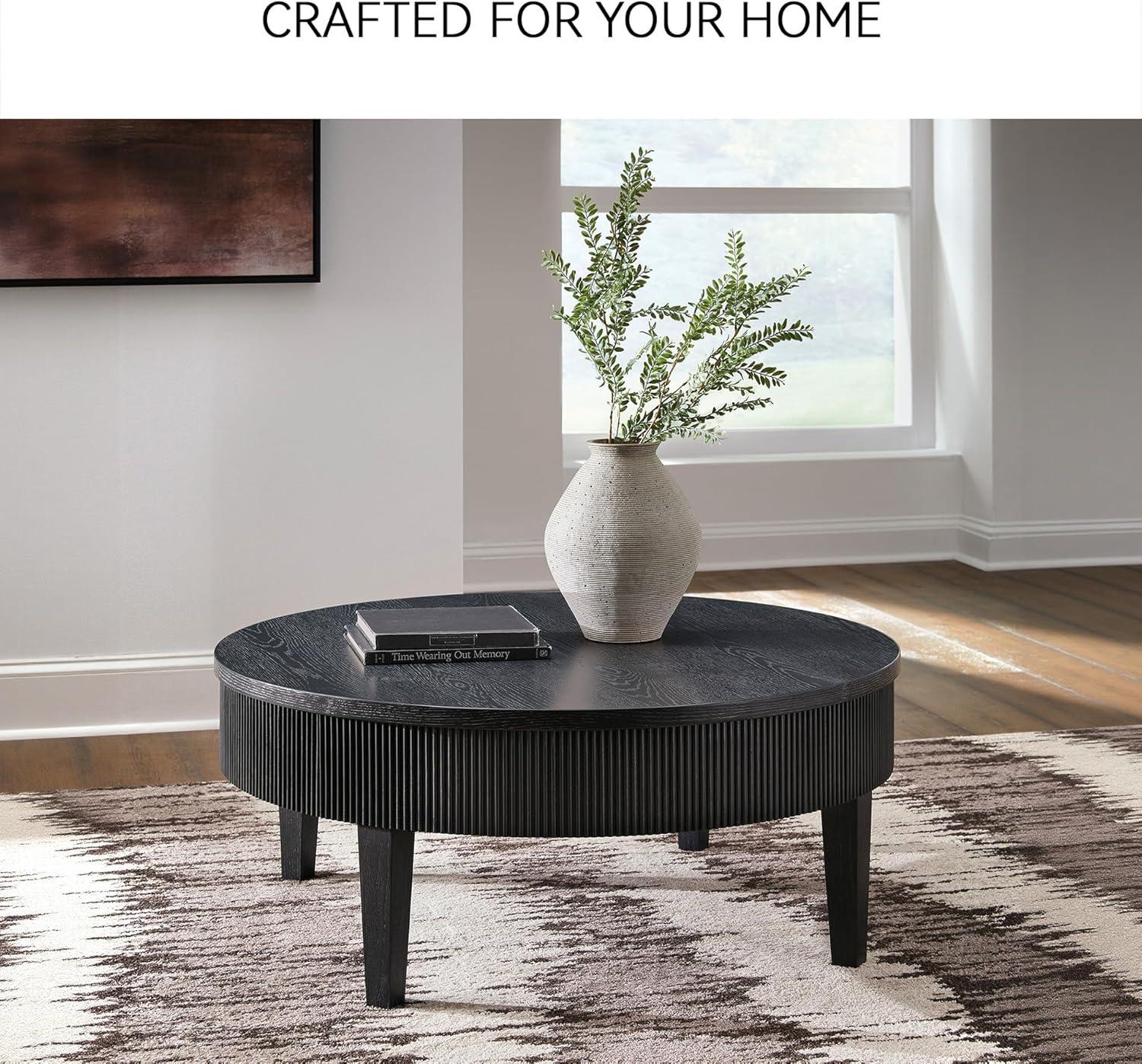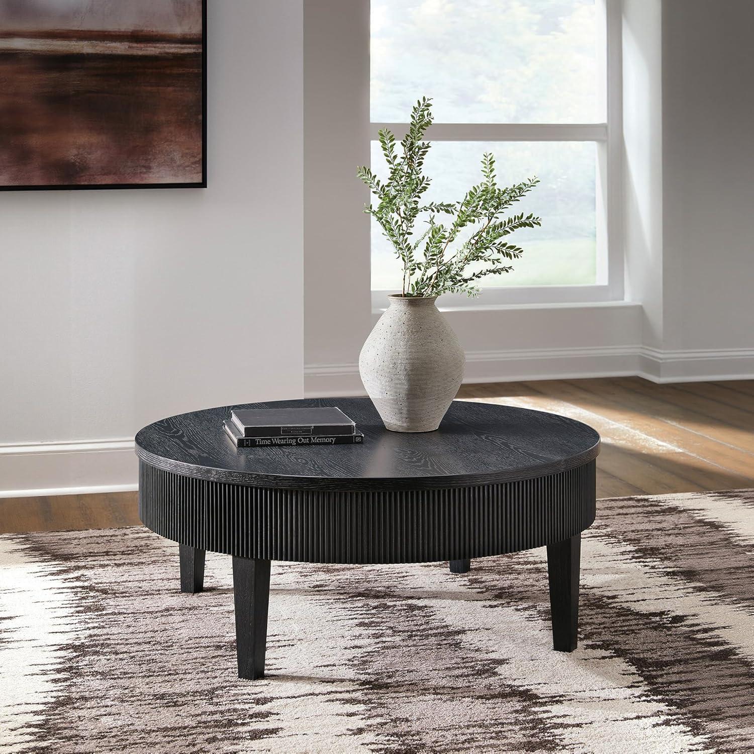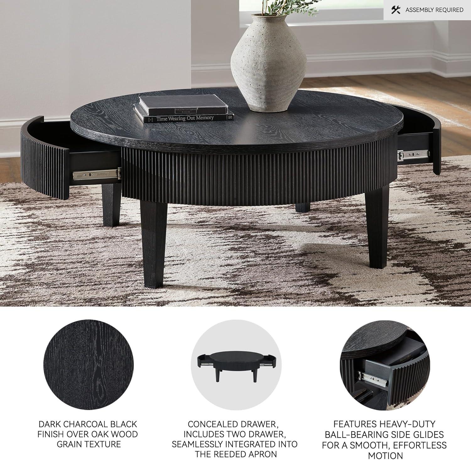 Classic and cool in dark charcoal, this coffee table brings contemporary convenience to your living room. Short on storage? The trendy reeded apron conceals a drawer perfect for remotes, controllers and other entertainment accessories. What a perfect marriage of style and functionality.